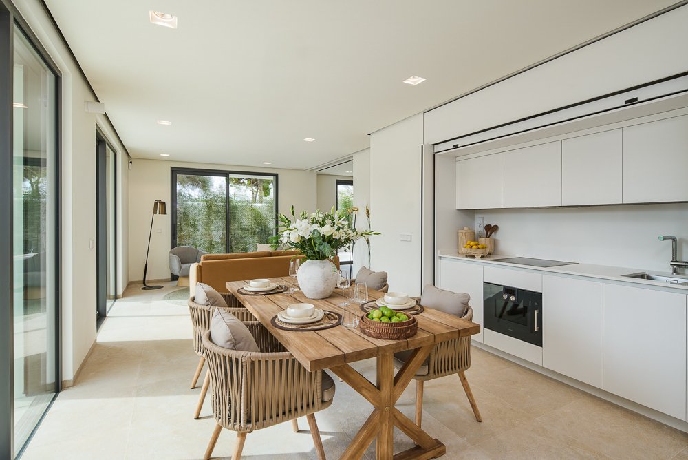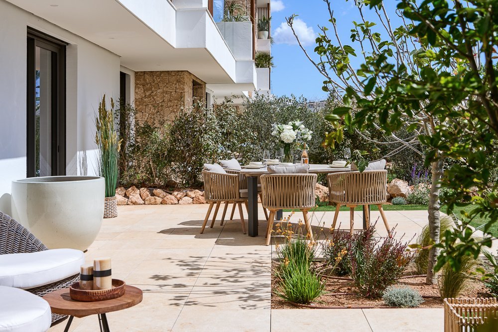 Diese modernen Wohnungen, gebaut unter dem Motto „High-End-Luxus trifft auf ibizenkischen Hippie-Lifestyle“, kombinieren avantgardistische Architektur mit deutscher Qualität. Das Angebot reicht von kompakten und familienfreundlichen Wohnungen bis hin zu großen Penthouse-Wohnungen mit privaten Dachgärten, Jacuzzi und Barbecue-Bereichen. Von den Wohnungen aus können Sie entweder atemberaubende Meerblicke oder einen schönen Landschaftsblick genießen. Hier treffen Tradition und Luxus auf modernes architektonisches Design, das durch Elemente wie Naturstein, Holz, Glas und vertikale Gärten geprägt ist. Das einzigartige Design vereint die besten Materialien und die feinste Handwerkskunst in diesem Neubau. Alle Wohnungen sind komplett mit hochwertigen Möbeln ausgestattet, verfügen über ein nachhaltiges Fußbodenheizungs- und Kühlsystem, eine handgefertigte Küche mit Gaggenau-Geräten, Dornbracht-Armaturen, großzügige Badezimmer, große offene Schlafzimmer und Fenster vom Boden bis Decke. Darüber hinaus verfügen alle Einheiten über einen Tiefgaragenstellplatz mit E-Ladestation und ein E-Bike als Geschenk. Die Anlage bietet einen 24/7-Concierge-Service, verfügt über einen Spa-Bereich mit natürlichem Wasserfall, einen Indoor-Strandpool, eine Dampfsauna und eine Außen-Relax-Zone mit Fitnessstudio sowie kostenlose Nutzung der hauseigenen Boote. Ein großzügiger Chill-out-Garten mit BBQ-Zone, einem großen Esstisch aus landestypischen Holz und stimmungsvoller Beleuchtung macht dieses Wohnhaus noch besonderer, ergänzt durch einen direkten Zugang und einen Servicevertrag mit dem renommierten Restaurant nebenan, das den Eigentümern und ihren Gästen die Köstlichkeiten der besten mediterranen Küche vor Ort bietet.