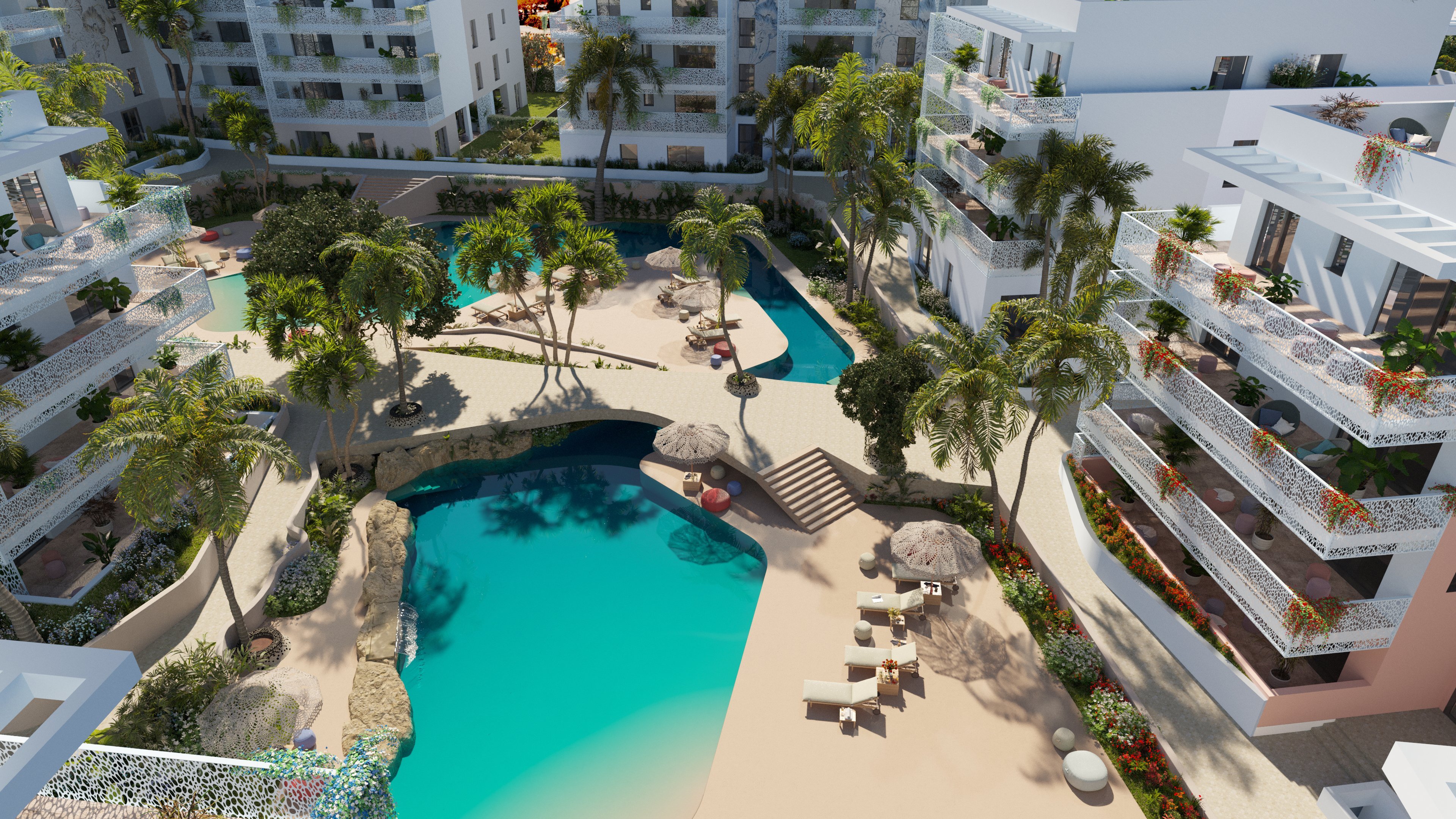 Jede Residenz ist mit hochwertigen „Made in Germany“-Materialien gefertigt und mit Details angereichert, die den lokalen Charakter widerspiegeln. Geräumige, lichtdurchflutete Innenräume öffnen sich zu Terrassen und privaten Gärten mit Zugang zu einem organischen Pool, umgeben von üppigen subtropischen Gärten.