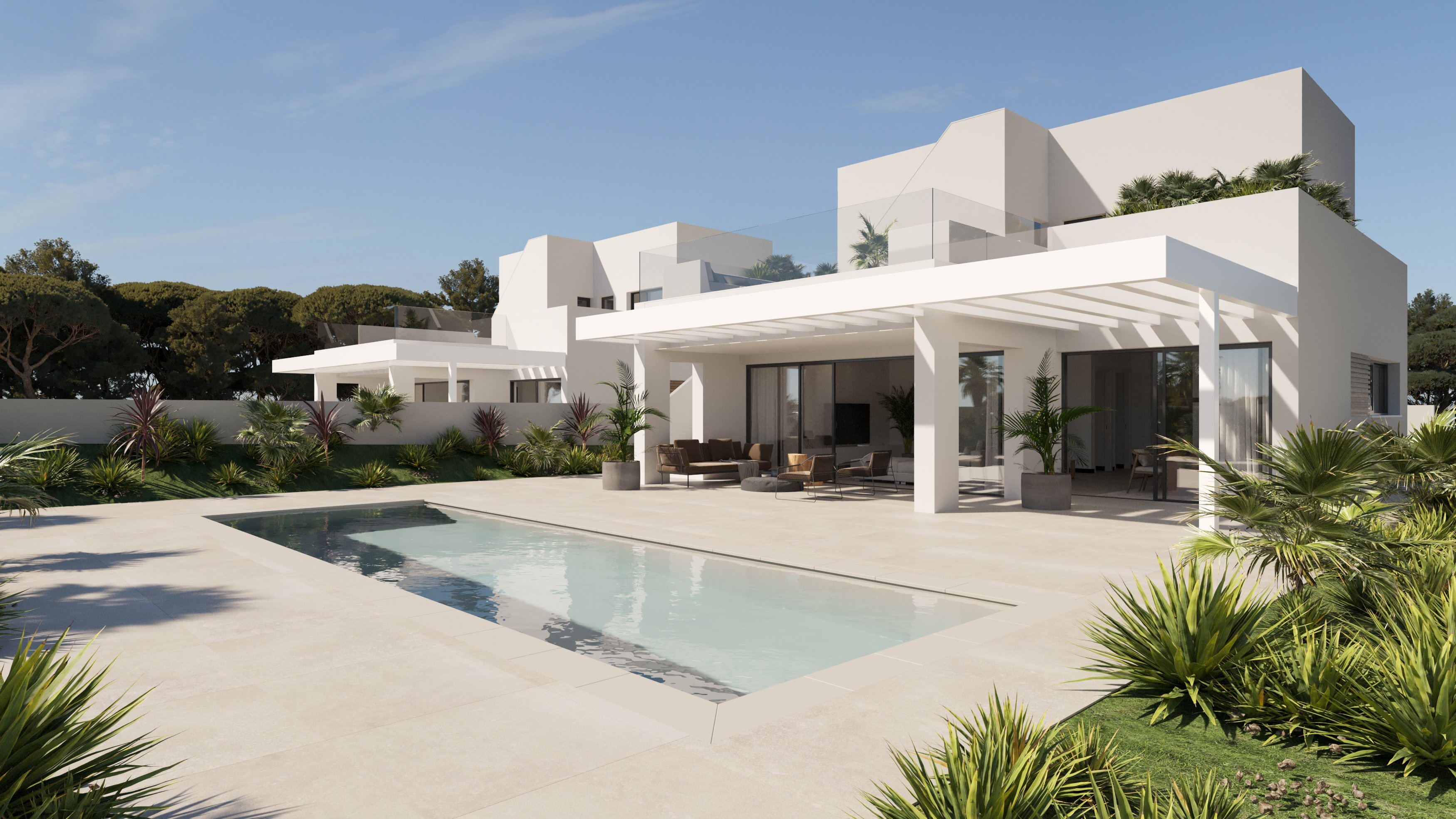 Diese kleine Gemeinschaft von nur fünf Neubauvillen befindet sich in sehr ruhiger Lage und nur wenige hundert Meter vom nächsten Sandstrand entfernt.