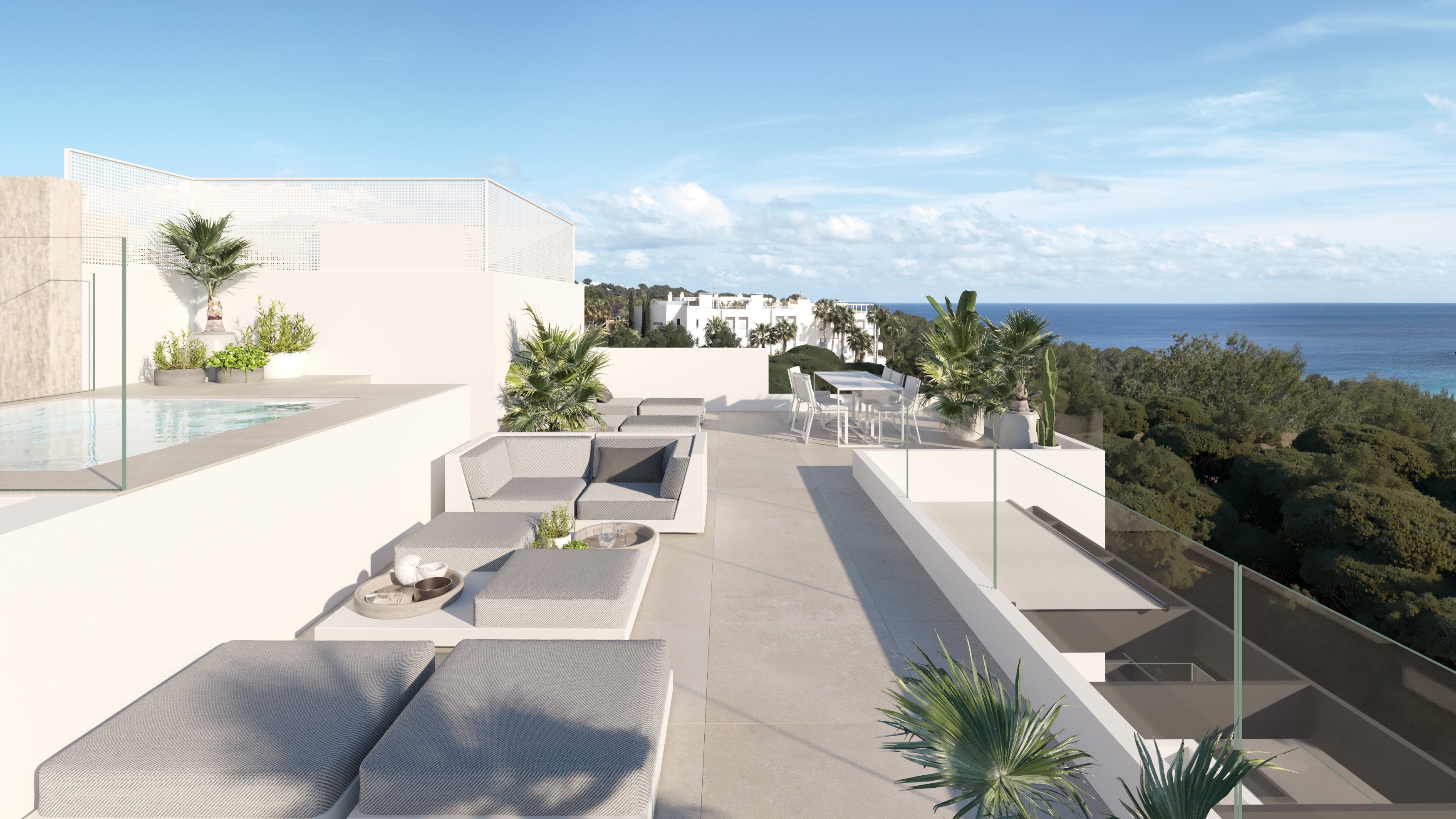 Diese modernen und luxuriösen Neubauwohnungen liegen nur 200 Meter vom Sandstrand von Cala Llenya entfernt, das charmante Dorf San Carlos ist nur wenige Autominuten entfernt. Die Wohnungen verfügen über ein zeitgenössisches Design, einen hellen Wohnbereich mit offener Küche und großen Fenstern, die auf die sonnigen Terrassen führen, ideal, um das mediterrane Klima zu genießen.