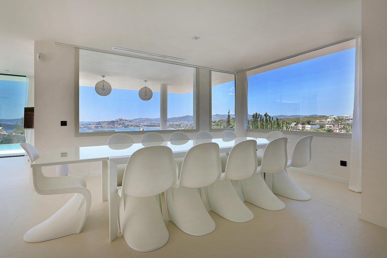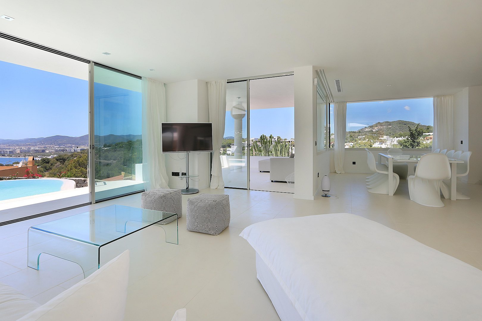 Dieses brandneue Stadthaus befindet sich in der Gegend von Puig Manya, einer angesehenen Nachbarschaft am Stadtrand von Ibiza Stadt. Die Sanierung ist im Juni 2016 beendet worden und repräsentiert den perfekten Mix von Stil, Komfort und Luxuriöses Leben. Die Villa ist nur 5 Minuten von Ibiza Stadt und dem Hafen entfernt und bietet atemberaubende Ausblicke auf die Bucht von Talamanca, Hafen, Dalt Vila (weltbekannte Altstadt), umliegenden Buchten und nach Fomentera. Die Gäste werden sich von der unvergleichbaren großen Terrasse aus sitzend privilegiert fühlen und die Show, die die pulsierende Altstadt aus der Ferne darstellt, genießen können.