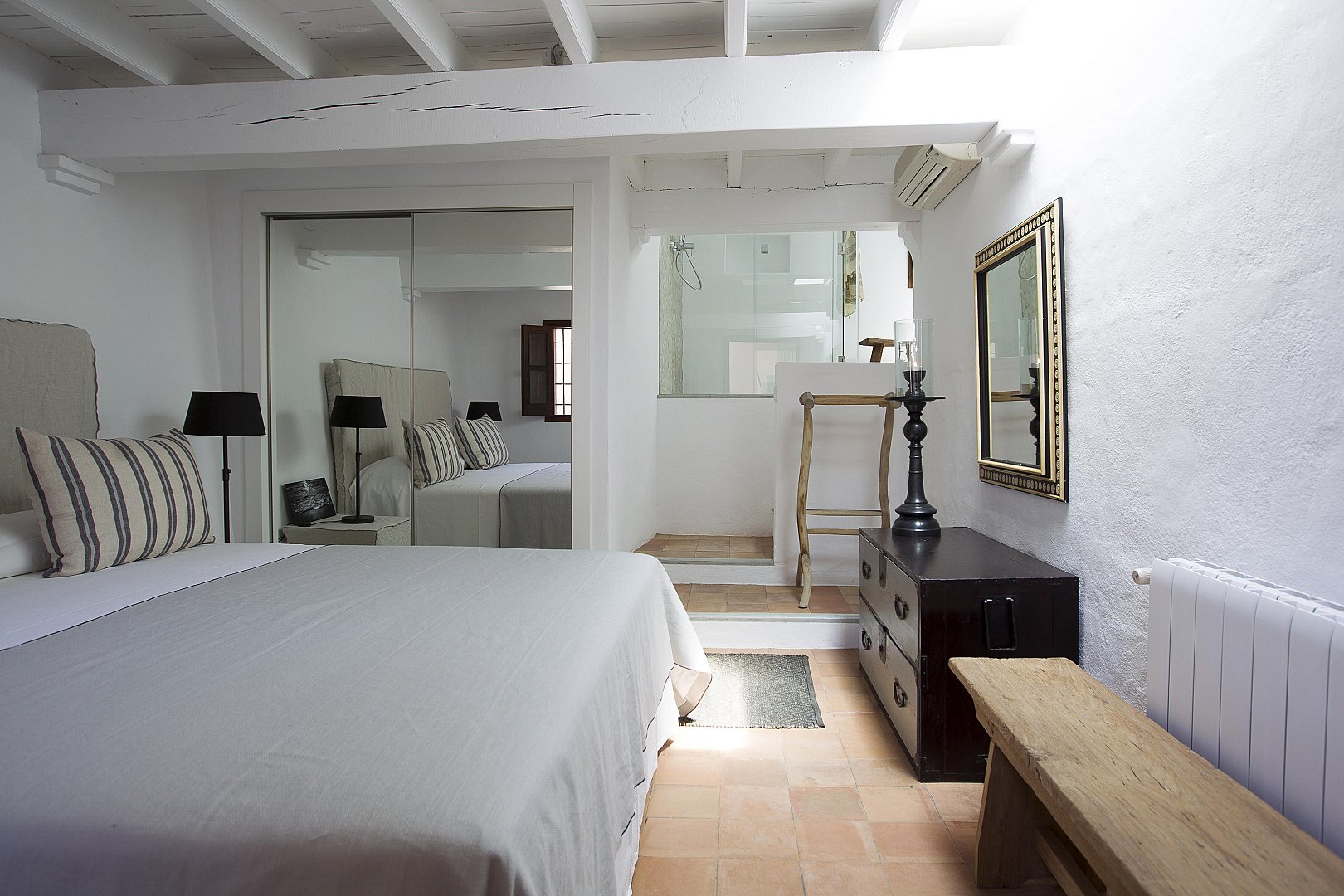 - Schlafzimmer 2: Doppelbett mit eigener Dusche und Toilette, Klimaanlage, direkter Zugang zu Springbrunnen und Poolbereich