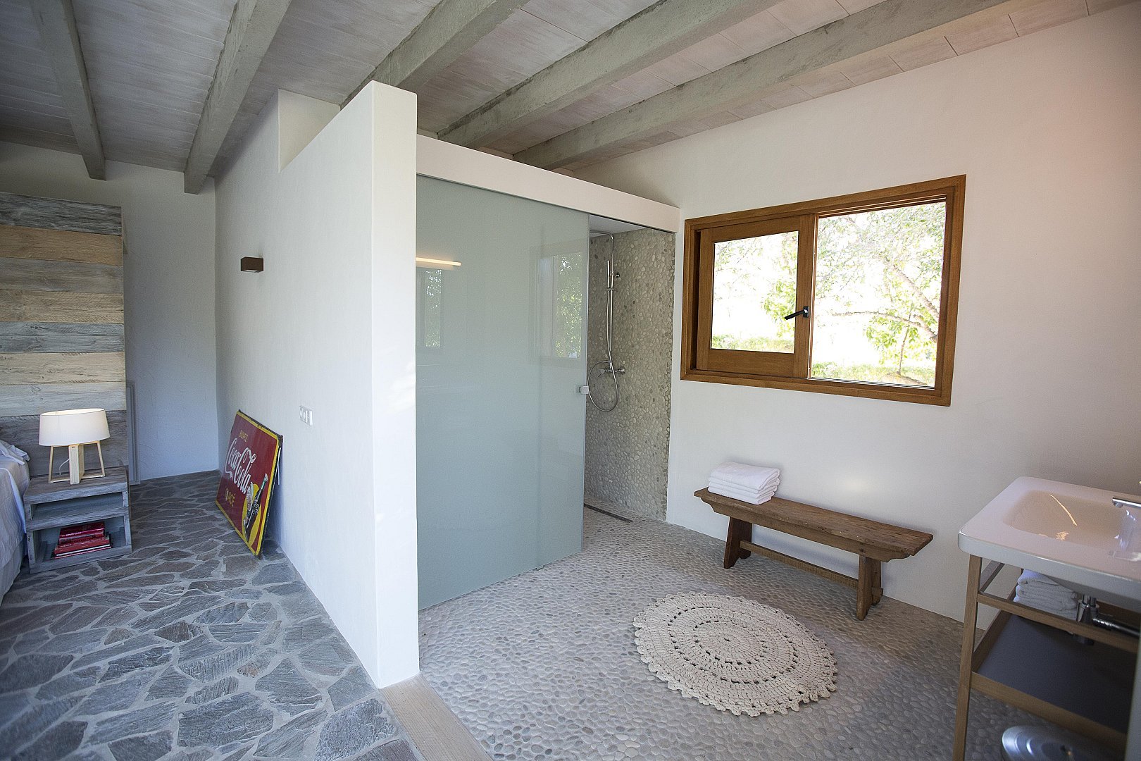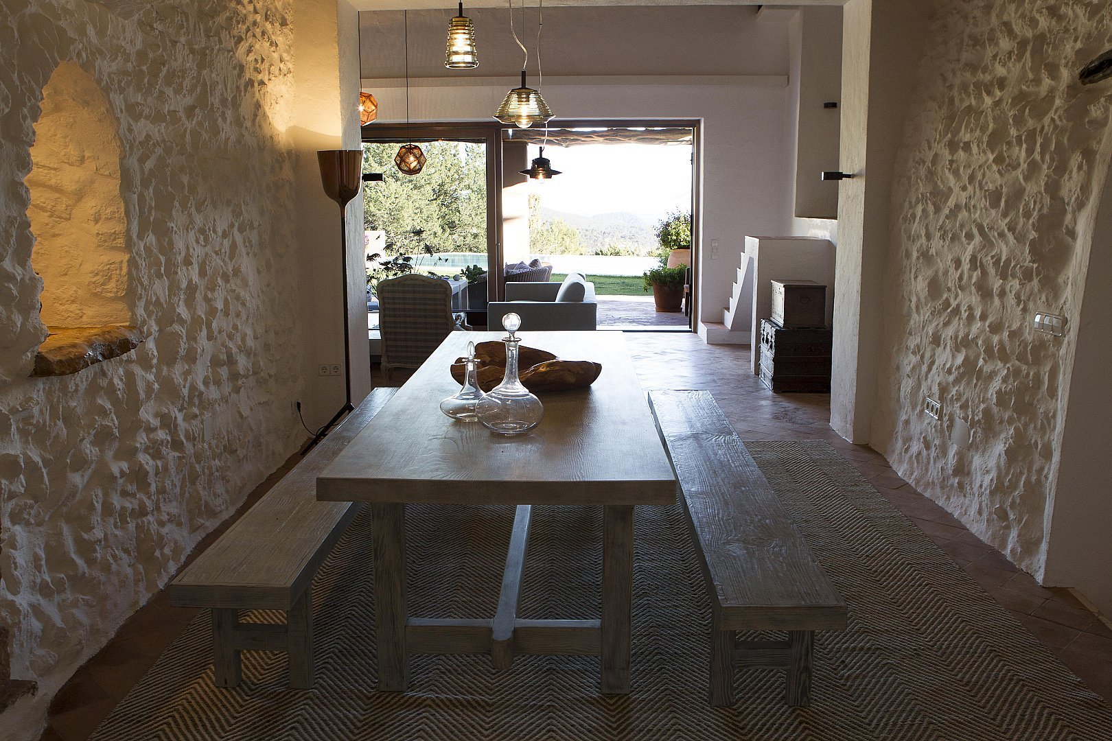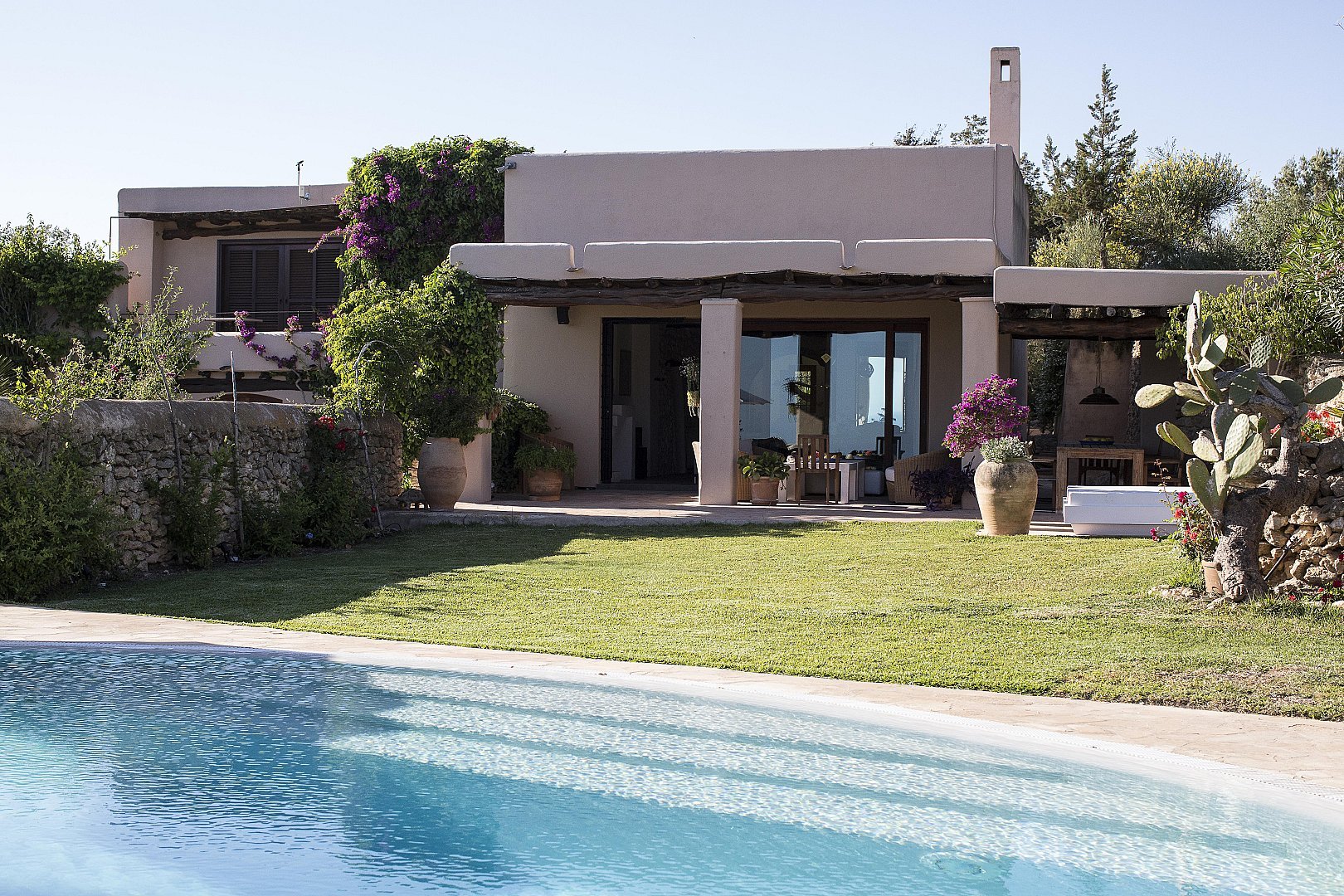 Die Finca befindet sich auf einem großen Grundstück, das von üppigen mediterranen Gärten und Pinienwäldern umgeben ist, und genießt eine erstklassige Südlage, die für viel Sonnenschein und erfrischende Sommerbrisen sorgt. Das Anwesen ist auf maximalen Komfort ausgelegt und verfügt über 5 einzigartige Doppelzimmer, die Privatsphäre und Ruhe bieten. Geräumige Wohn- und Essbereiche im Innen- und Außenbereich bieten ausreichend Platz für große Gruppen oder Familienfeiern. Ob Sie sich in einem der vielen Sitzbereiche entspannen oder die Außenbereiche genießen, diese Finca ist so gestaltet, dass sich die Gäste wie zu Hause fühlen und die Schönheit Ibizas genießen können.