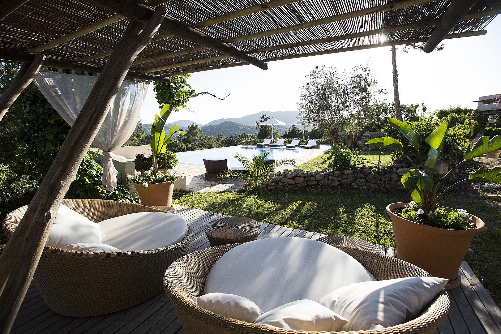 - Mehrere Sofa- und Loungebereiche rund um die Gärten und den Pool-/Rasenbereich