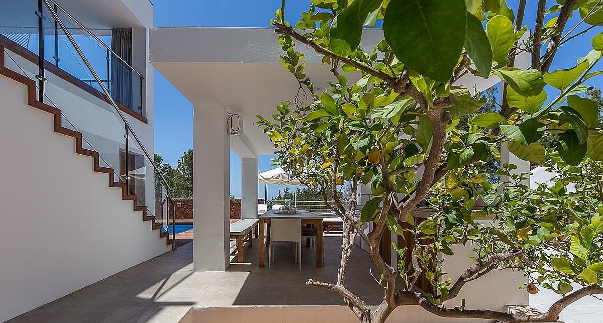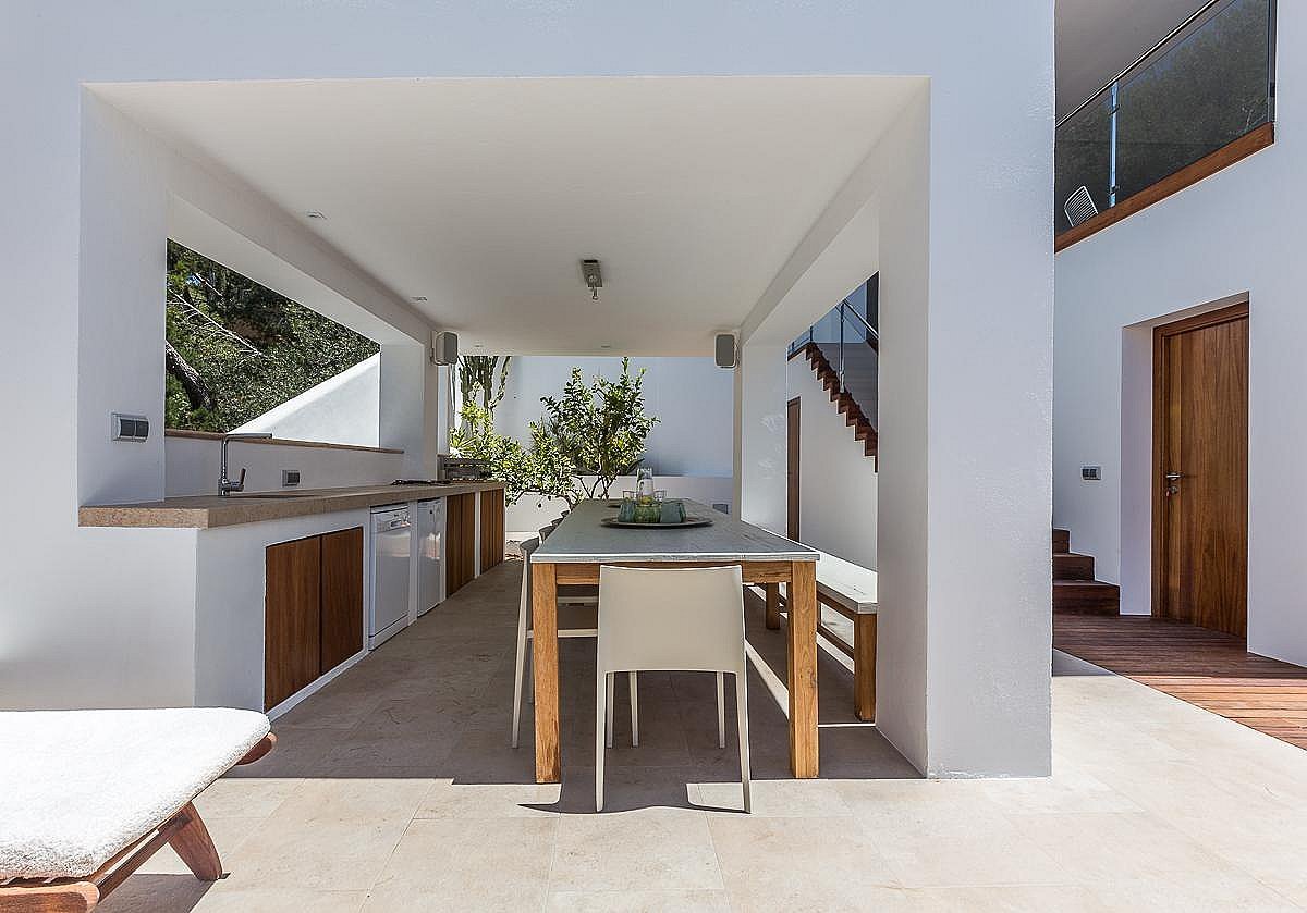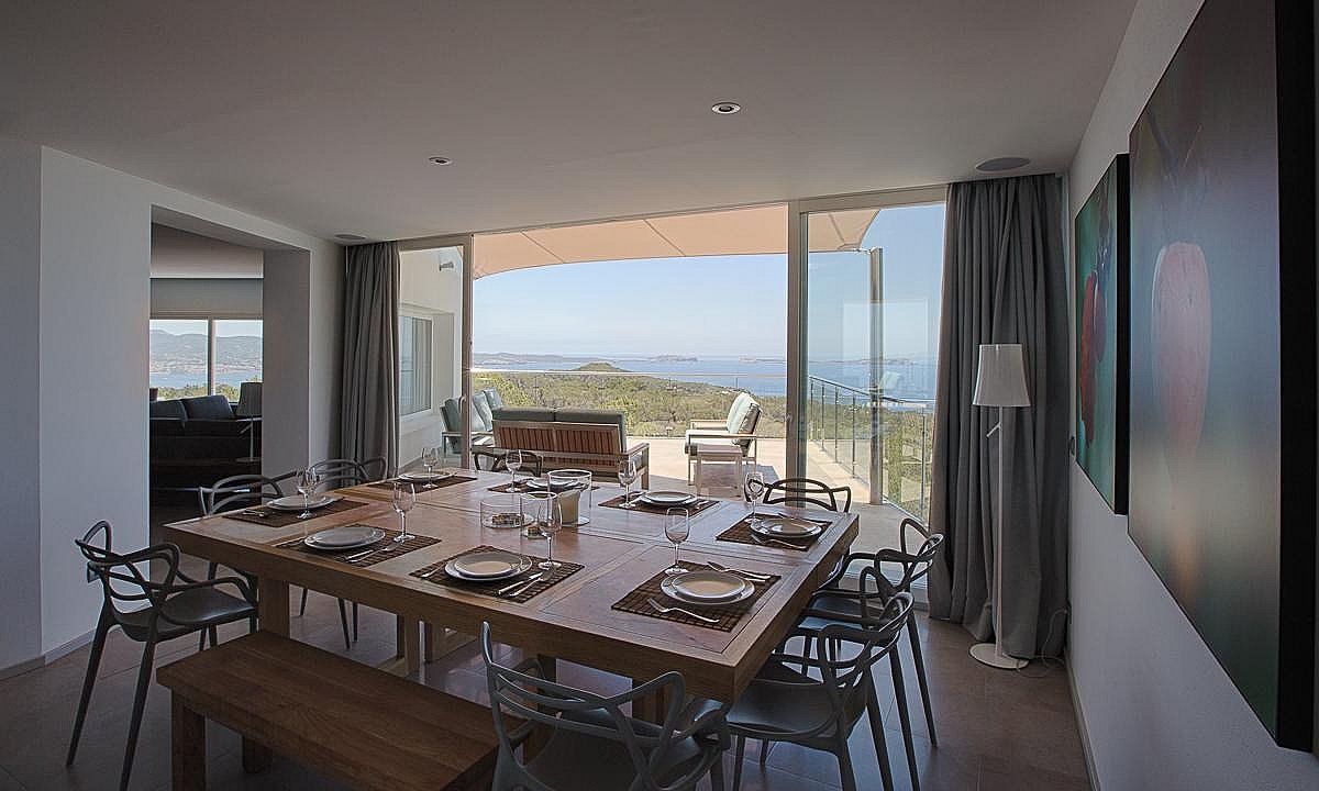 Dieses mehrstöckige Haus ist für große Gruppen und Familien konzipiert und bietet Privatsphäre, Funktionalität und Luxus, was es zu einem idealen Rückzugsort für alle macht, die das beste Küstenerlebnis Ibizas suchen.