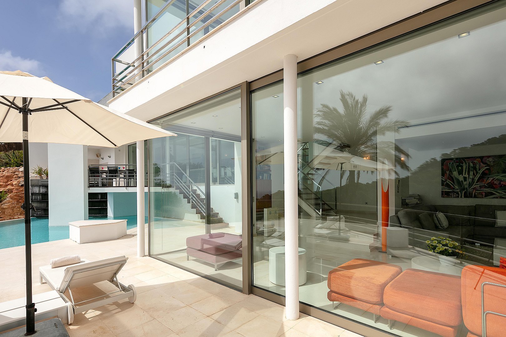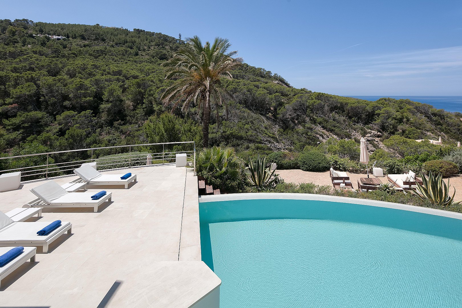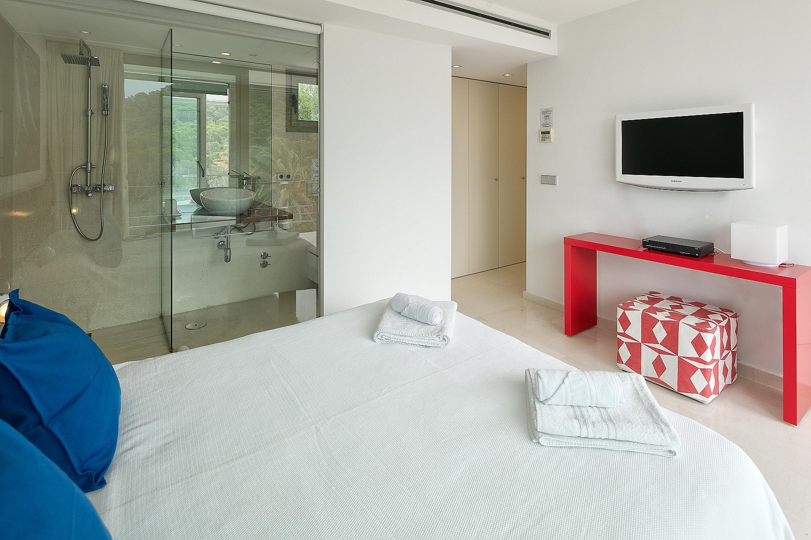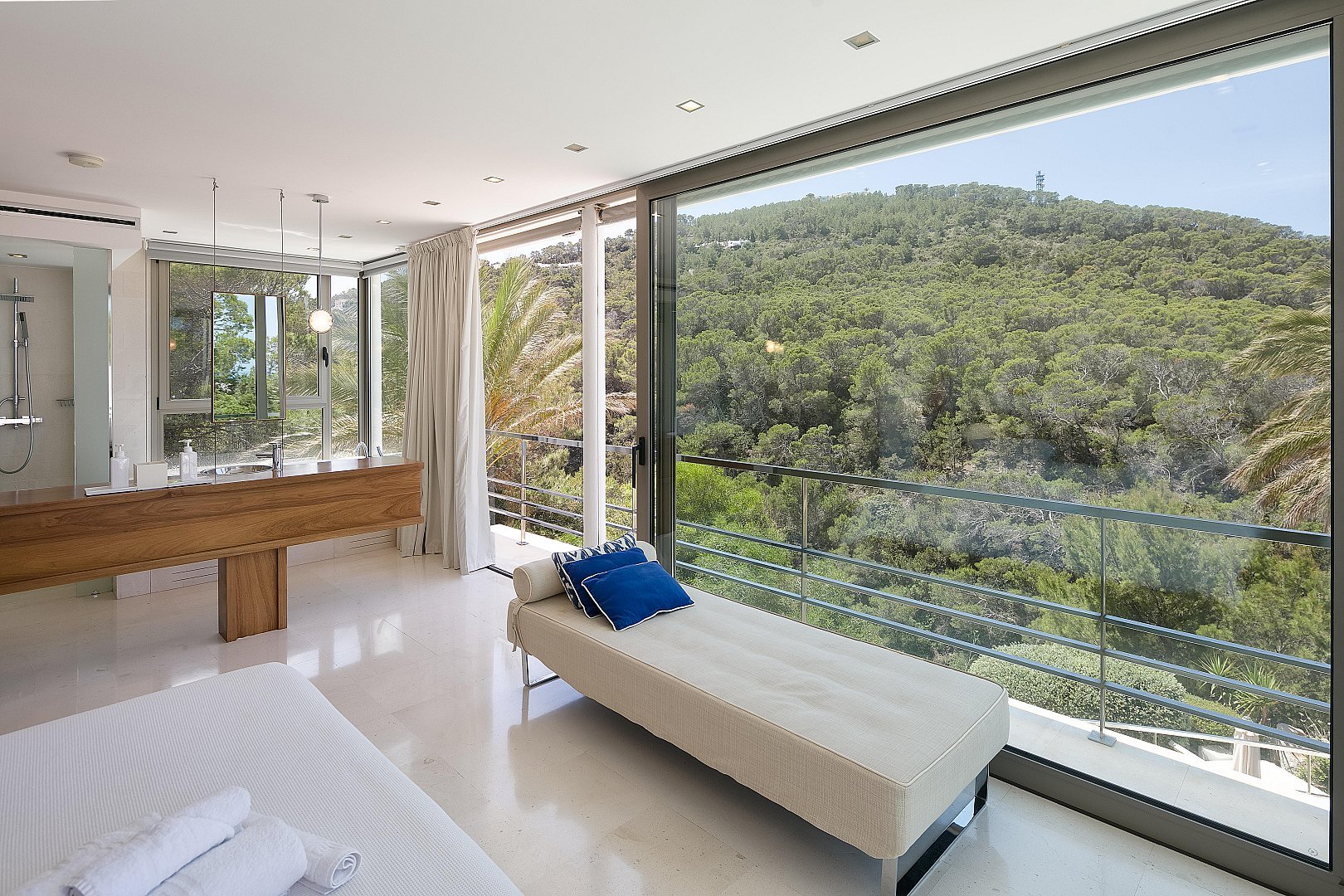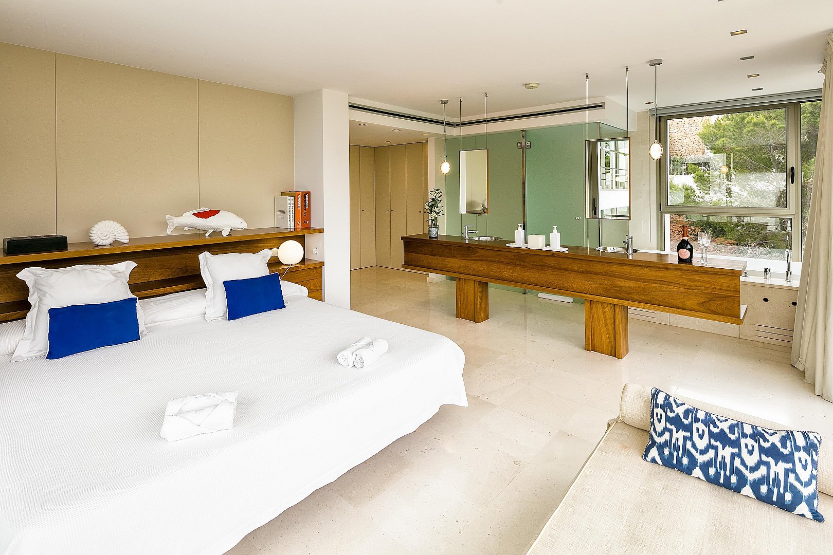 Dieses spektakuläre Anwesen, das besonders durch sein geschmackvolles und modernes Design besticht, liegt ganz in der Nähe der Cala Vadella, der Cala Tarida und Cala d’Hort, einigen der schönsten Strände der gesamten Insel, auch berühmt für die ausgezeichneten Fischrestaurants. Der malerische Ort San José befindet sich 15 Autominuten entfernt.