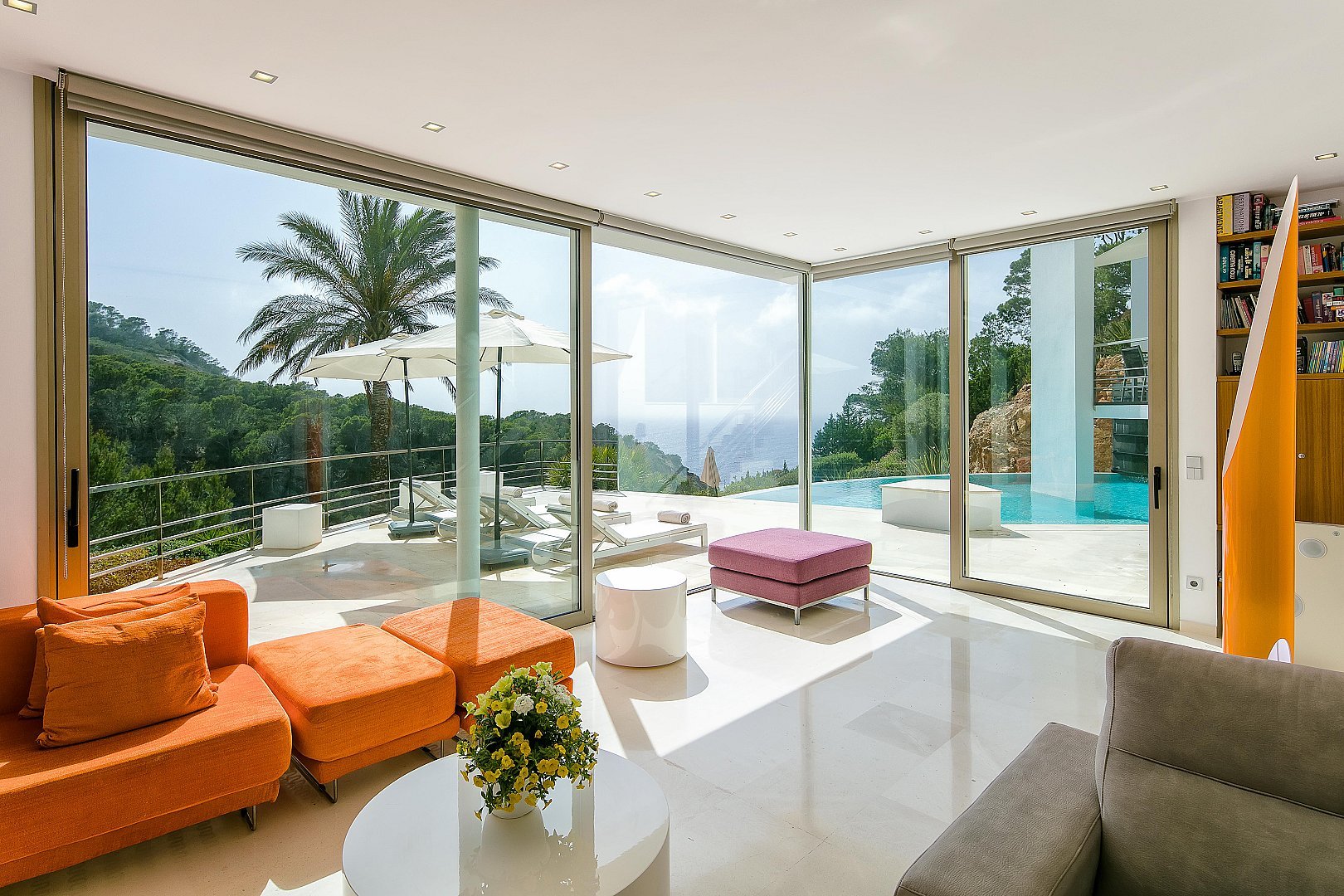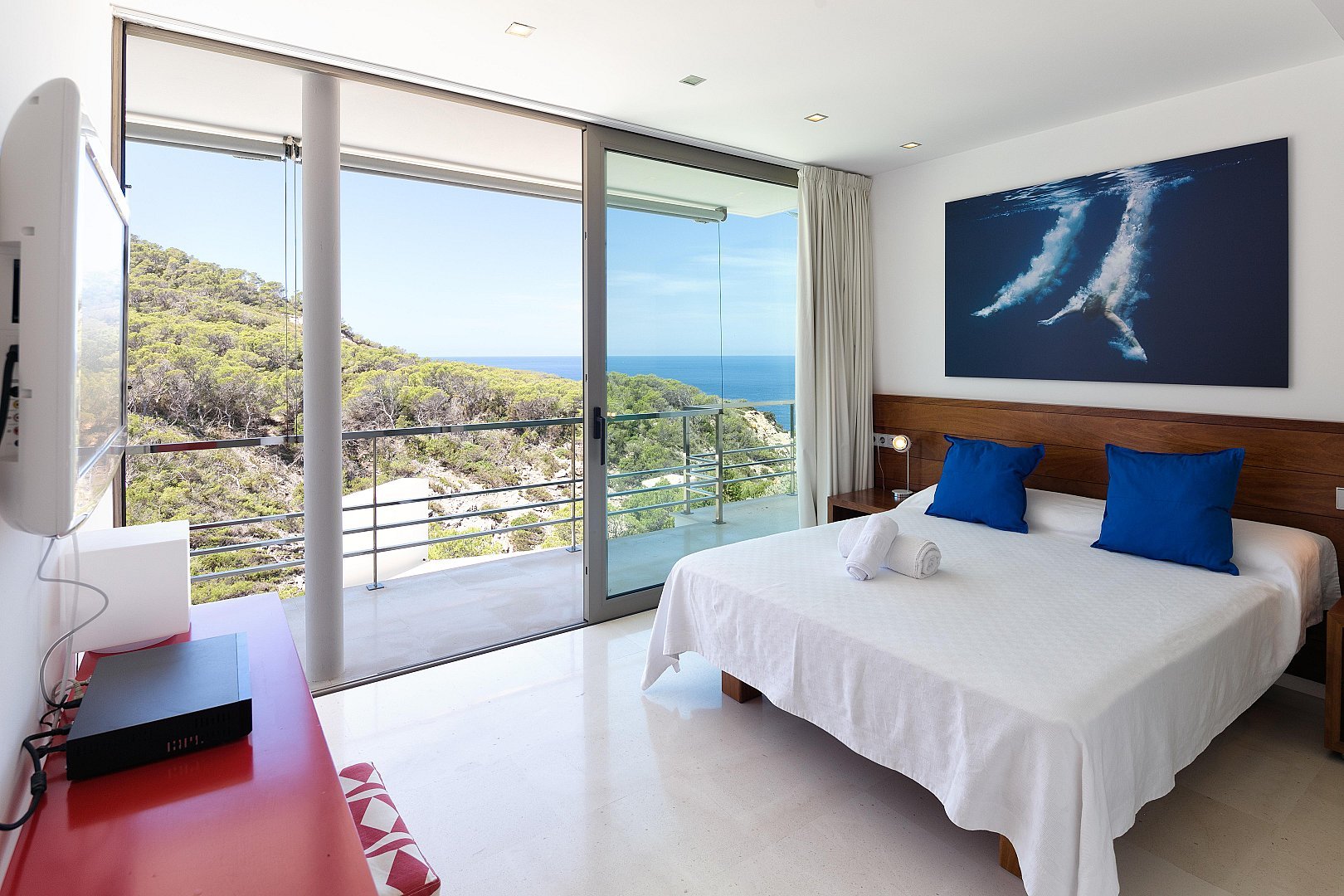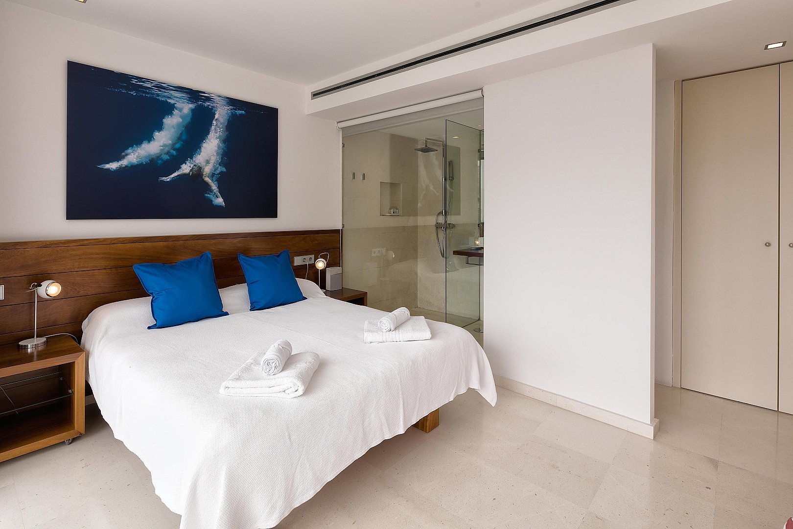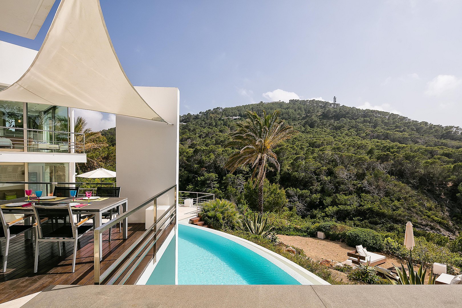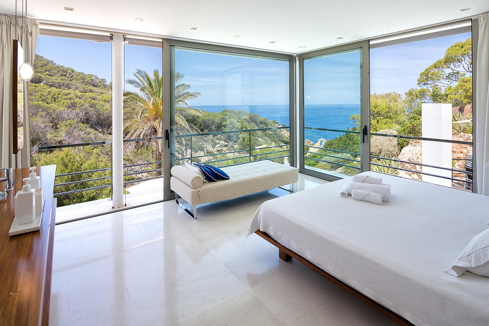 Dieses spektakuläre Anwesen, das besonders durch sein geschmackvolles und modernes Design besticht, liegt ganz in der Nähe der Cala Vadella, der Cala Tarida und Cala d’Hort, einigen der schönsten Strände der gesamten Insel, auch berühmt für die ausgezeichneten Fischrestaurants. Der malerische Ort San José befindet sich 15 Autominuten entfernt.