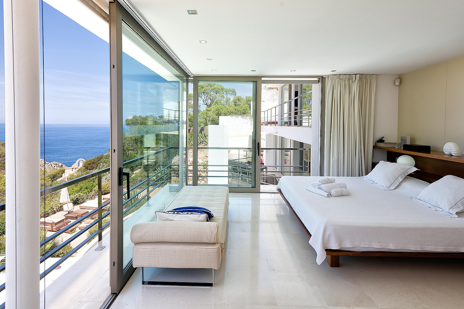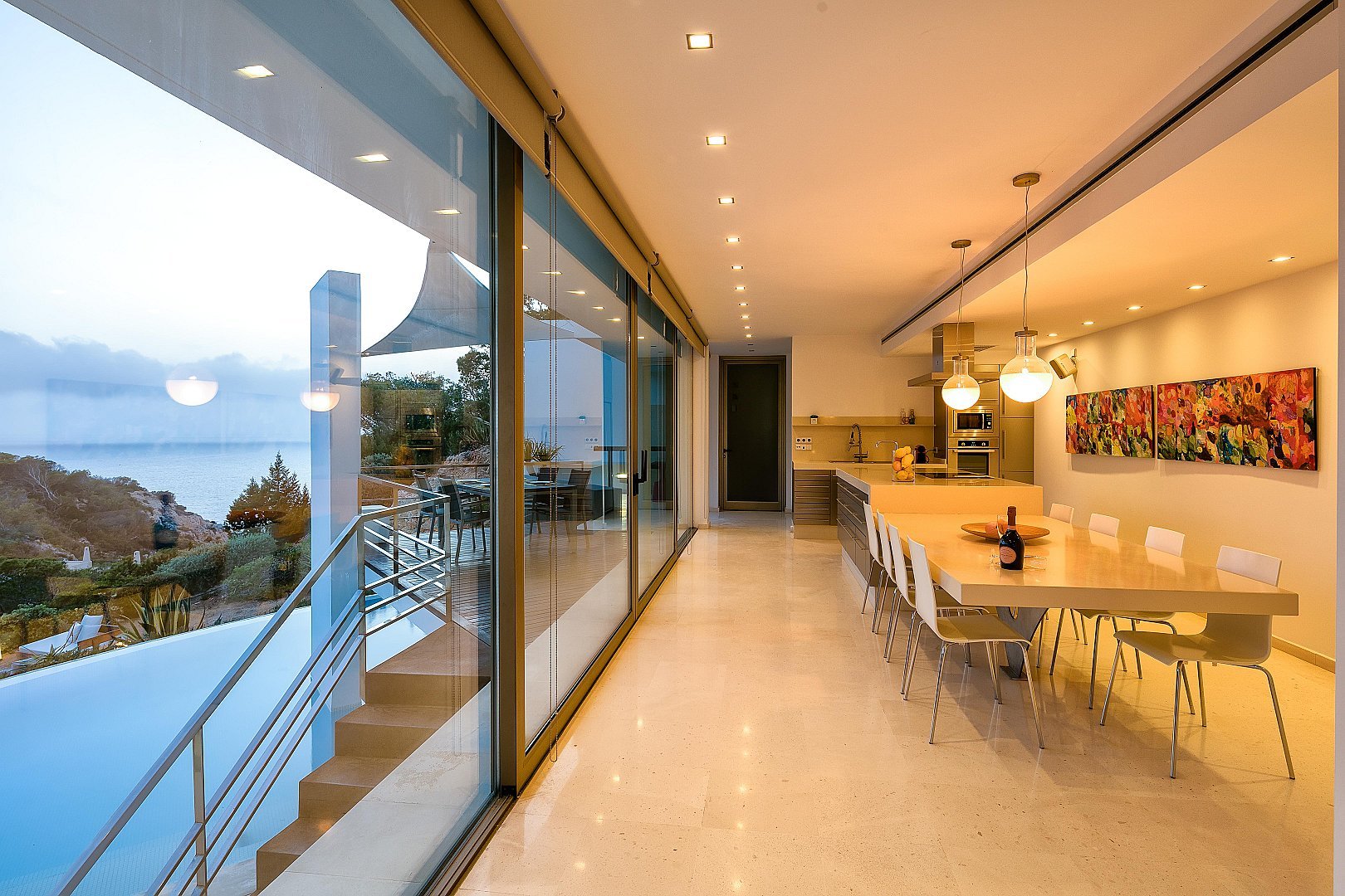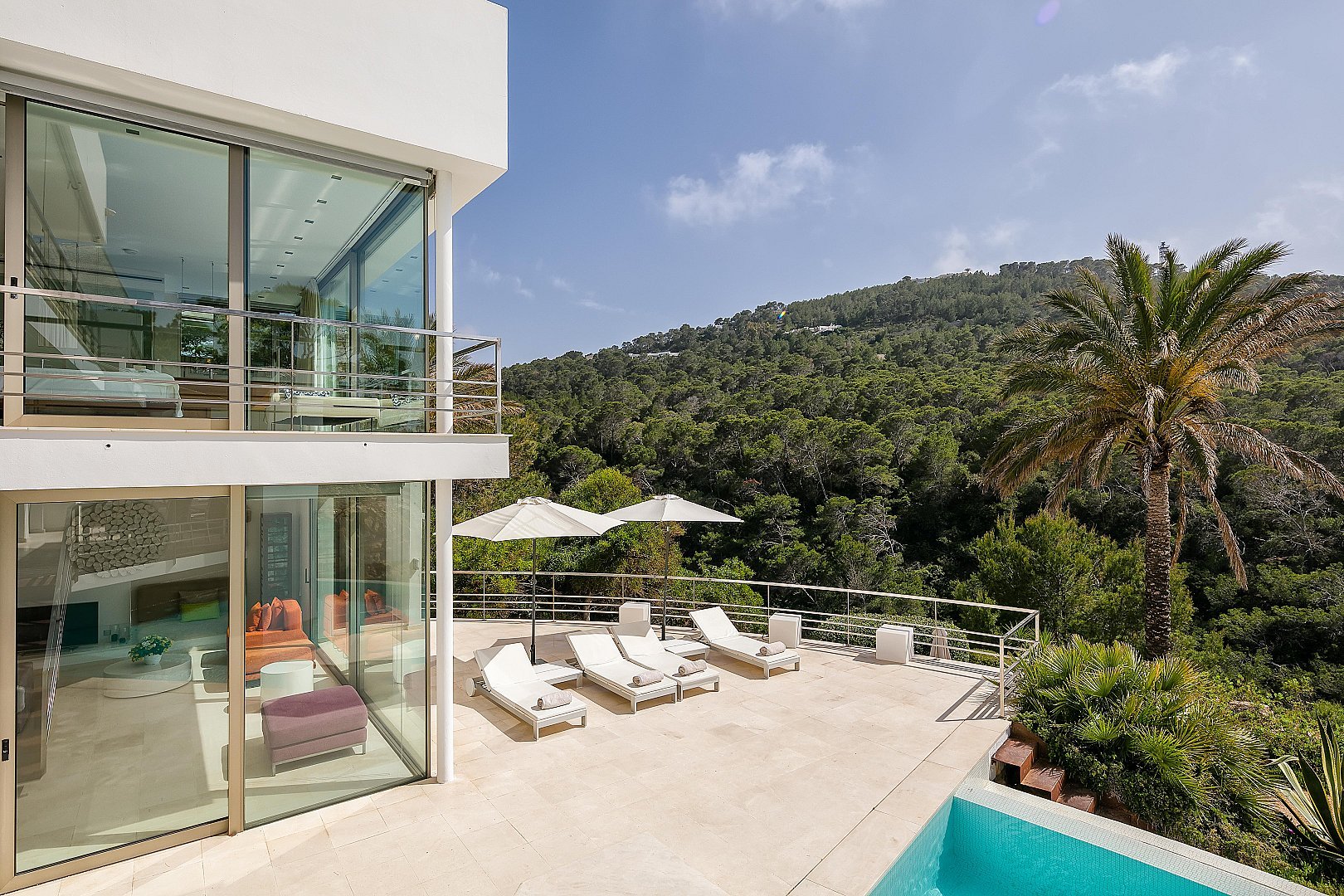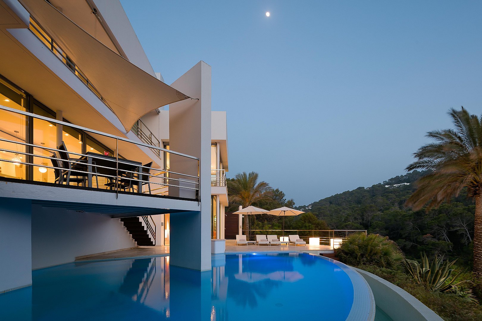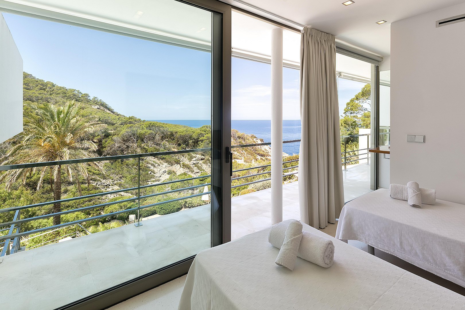 Dieses spektakuläre Anwesen, das besonders durch sein geschmackvolles und modernes Design besticht, liegt ganz in der Nähe der Cala Vadella, der Cala Tarida und Cala d’Hort, einigen der schönsten Strände der gesamten Insel, auch berühmt für die ausgezeichneten Fischrestaurants. Der malerische Ort San José befindet sich 15 Autominuten entfernt.