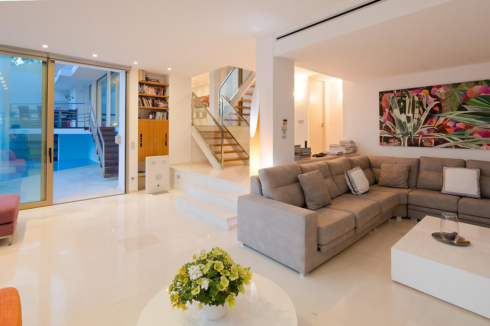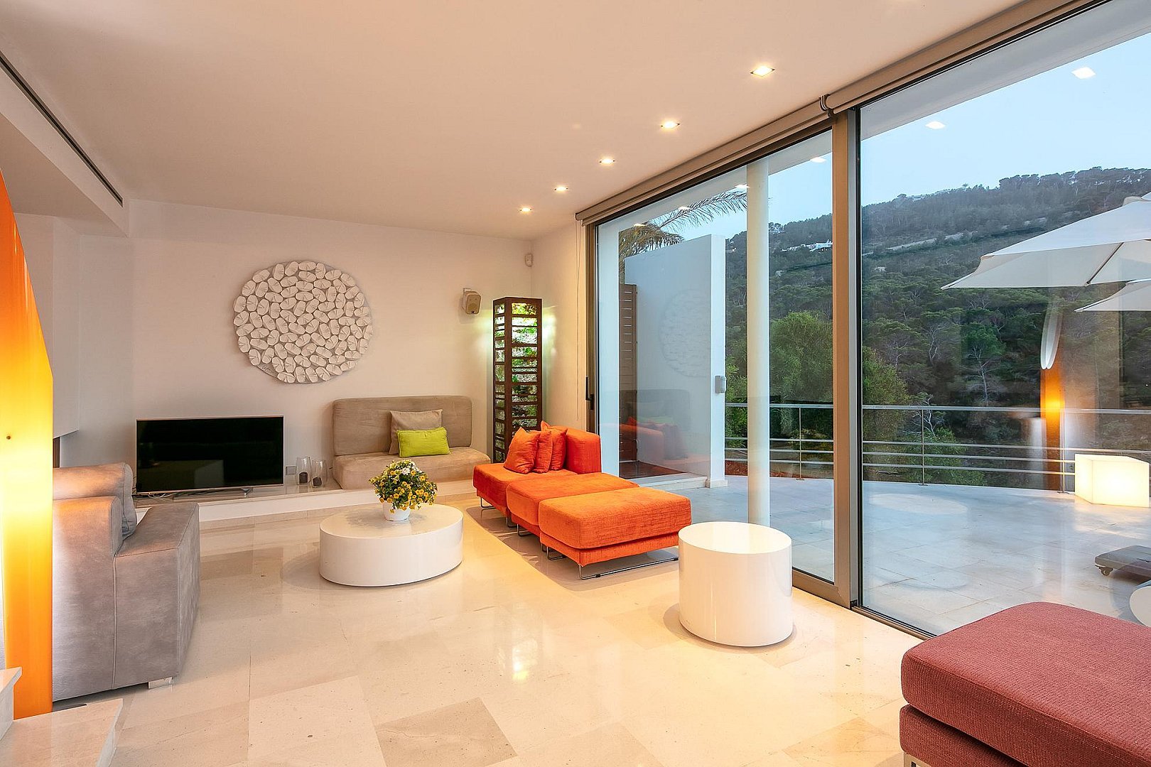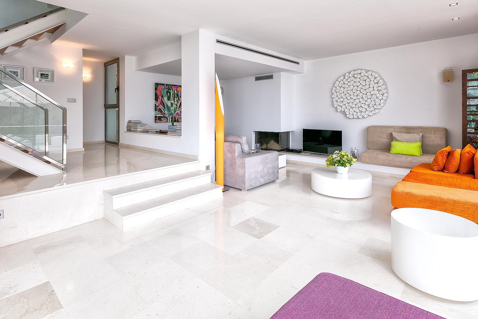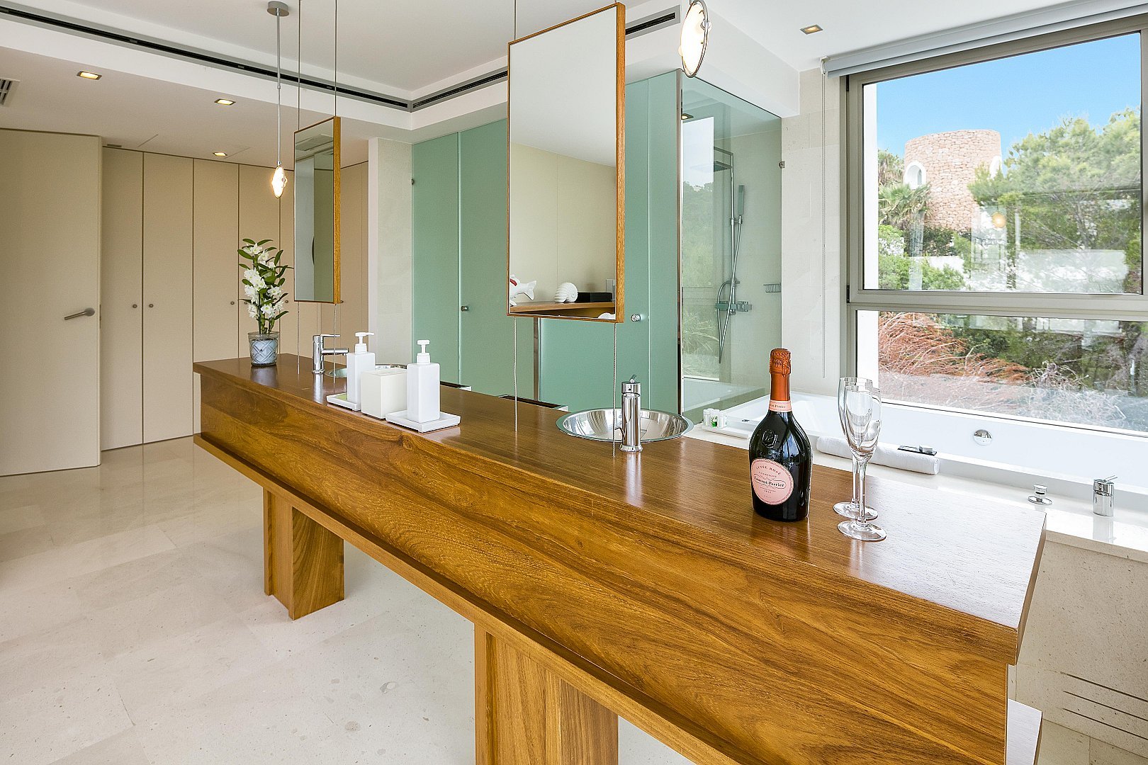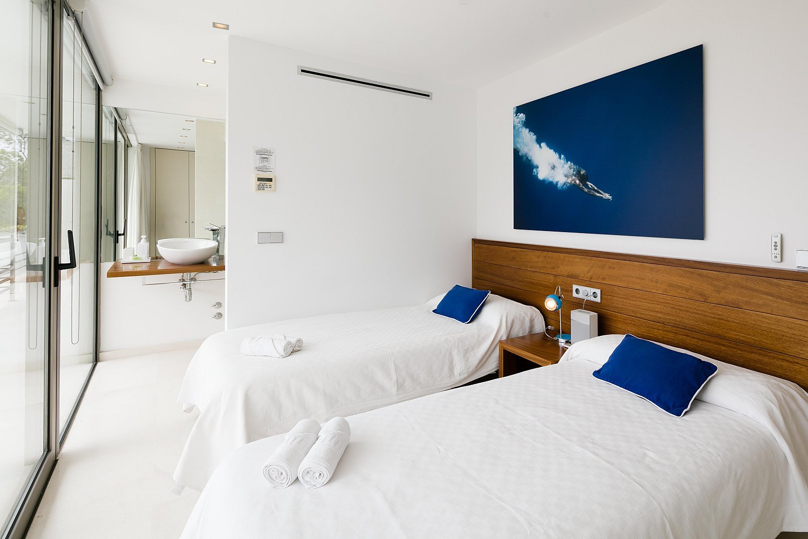 Dieses spektakuläre Anwesen, das besonders durch sein geschmackvolles und modernes Design besticht, liegt ganz in der Nähe der Cala Vadella, der Cala Tarida und Cala d’Hort, einigen der schönsten Strände der gesamten Insel, auch berühmt für die ausgezeichneten Fischrestaurants. Der malerische Ort San José befindet sich 15 Autominuten entfernt.