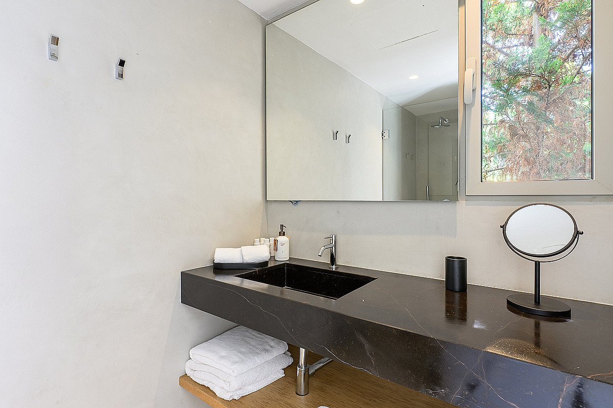- Gästesuite 4 (Untergeschoss) – eigenes Bad, direkter Zugang zum Garten.