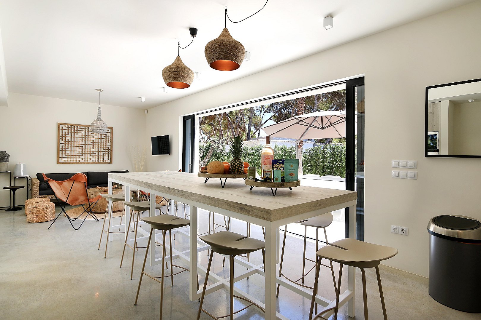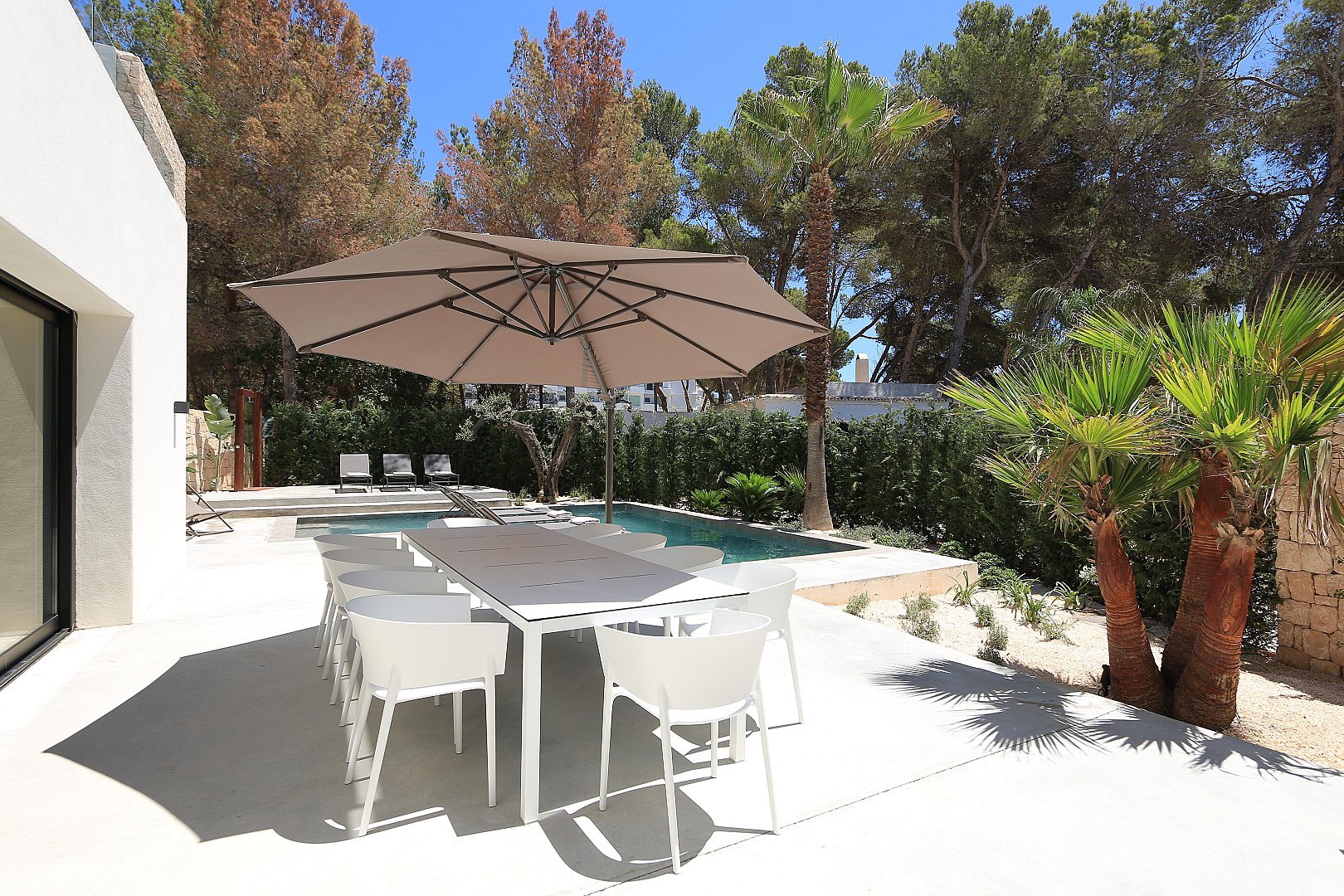 Diese atemberaubende Villa ist perfekt für Familien und Gruppen, die modernen Luxus am Meer suchen und gleichzeitig in der Nähe der wichtigsten Sehenswürdigkeiten Ibizas sein möchten.