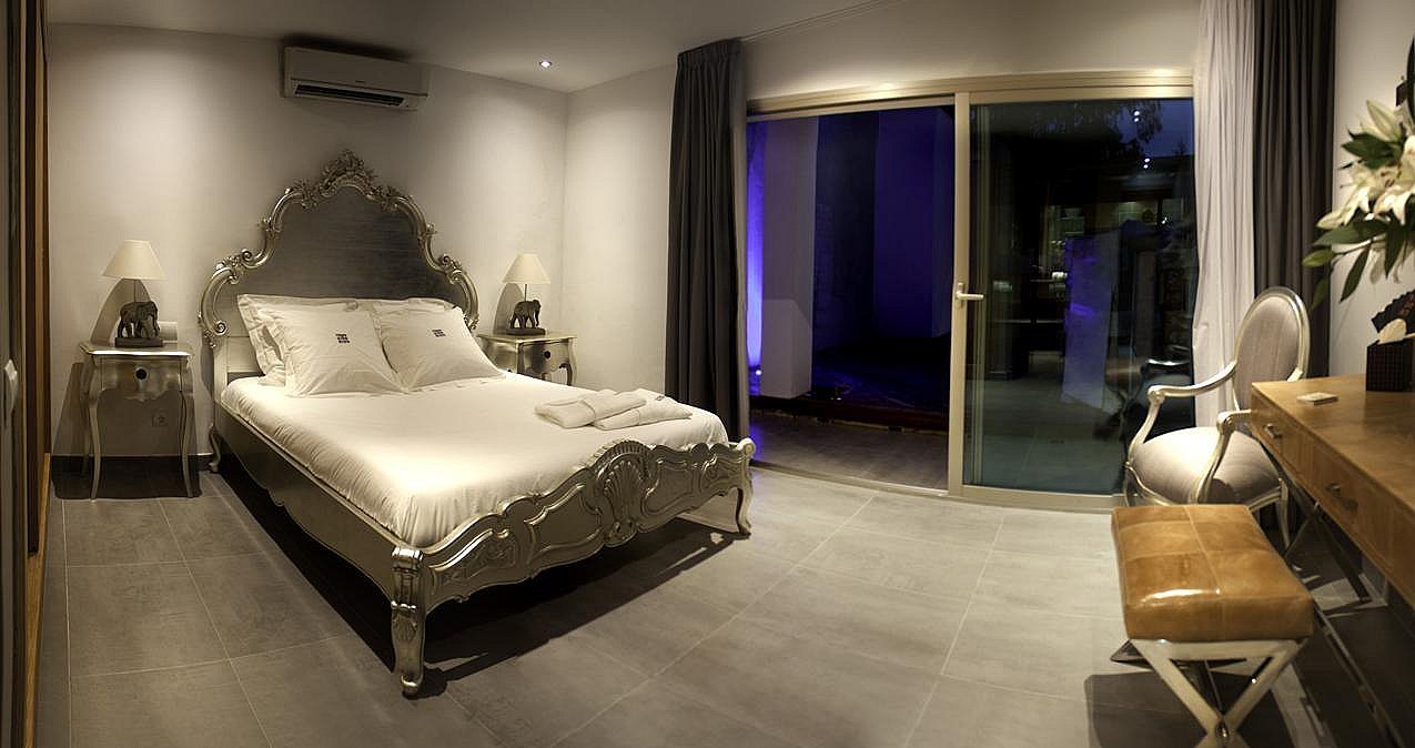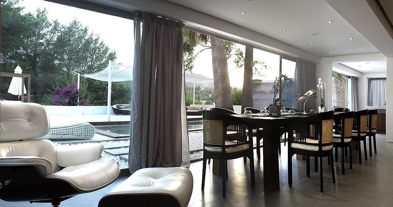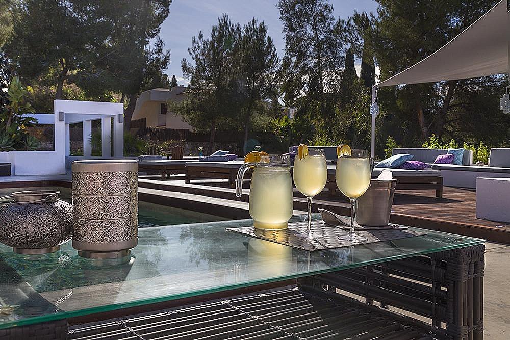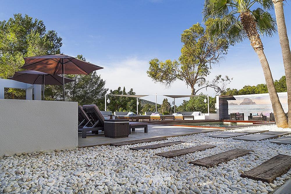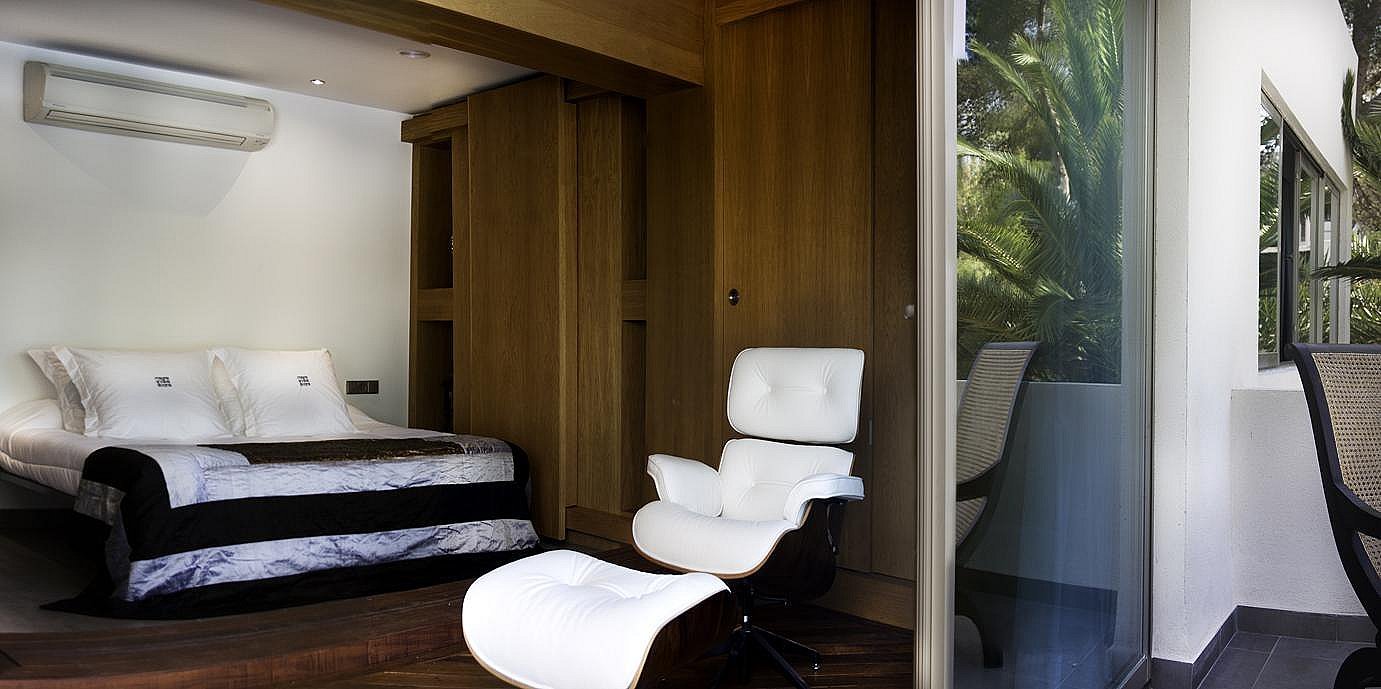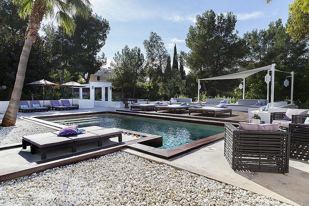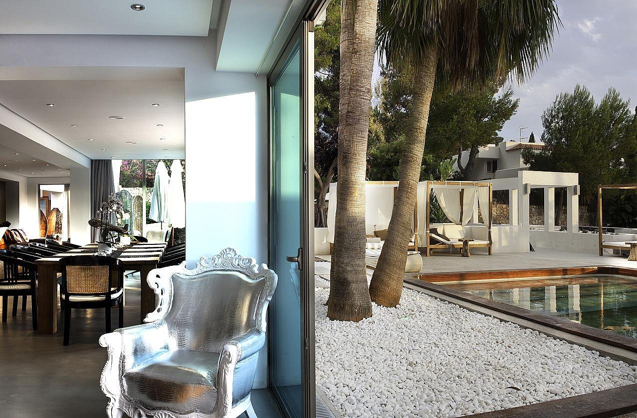 Mit 6 geräumigen Doppelzimmern, alle mit eigenem Bad, Klimaanlage, iPod-/iPhone-Dockingstation und LCD-Fernseher, bietet diese Villa modernste Annehmlichkeiten für ein unvergleichliches Ibiza-Erlebnis. Die Gäste können zwei private Swimmingpools, einen Fitnessraum, ein Arbeitszimmer, eine Yoga-Plattform im Freien und wunderschön angelegte Gärten mit Terrassen genießen – der perfekte Rückzugsort zum Entspannen, für Zusammenkünfte oder für Retreats.