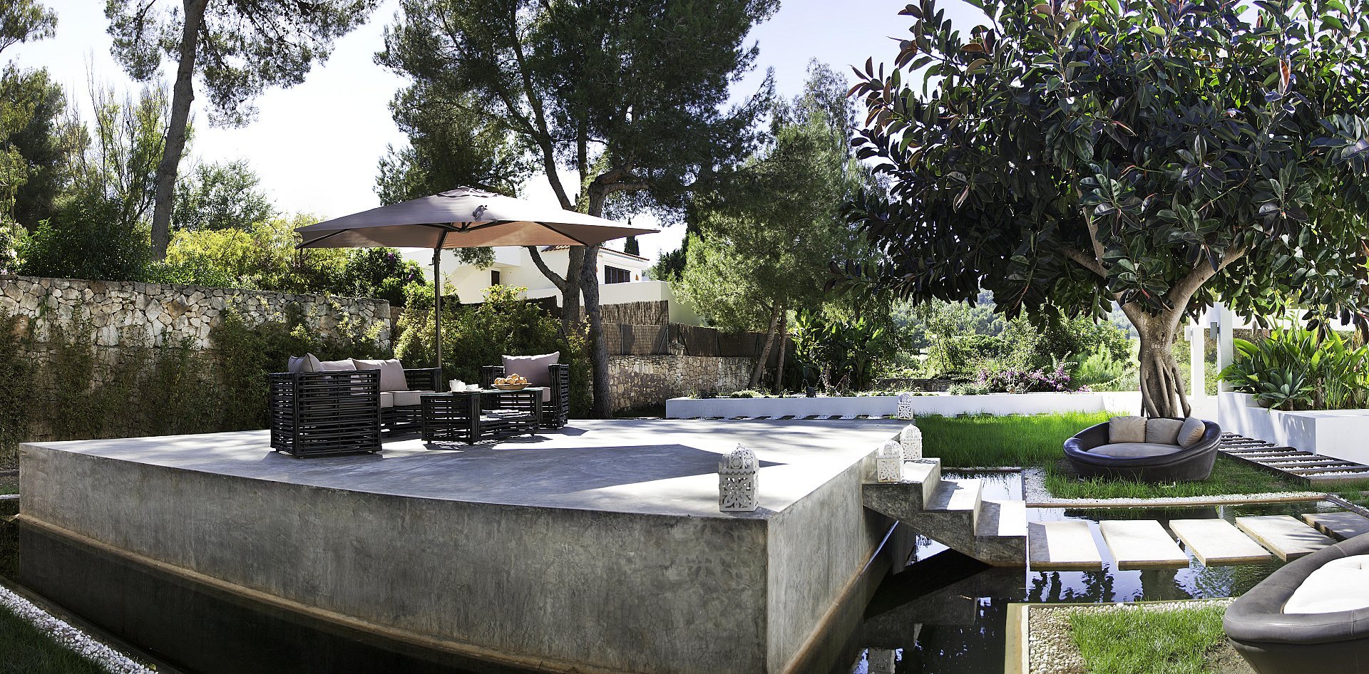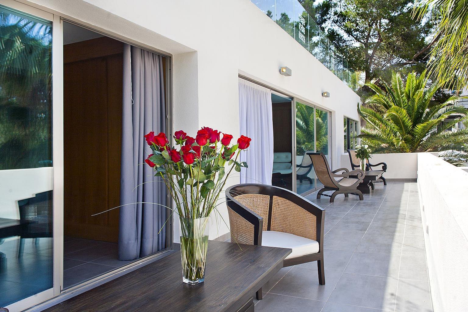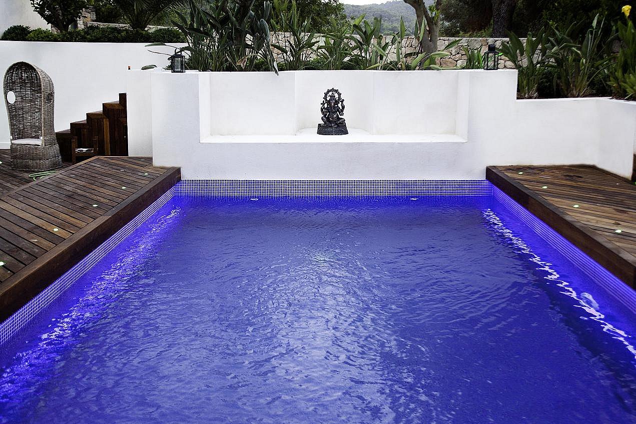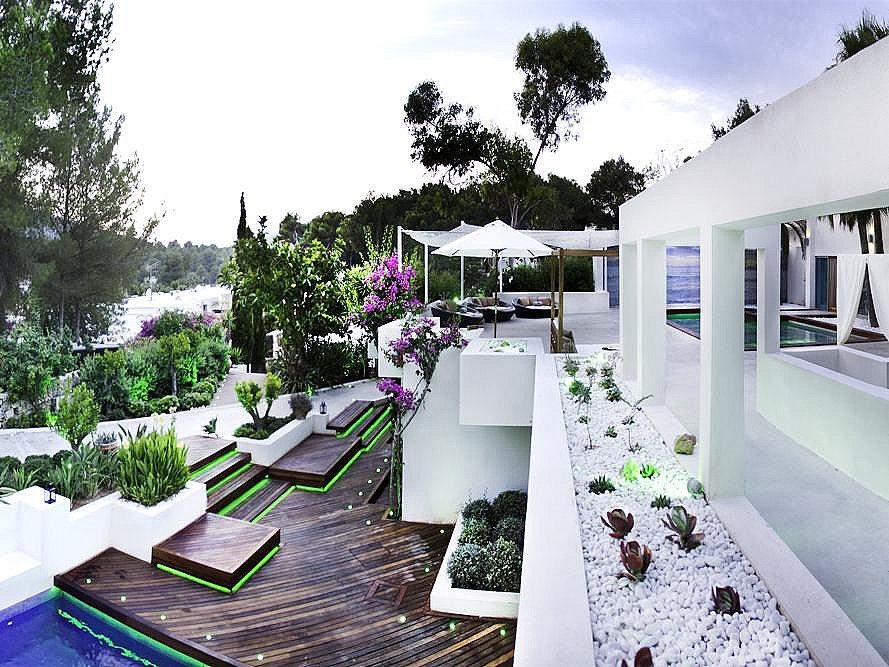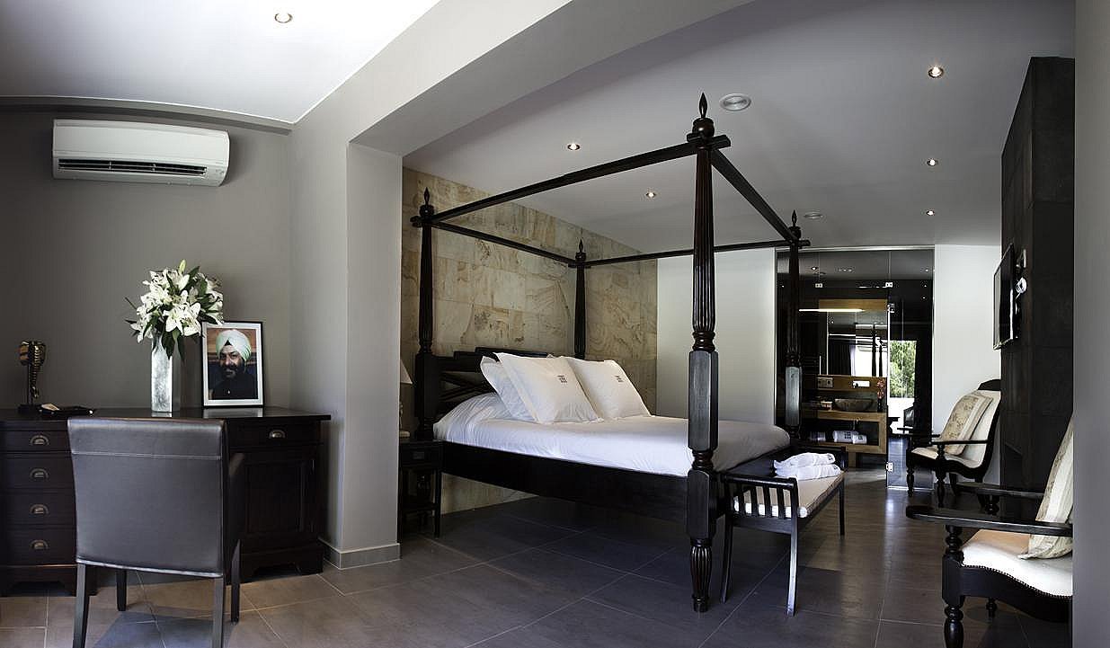 Mit 6 geräumigen Doppelzimmern, alle mit eigenem Bad, Klimaanlage, iPod-/iPhone-Dockingstation und LCD-Fernseher, bietet diese Villa modernste Annehmlichkeiten für ein unvergleichliches Ibiza-Erlebnis. Die Gäste können zwei private Swimmingpools, einen Fitnessraum, ein Arbeitszimmer, eine Yoga-Plattform im Freien und wunderschön angelegte Gärten mit Terrassen genießen – der perfekte Rückzugsort zum Entspannen, für Zusammenkünfte oder für Retreats.