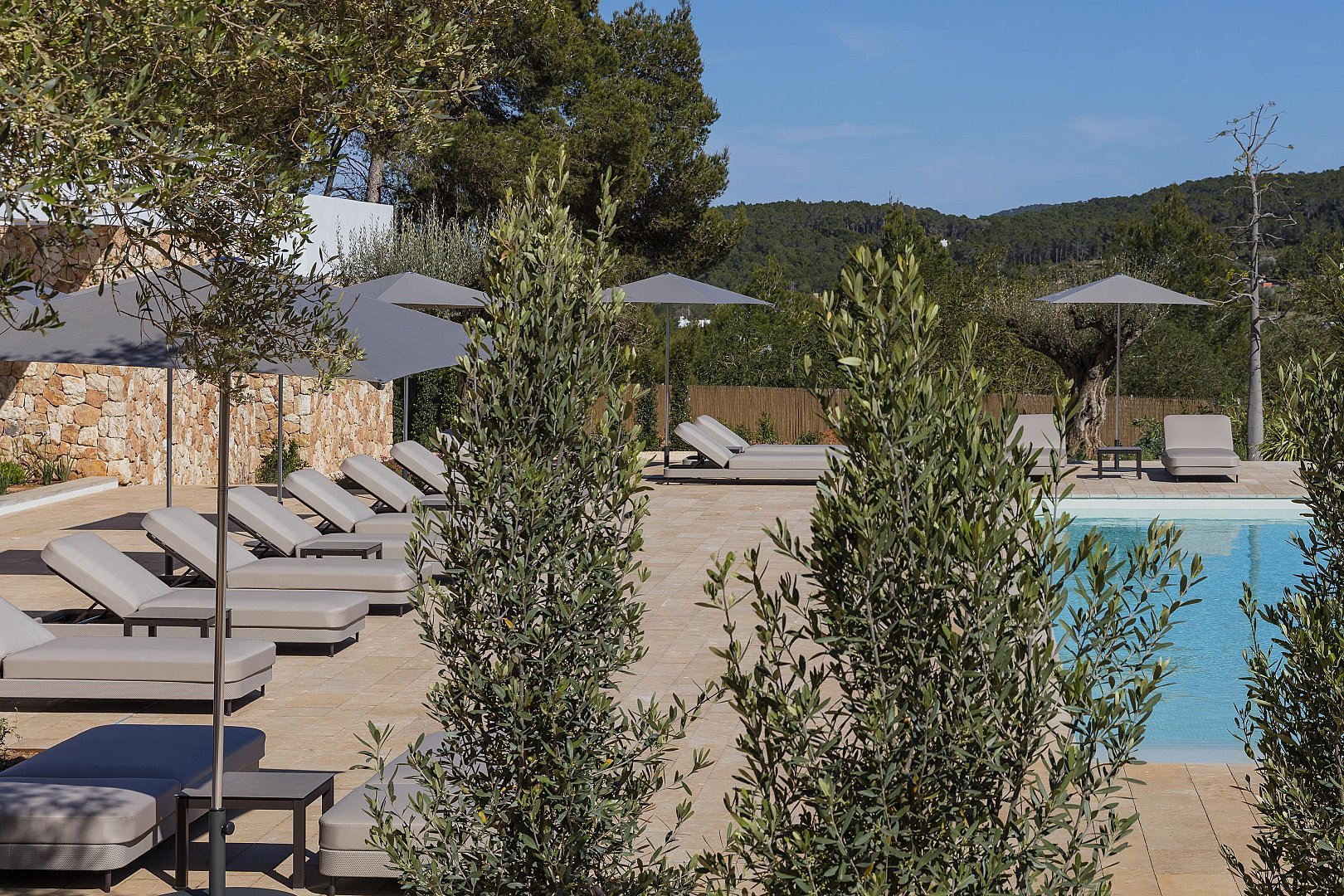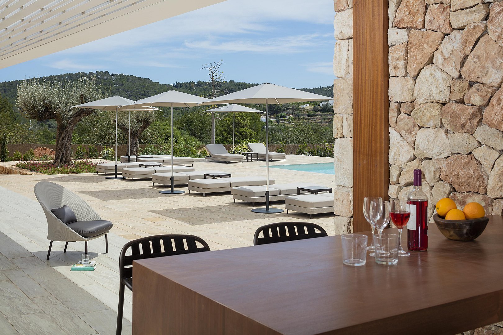 Die von Natur umgebene Villa verfügt über 380 m² Wohnfläche auf einem 20.000 m² großen Grundstück, das mit Wäldern und mediterranem Ackerland gefüllt ist, und bietet einen exklusiven Rückzugsort mit absoluter Privatsphäre. Jede der 7 Suiten verfügt über einen eigenen Wohnbereich und ein eigenes Bad mit Regenduschen, was für ein Erlebnis im Boutique-Hotel-Stil sorgt.