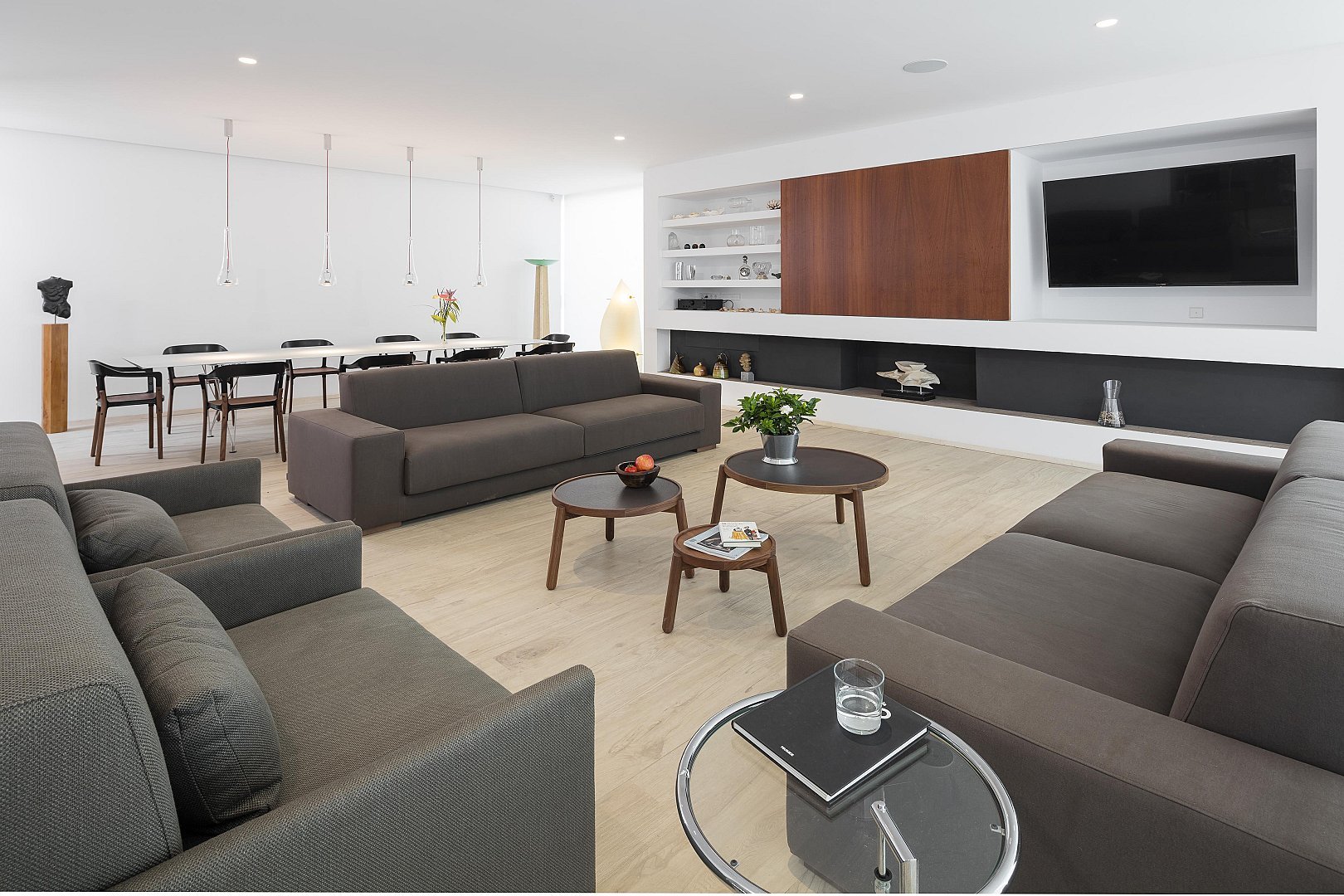 • Großzügiges Wohnzimmer – Mit Kamin und raumhohen Glastüren, die einen offenen und luftigen Raum schaffen