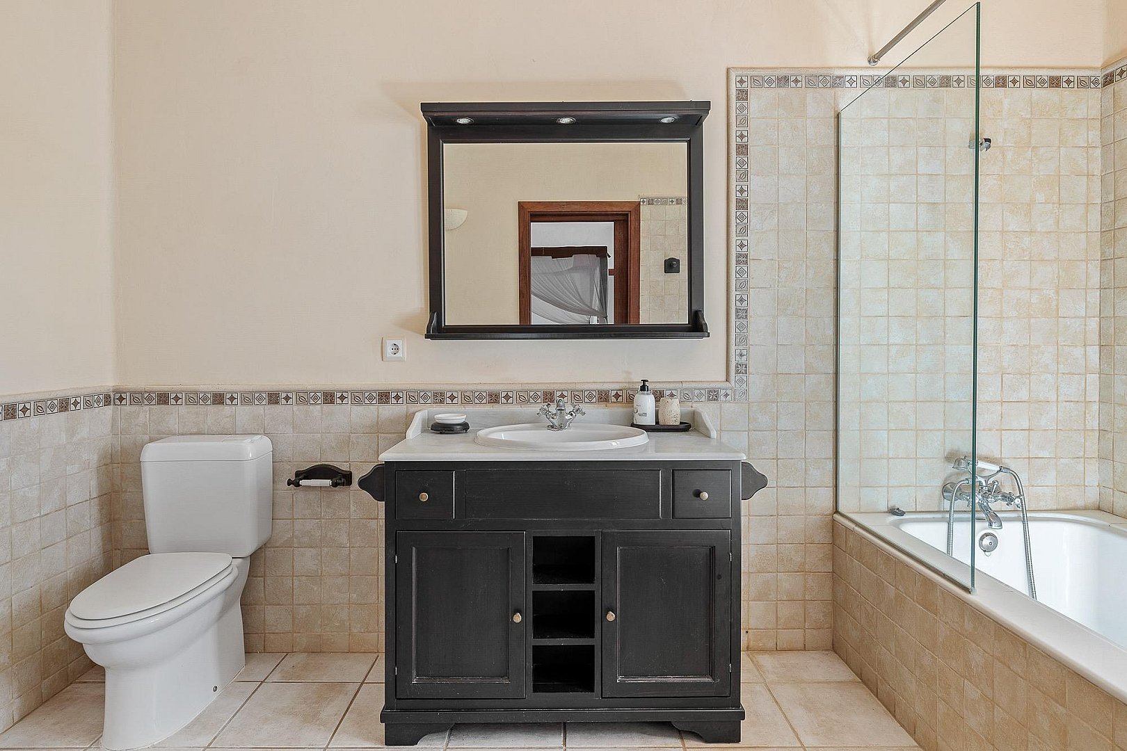 Im Inneren verbindet die Finca rustikale Eleganz mit modernem Komfort und bietet zwei gemütliche Wohnzimmer, einen Aufenthaltsraum mit Satellitenfernsehen und eine voll ausgestattete offene Küche.