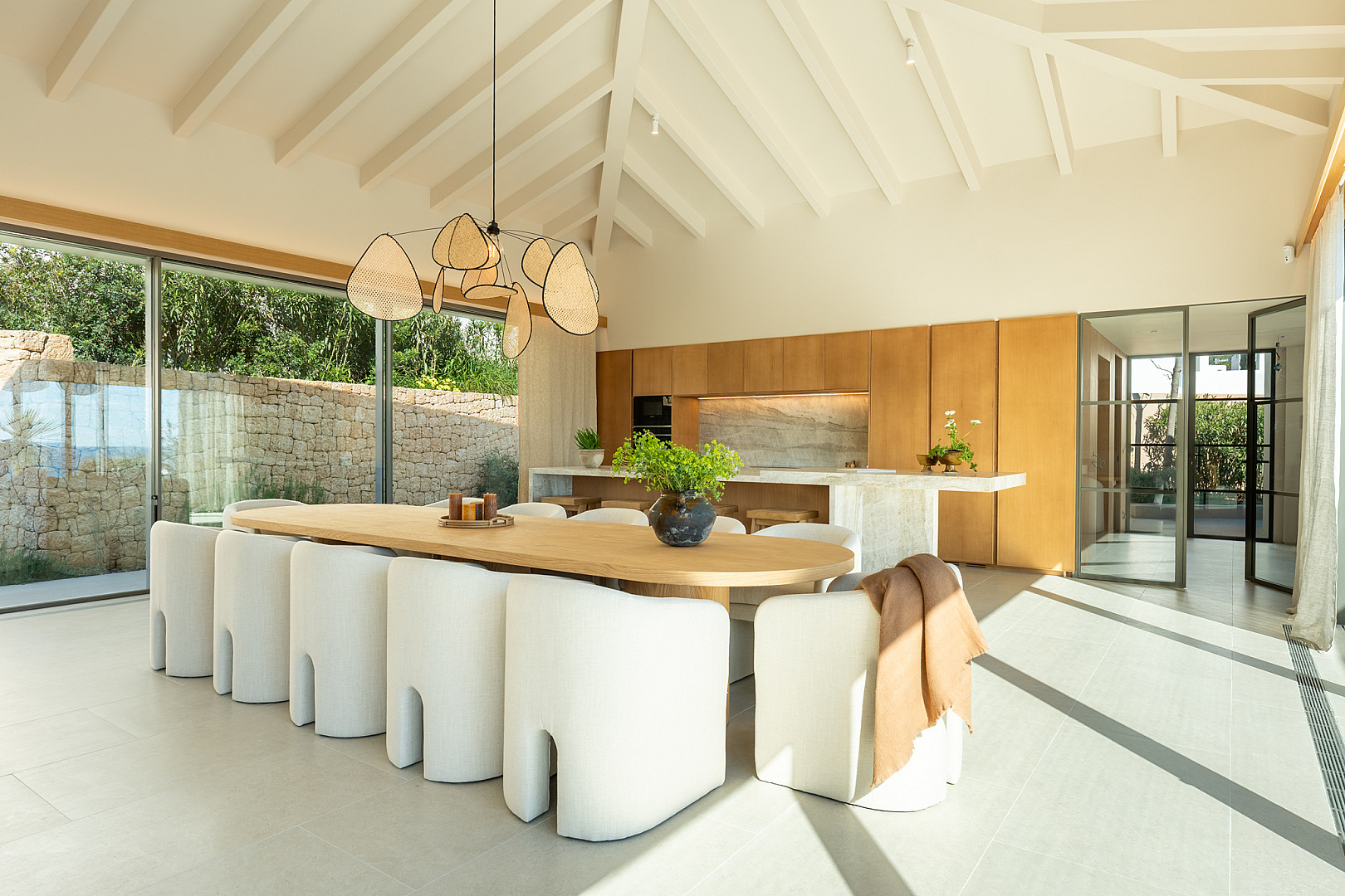 Diese erst kürzlich fertiggestellte Luxusvilla in der begehrten Wohngegend Cap Martinet verkörpert den ultimativen Ibiza-Lifestyle. Villa Imagine verbindet anspruchsvolle, moderne Architektur mit atemberaubenden Panoramablicken über das Mittelmeer bis nach Formentera. Die Gestaltung ist auf eine nahtlose Verbindung zwischen Innen- und Außenbereich ausgerichtet, wobei großflächige Schiebetüren die hellen Wohnbereiche mühelos zu den Terrassen und dem Poolbereich hin öffnen. Im gesamten Haus wurden ausschließlich Materialien von höchster Qualität verwendet, was in einem durch und durch eleganten und raffinierten Ambiente resultiert. Die Villa bietet sechs geräumige Schlafzimmer, von denen jedes über ein eigenes, gleichwertiges Badezimmer en-suite verfügt. Für höchsten Komfort sorgt ein Aufzug, der alle Ebenen des Anwesens barrierefrei miteinander verbindet. Die Außenanlagen umfassen einen Swimmingpool und weitläufige Terrassen, die zum Genießen der mediterranen Sonne einladen. Eine überdachte Garage bietet Platz für vier Fahrzeuge. Zusätzlich verfügt die Immobilie über eine großzügige Flexzone, die noch nach den individuellen Wünschen des neuen Eigentümers gestaltet werden kann – ideal für einen Wellnessbereich, einen Indoor-Pool, eine private Bar oder ein Fitnessstudio.