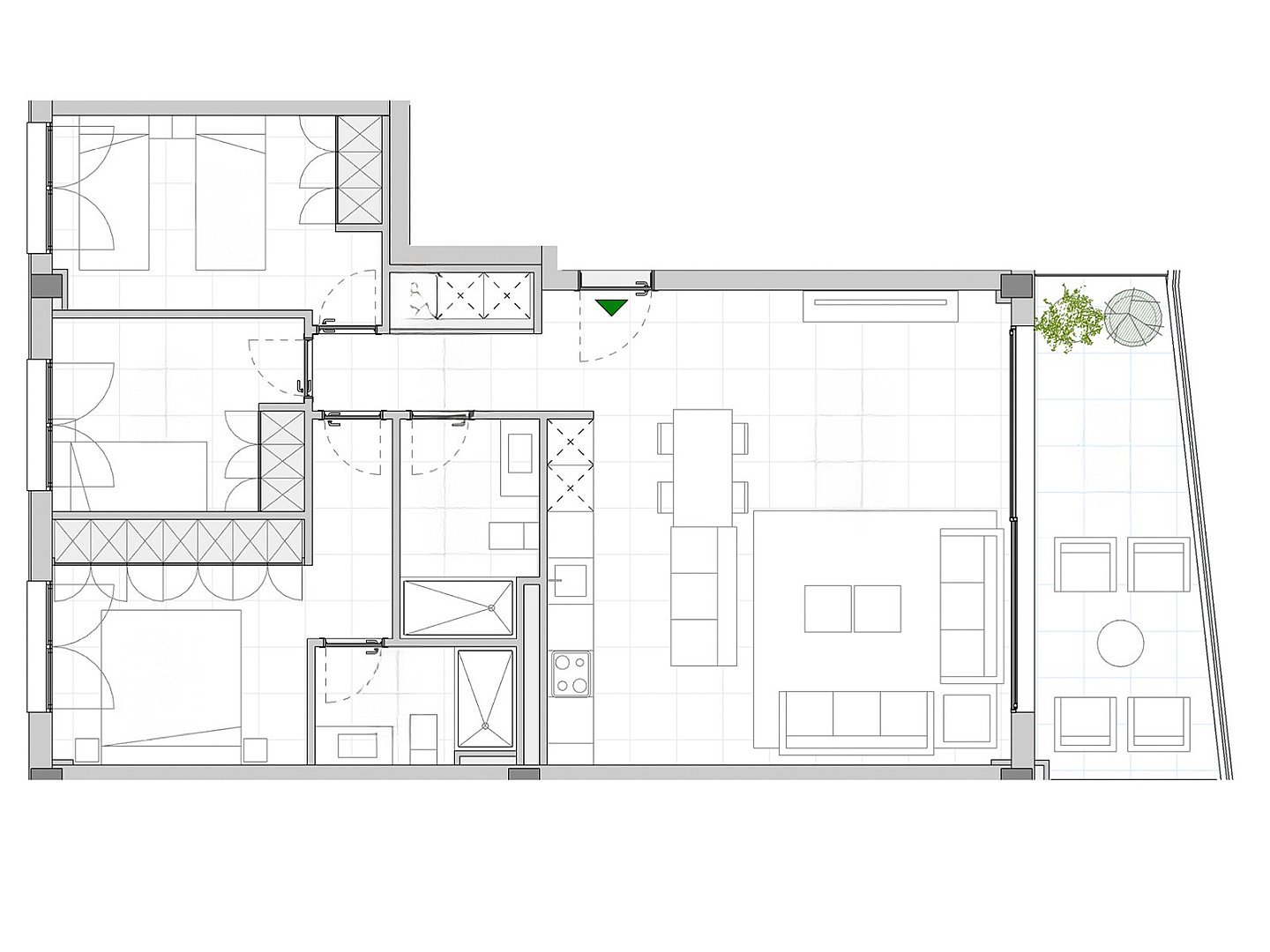 Dieses exklusive Neubauprojekt befindet sich in einer der begehrtesten Lagen Ibizas – nur wenige Schritte vom Yachthafen Marina Botafoch und dem beliebten Strand von Talamanca entfernt. Eine erstklassige Adresse, ideal für anspruchsvolle Eigennutzer sowie für Investoren mit Blick auf nachhaltige Wertsteigerung. Die Architektur vereint zeitgenössisches Design mit hochwertigen Materialien und einem besonderen Fokus auf Nachhaltigkeit und Wohnkomfort. Diese Wohnung verfügt über drei großzügige Doppelschlafzimmer, zwei voll ausgestattete Badezimmer sowie eine offene Küche, die sich harmonisch mit dem Wohn-Essbereich verbindet. Vom Wohnraum gelangt man auf eine weitläufige Terrasse mit seitlichem Ausblick – lichtdurchflutet und optimal genutzt in jedem Detail. Alle Einheiten bieten moderne Ausstattungsmerkmale für ein komfortables Wohnerlebnis, sowie über einen eigenen Stellplatz. Die Wohnanlage umfasst 84 Einheiten, eine Tiefgarage, einen grosszügigen Gemeinschaftspool sowie gepflegte Gartenanlagen. Ein stilvoller Rückzugsort inmitten der Natur – und dennoch im Herzen der exklusivsten Gegend der Stadt Ibiza.