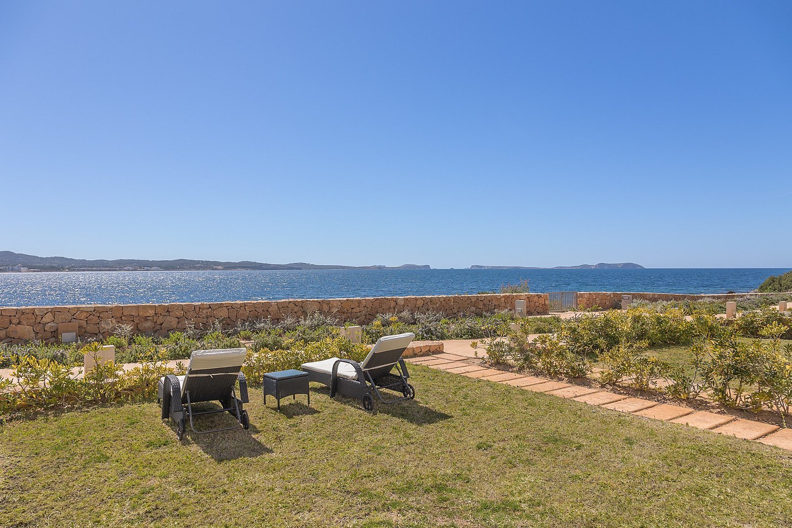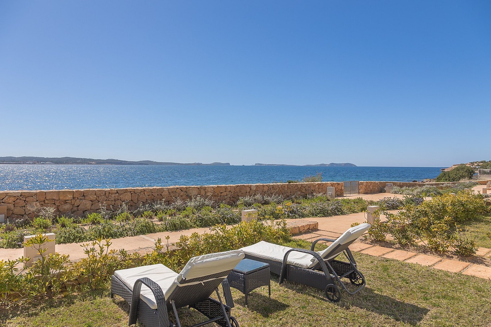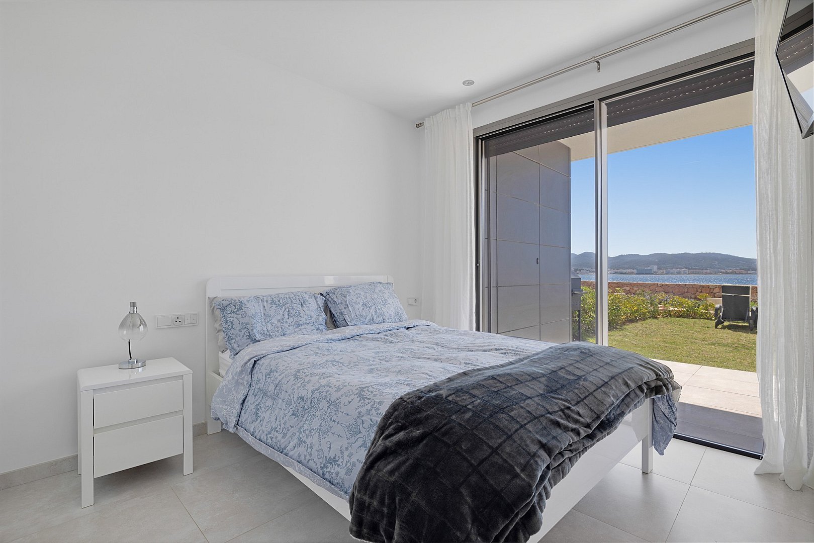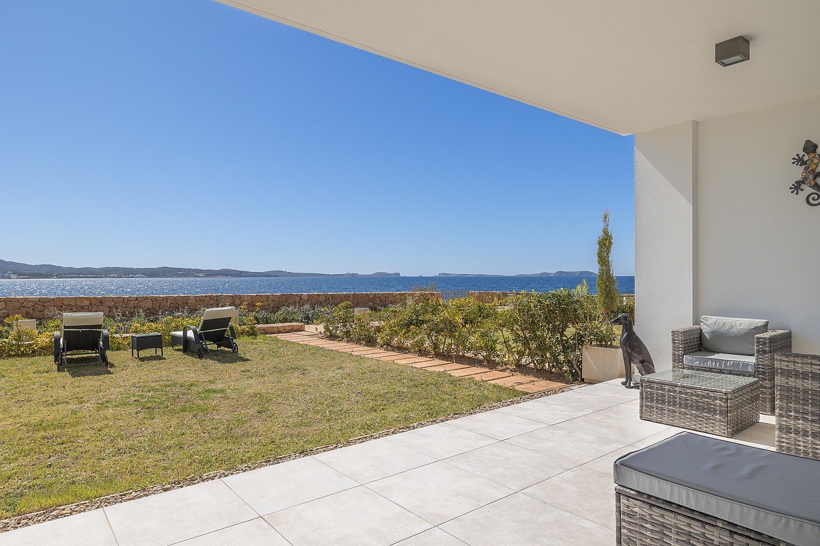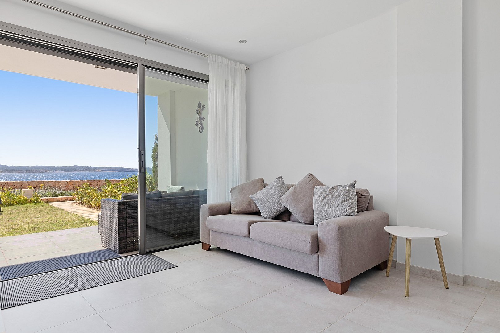 Dieses Gartenapartment in erster Meereslinie liegt in einzigartiger und ruhiger Lage an der Cala Gració. Im Erdgeschoss des Gebäudes bietet es Komfort, Qualität und Eleganz. Meerblick und den Sonnenuntergang genießt man hier in privilegierter Lage und das ganzjährig. Der geräumige Wohn-/Essbereich ist besonders hervorzuheben. Die Küche ist komplett ausgestattet und es gibt zwei große Schlafzimmer sowie zwei Bäder en Suite. Die Lage ist strategisch günstig und bequem, nahe dem Strand sowie privater und öffentlicher Infrastruktur. Zweifellos eine sehr gute Wahl wenn es um Qualität und Lage geht. Die Anlage verfügt zudem auch über einen Gemeinschaftspool und direkten Zugang zum Meer. Das Apartment verfügt über einen privaten Garten mit ca. 55 m². Ein Tiefgaragenstellplatz und ein Abstellraum ist im Preis enthalten und runden das Angebot ab.