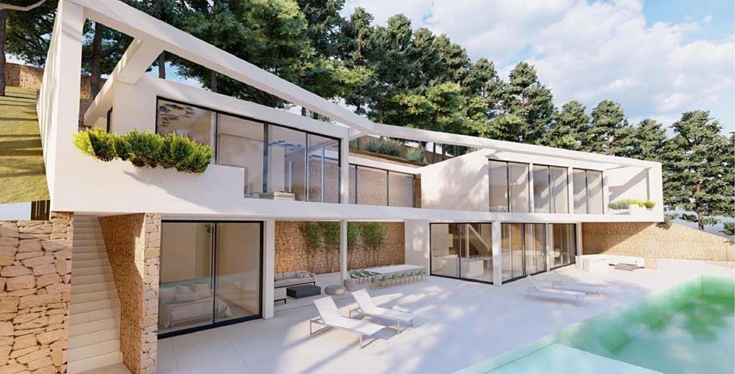 Dies ist ein Grundstück mit einem Projekt zum Bau einer modernen Villa in einer exklusiven und gesicherten Urbanisation namens Roca Llisa. Die Urbanisation Roca Llisa ist ideal gelegen, innerhalb einer kurzen Autofahrt erreichen Sie Ibiza-Stadt und Marina Botafoch sowie Santa Eulalia und den Golfplatz. Das Projekt umfasst vier Schlafzimmer mit jeweils eigenem Bad, ein großzügiges Wohnzimmer mit offener Küche, einen Infinity-Pool und eine Garage. Von allen Schlafzimmern sowie dem Wohnzimmer und Pool genießen Sie einen atemberaubenden Blick auf das Meer und Formentera. Einzigartig an diesem Projekt ist der 100 m2 große Infinity-Pool. Das Grundstück ist nach Südwesten ausgerichtet, was ideal ist, da Sie von der Sonne vom Morgen bis zum späten Nachmittag profitieren können. Dies ist eine großartige Gelegenheit, die Villa Ihrer Träume in der gesicherten Urbanisation Roca Llisa zu bauen.