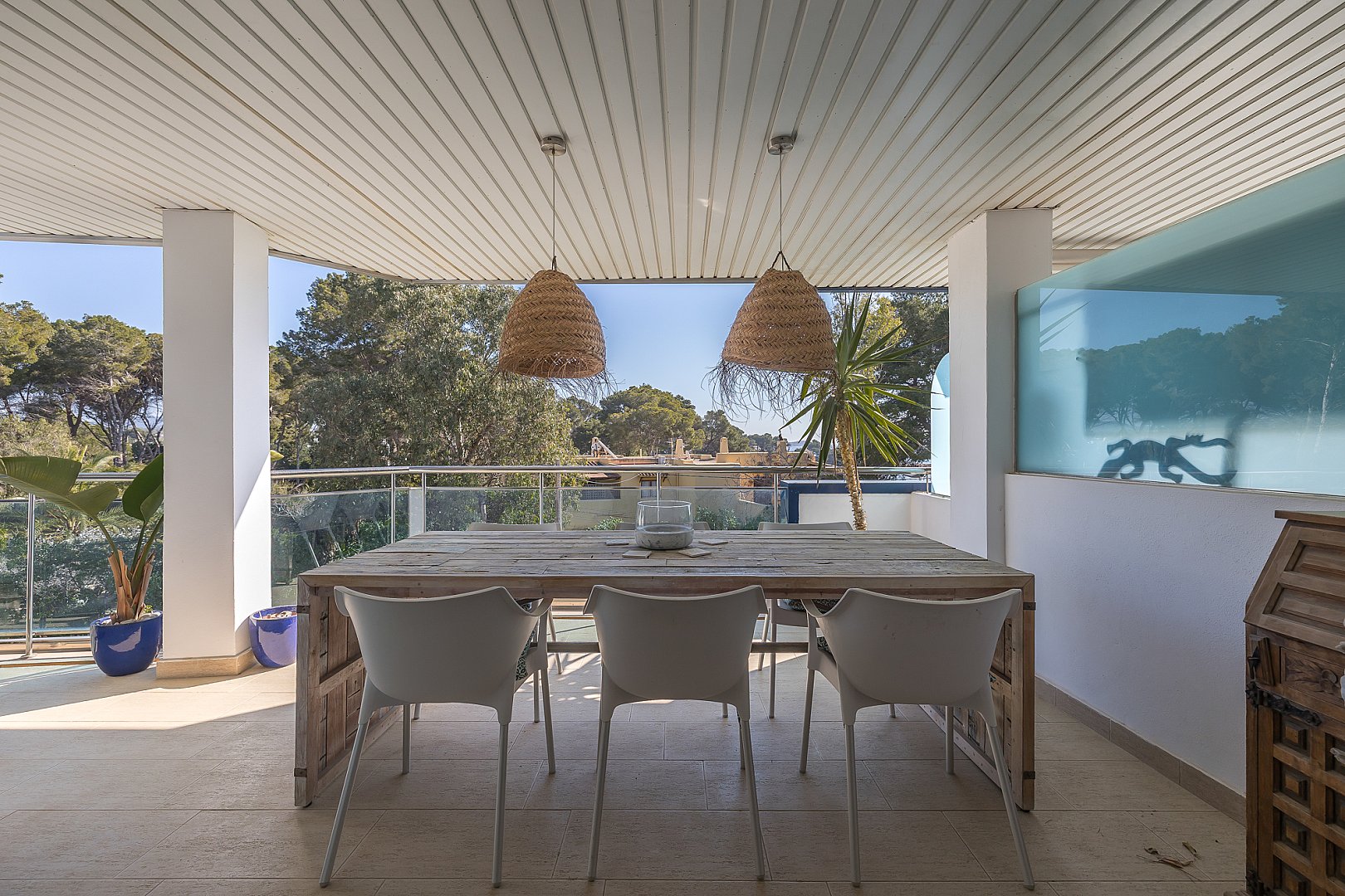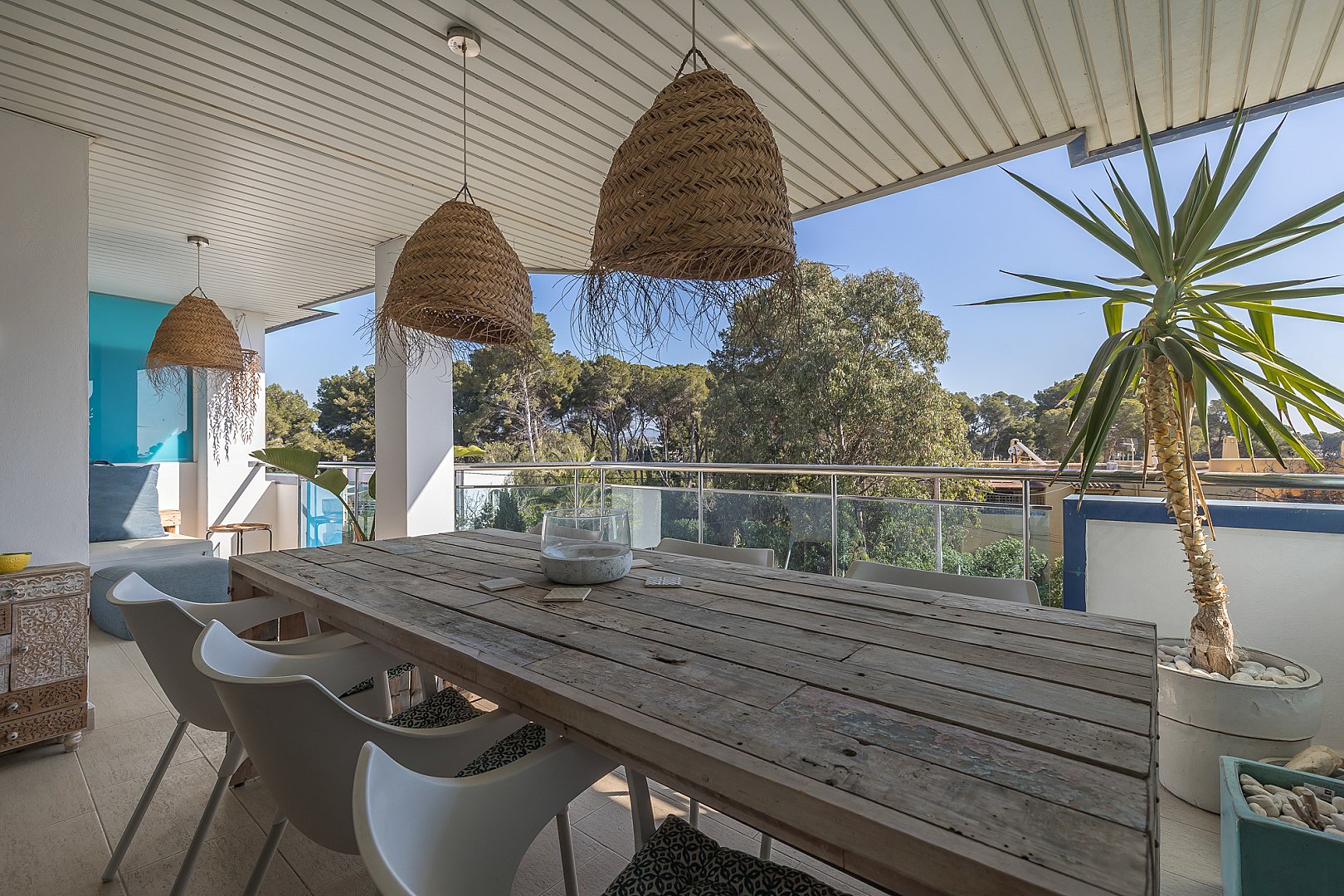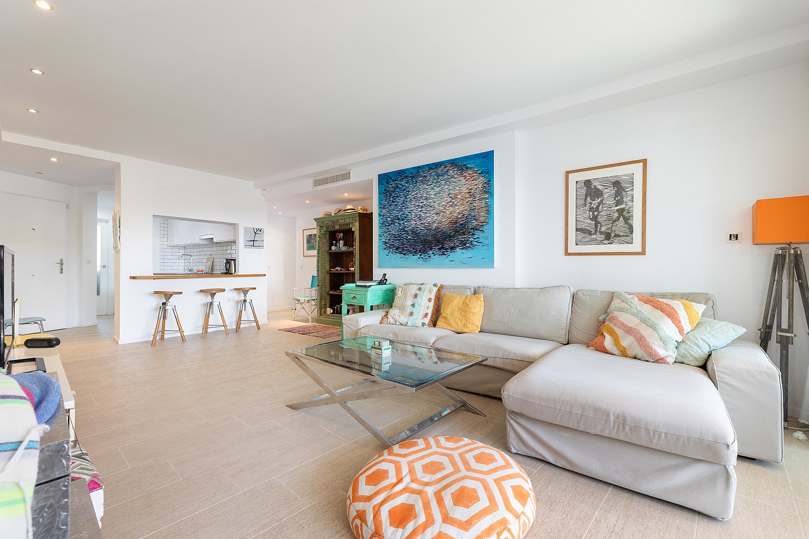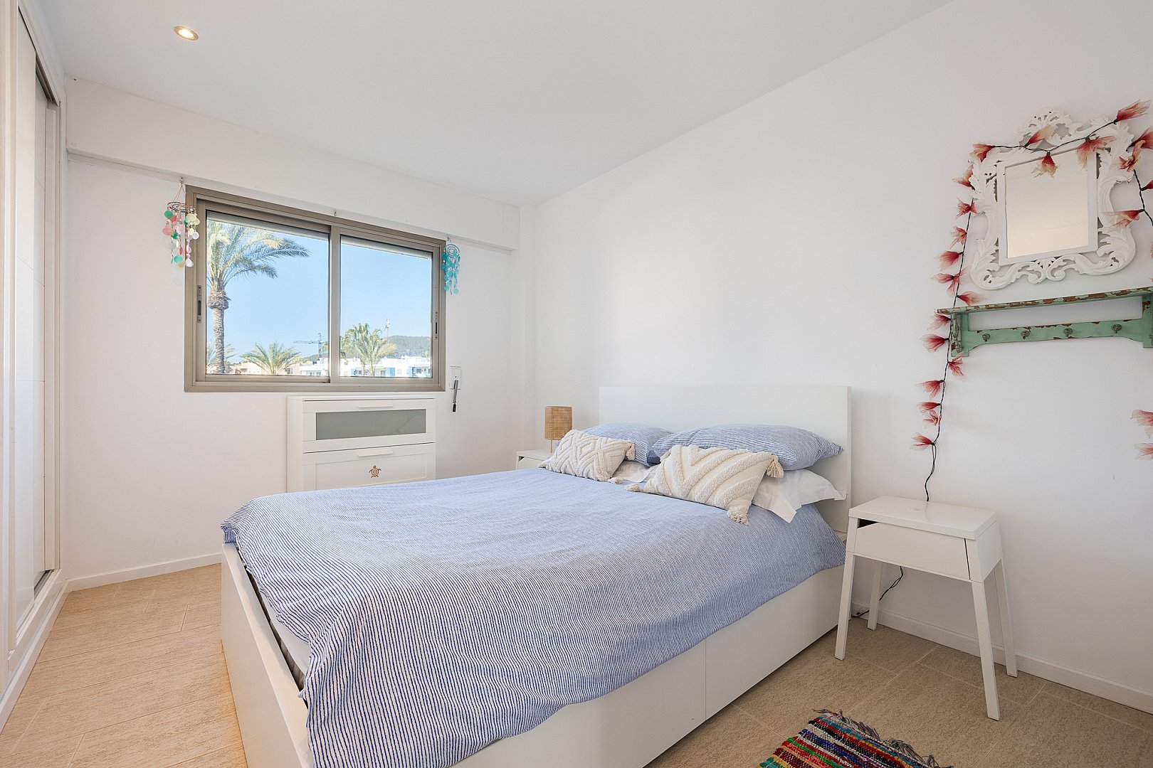 Diese geschmackvoll präsentierte Wohnung mit drei Schlafzimmern vereint Komfort, Funktionalität und eine hervorragende Lage in fußläufiger Entfernung zum Strand sowie zu sämtlichen Annehmlichkeiten von Santa Eulària. Die Immobilie verfügt über drei gut geschnittene Schlafzimmer und zwei Badezimmer. Eine offene Küche mit angrenzendem Hauswirtschafts- bzw. Abstellraum ergänzt das durchdachte Raumkonzept. Der lichtdurchflutete Wohn- und Essbereich öffnet sich direkt zur ostseitig ausgerichteten Terrasse, von der aus sich ein schöner Meerblick sowie die Morgensonne genießen lassen – der perfekte Ort, um den Tag entspannt zu beginnen. Die gepflegte Wohnanlage bietet zudem einen großzügigen Gemeinschaftspool, ideal, um das warme Klima Ibizas in vollen Zügen zu genießen. Ein privater Abstellraum sowie ein Stellplatz in der Tiefgarage sorgen für zusätzlichen Komfort und praktische Nutzung. Alle Einrichtungen des täglichen Bedarfs wie Supermärkte, Geschäfte, Cafés und Restaurants befinden sich in unmittelbarer fußläufiger Nähe, ebenso wie der feinsandige Strand von Santa Eulària. Diese Immobilie stellt sowohl als Hauptwohnsitz, als Feriendomizil als auch als Kapitalanlage eine hervorragende Gelegenheit in einer der begehrtesten Lagen Ibizas dar.