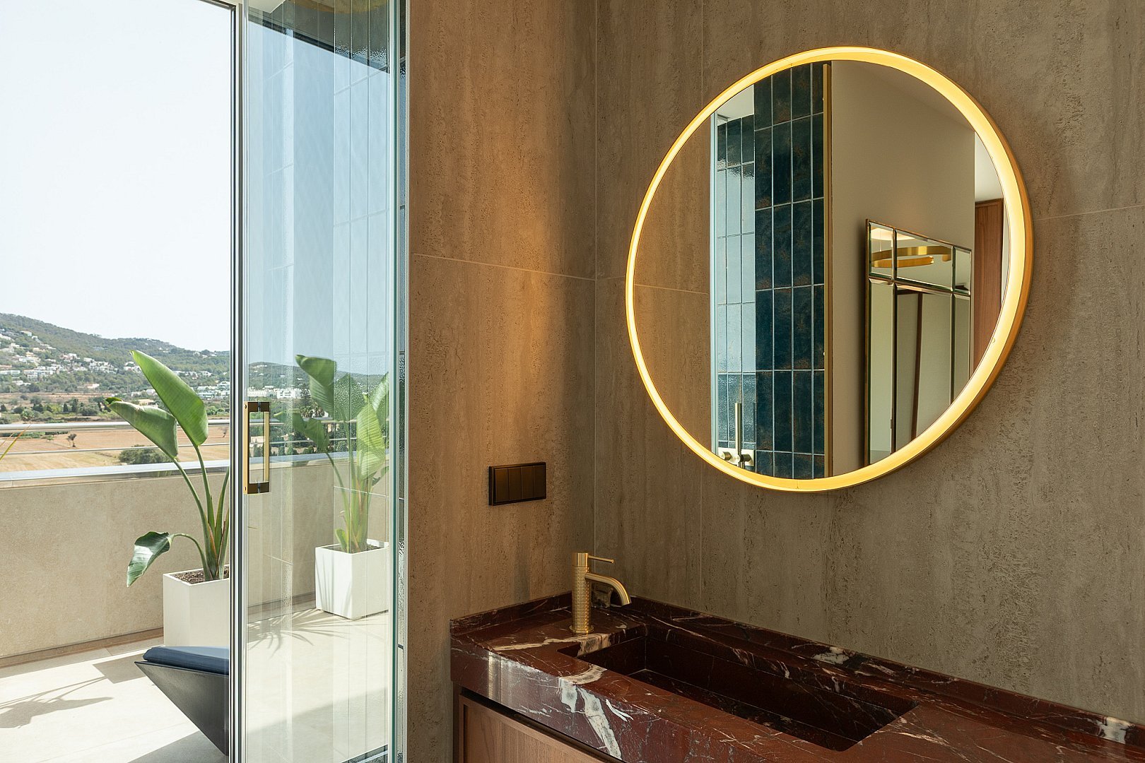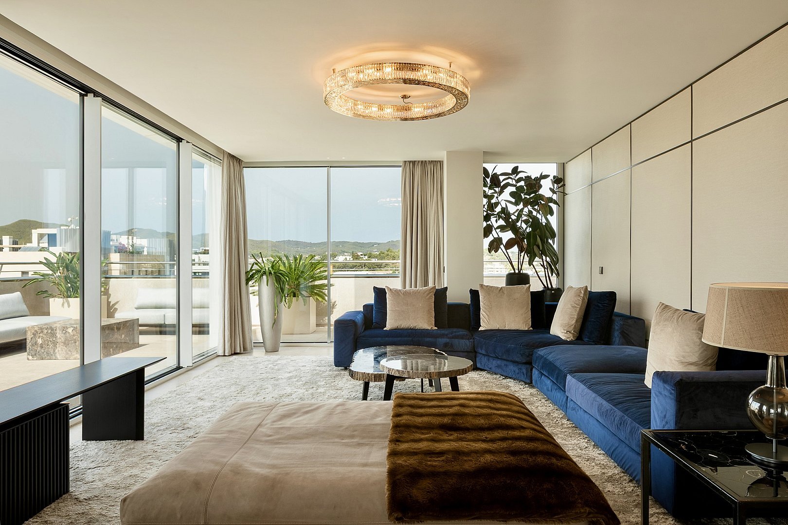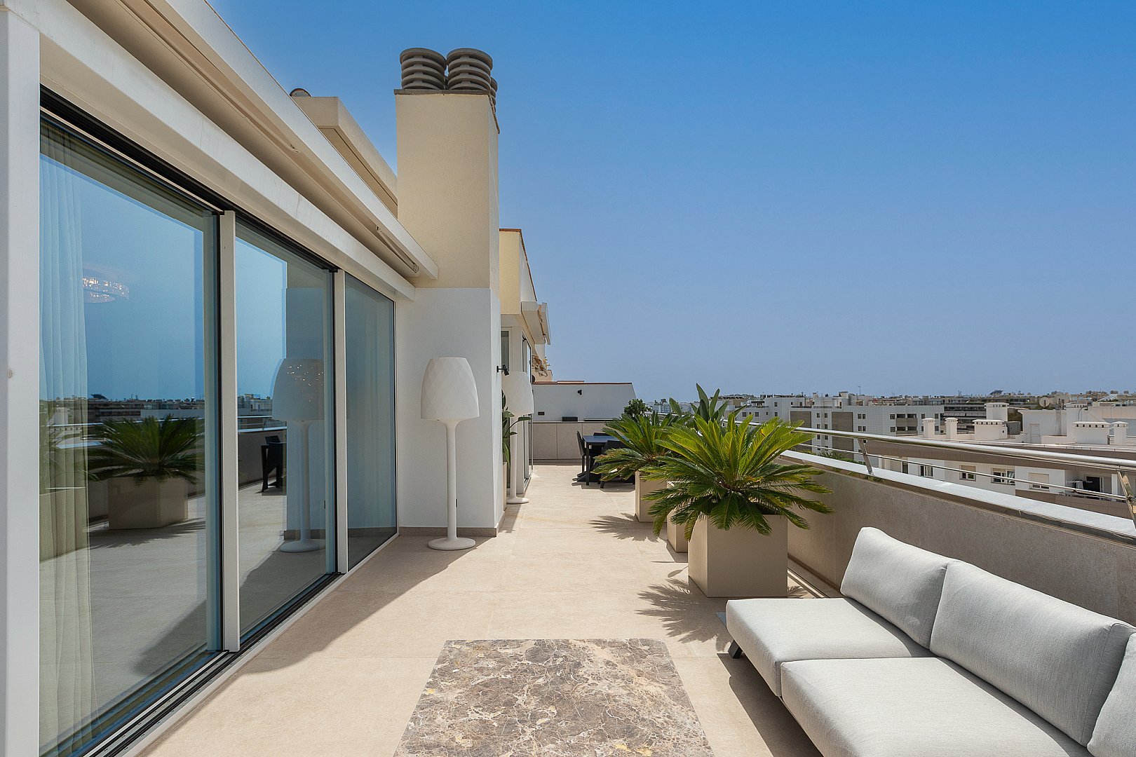 Dieses moderne und elegante Penthouse befindet sich im Gebäude „Portamar in der Marina Botafoch, einer der exklusivsten und begehrtesten Gegenden Ibizas. Es wurde von drei führenden Design Studios, als eine Projekt konzipiert, das Luxus, Komfort und eine privilegierte Aussicht vereint. Zu den Studios gehören „Martinuzzi (Schweiz) - Spezialist für Design, „RGS (A Coruña) - Spezialist für maßgefertigte Tischlerarbeiten und „The Room Studio (Barcelona) - Innenarchitektur und Dekoration – Gewinner mehrerer europäischer Auszeichnungen. Das Penthouse befindet sich iauf der obersten Etage des Gebäudes und bietet sorgfältig renovierte Innenräume und großzügige Terrassen, von denen aus Sie einen 180-Grad-Blick auf das Meer, die umliegenden Berge und die ikonische Altstadt genießen können. Das Penthouse verfügt über drei Schlafzimmer und drei Badezimmer, die Mastersuite verfügt über einen offenen begehbaren Kleiderschrank und ein wunderschön gestaltetes Badezimmer. Von dieser großzügigen Mastersuite aus genießen Sie den Blick auf die umliegenden Berge und haben Zugang zu einer Terrasse mit Blick auf das Meer und die Bucht von Talamanca. Es gibt zwei weitere Gästezimmer, eines davon mit eigenem Bad, von denen aus Sie einen entspannenden Blick ins Grüne genießen können. Das Wohnzimmer ist mit seiner offenen Küche und dem Chill-out-Bereich, von dem aus Sie den Blick auf die berühmte Altstadt haben, ein echter Blickfang. Die Fenster sind Schiebetüren, um das Leben drinnen und draußen optimal zu verbinden. Die Außenküche mit Grill ist ideal, um typische Ibiza-Mittagessen mit Freunden und Familie zu veranstalten. Das Penthouse verfügt über zwei Parkplätze. Ein Gemeinschaftspool und einen Paddle-Tennisplatz gehören ebenfalls zu dem Gebäude. Ein Pluspunkt ist der 24/7-Concierge-Service am Eingang.