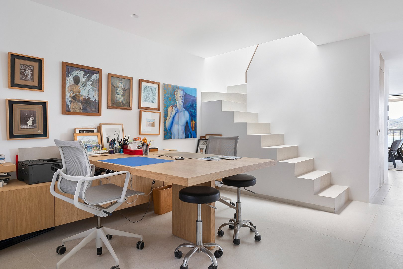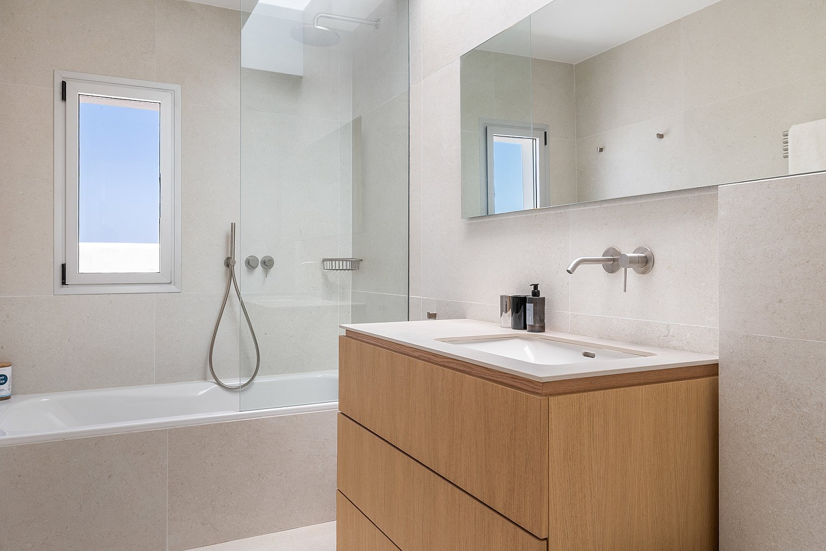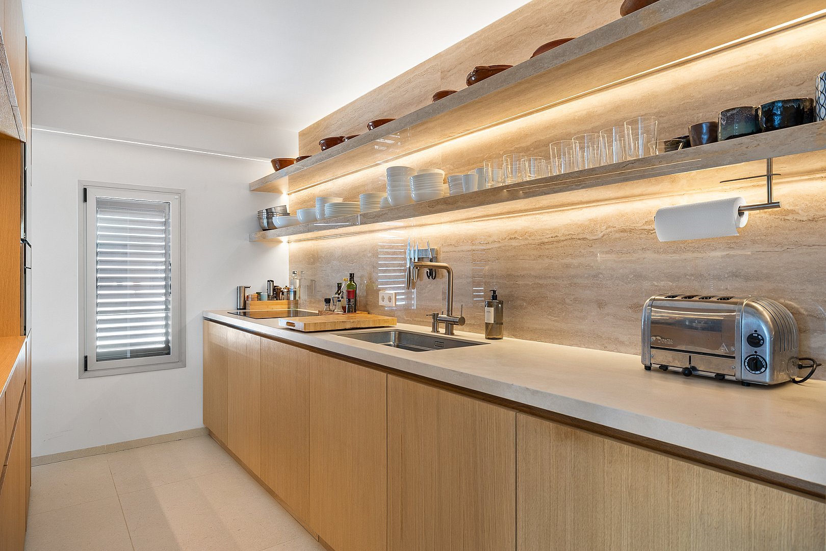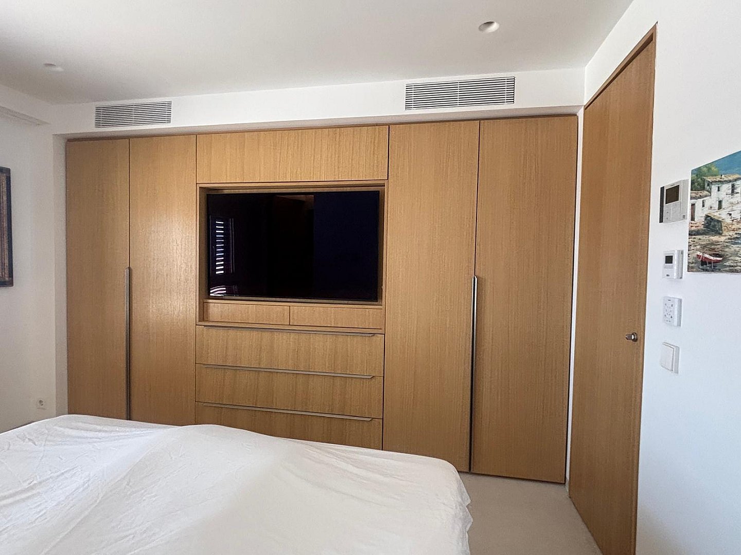 Dieses Apartment befindet sich in einzigartiger und ruhiger Lage direkt am Meer, nahe dem Hafen von San Antonio. Es liegt in der siebten Etage eines gepflegten Gebäudes und vereint Komfort, Qualität und Eleganz auf höchstem Niveau. Ein Highlight ist die großzügige private Dachterrasse mit herrlichem Blick auf das Meer und atemberaubende Sonnenuntergänge. Der großzügige Wohn- und Essbereich überzeugt durch Offenheit und Licht, ideal zum Entspannen oder für stilvolle Zusammenkünfte. Die Küche ist voll ausgestattet unter anderem mit Miele Dampf- und Mikrowellen-Grillöfen – und erfüllt höchste Ansprüche an Funktionalität und Design. Das Apartment verfügt über zwei geräumige Schlafzimmer sowie modernste Haustechnik: Zentrale Klimaanlage auf beiden Etagen für Heizung und Kühlung, sowie Fußbodenheizung auf beiden Ebenen für ganzjährigen Wohnkomfort. Zusätzlich steht ein weiteres Schlafzimmer im achten Stock zur Verfügung, das über ein Bad en Suite mit Badewanne verfügt. Die Lage ist strategisch günstig und dennoch ruhig, in unmittelbarer Nähe zum Strand sowie zu privater und öffentlicher Infrastruktur. Die gepflegte Wohnanlage bietet zudem einen Gemeinschaftspool.