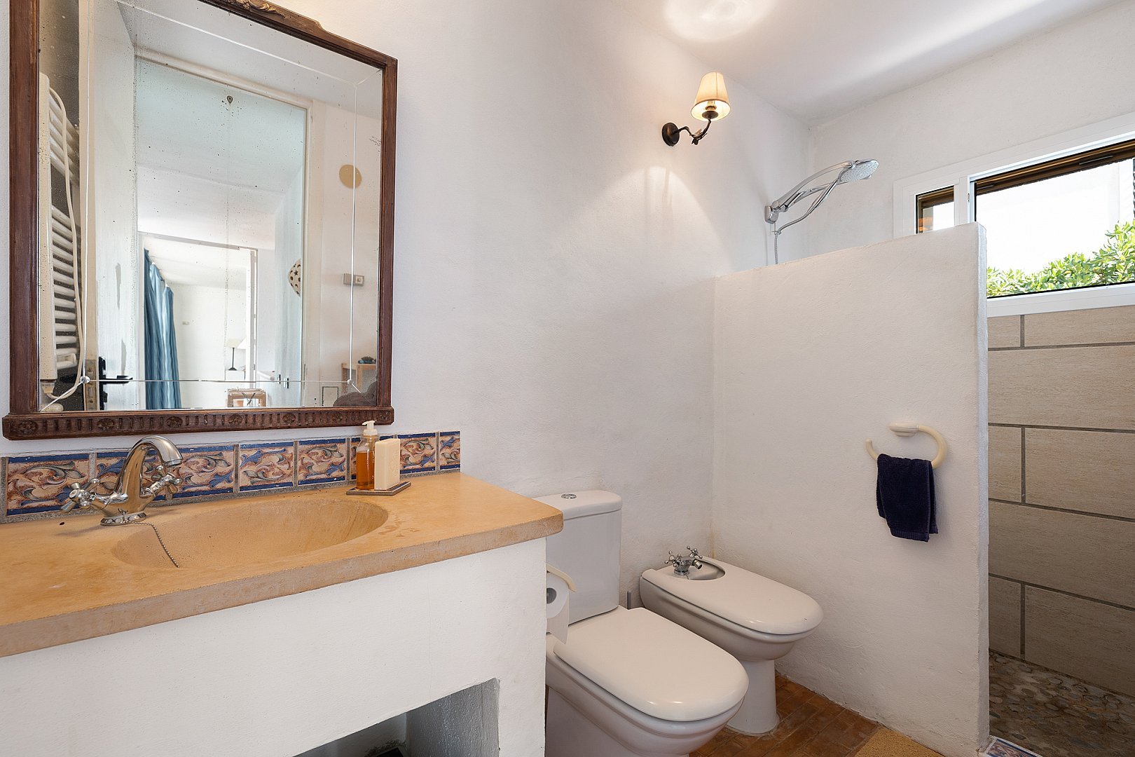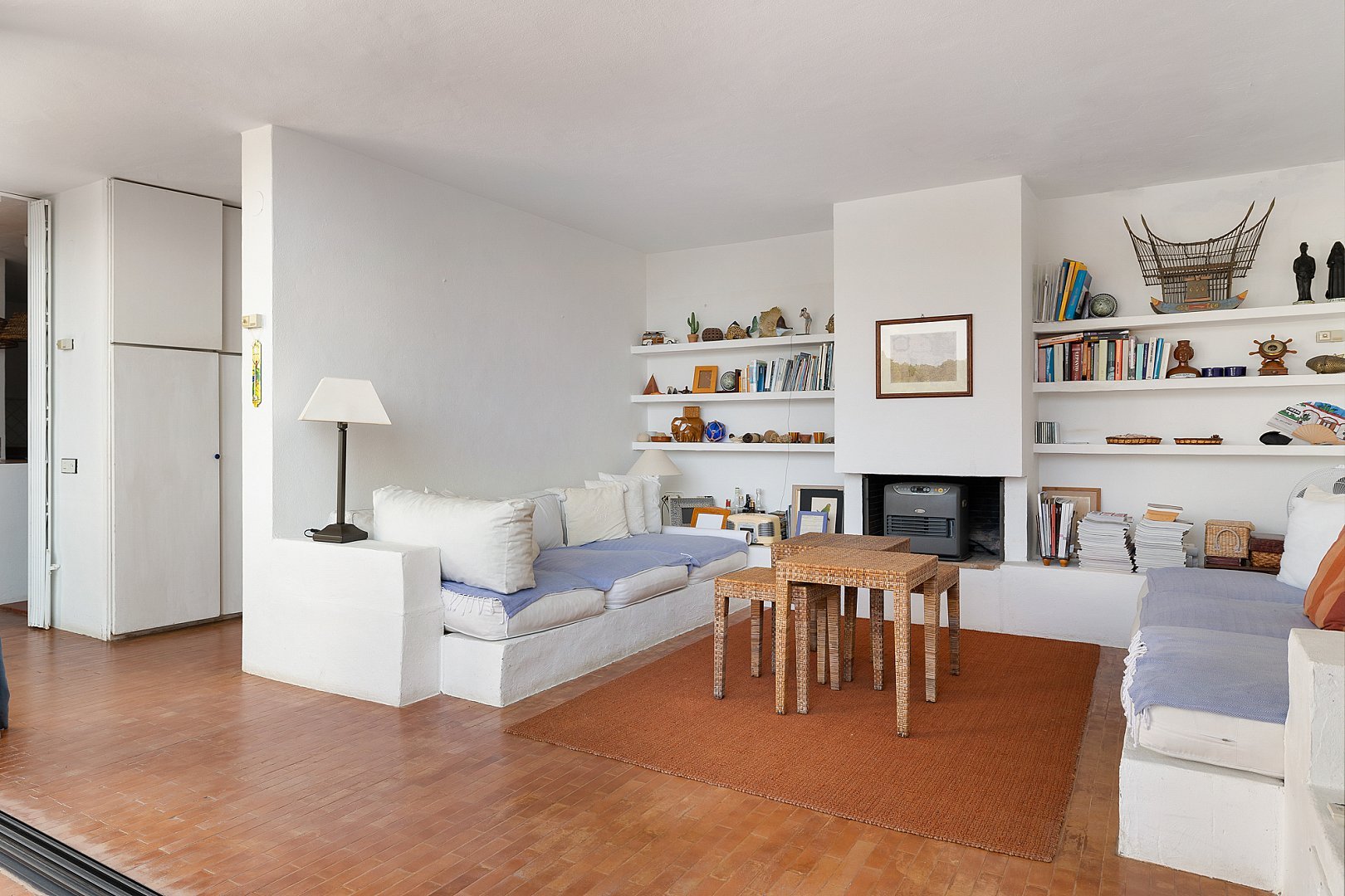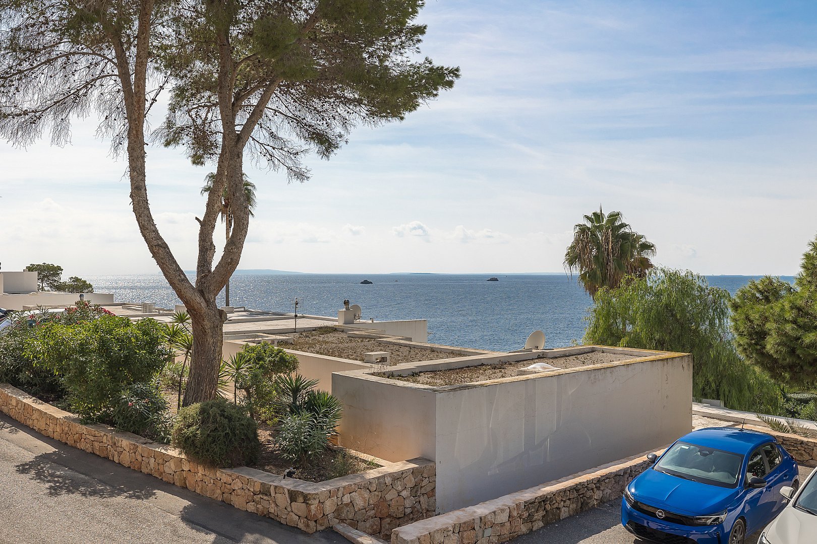 Das charmante Apartment befindet sich in der prestigeträchtigen Wohnanlage Roca Llisa und bietet die perfekte Kombination aus Privatsphäre, Komfort und spektakulärem Meerblick. Mit einem eigenen privaten Eingang fühlt es sich wie ein eigenständiges Haus innerhalb eines exklusiven Wohnkomplexes an und gewährleistet ein hohes Maß an Intimität und Ruhe. Mit einer Wohnfläche von ca. 75 m² verfügt die Immobilie über ein gemütliches Wohnzimmer mit einem Kamin, ideal für das ganze Jahr. Das Wohnzimmer öffnet sich zu einer geräumigen, nach Südwesten ausgerichteten Terrasse von etwa 15 m², die einen atemberaubenden Blick auf das Mittelmeer und die Insel Formentera bietet. Die halb offene Küche ist mit einer praktischen Frühstücksbar ausgestattet, die sich nahtlos in den Wohnbereich integriert. Es bietet zwei helle Schlafzimmer, ein komplettes Badezimmer und mediterrane architektonische Details, die Wärme und Charakter verleihen. Das Apartment ist außerdem mit einer Klimaanlage für warme und kalte Luft ausgestattet, die das ganze Jahr über Komfort bietet. Perfekt gelegen zwischen Ibiza-Stadt und Santa Eulalia und nur 5 Minuten vom Golfplatz entfernt, ist diese Immobilie eine außergewöhnliche Gelegenheit - ob als Hauptwohnsitz oder Ferienhaus - in einer der gefragtesten Gegenden der Insel.