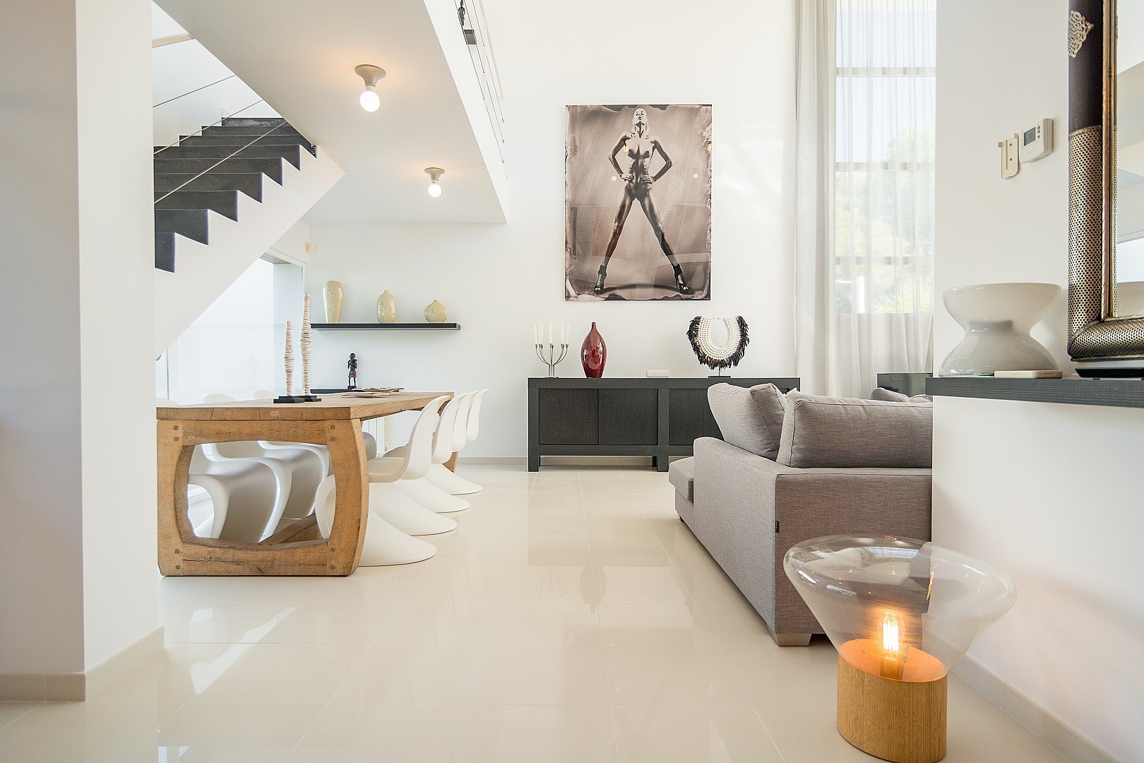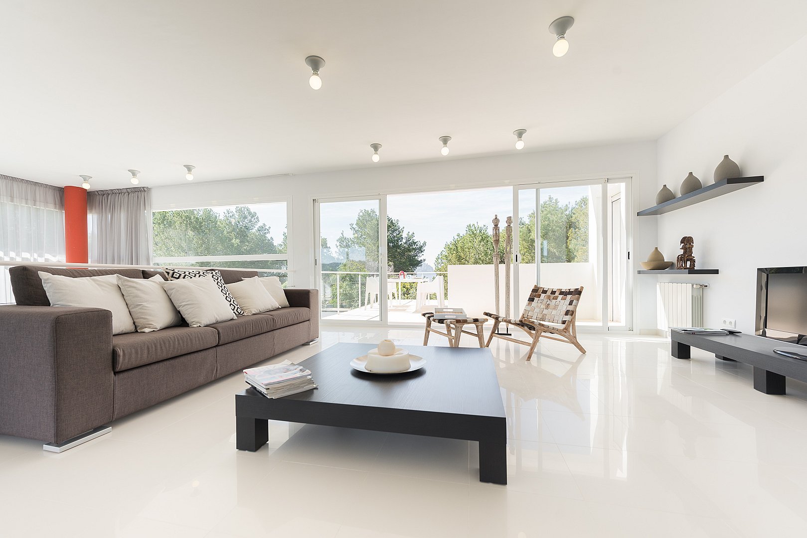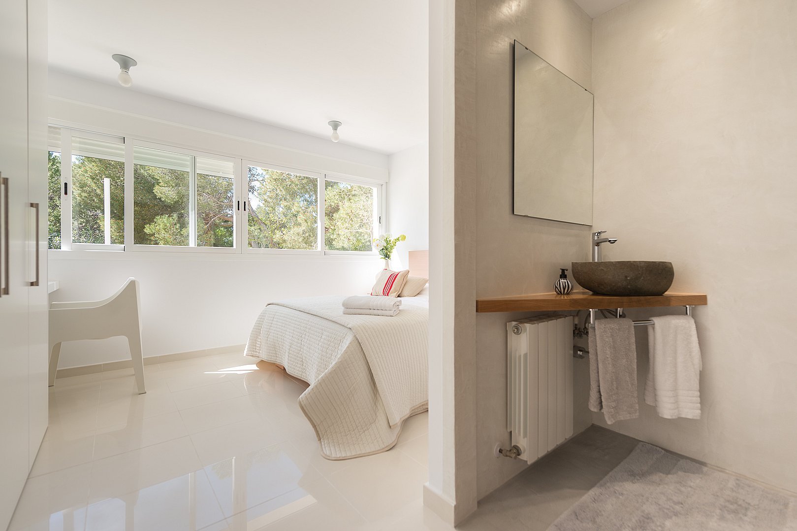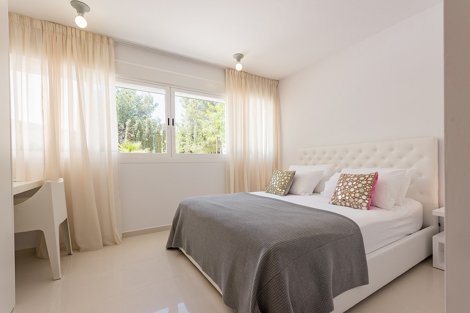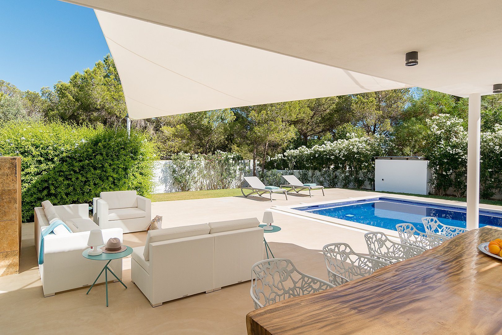 Dieses moderne, neu gebaute Haus befindet sich auf einem komplett eingezäunten Grundstück, mit einem schönen Garten und mehreren Terrassen rund um den Pool, in Strandnähe im südlichen Teil der Cala Vadella. Das Haupthaus besteht aus zwei Ebenen. Das geräumige Wohn-/Esszimmer, die Küche und vier Schlafzimmer befinden sich im Erdgeschoss. Über eine offene Treppe erreicht man das Haupt-Schlafzimmer und einen großen Chill-out-Bereich, von welchem aus man den unteren Wohnbereich überblickt. Von der oberen Etage hat man einen Ausblick auf Es Vedra und die s'Espartar-Inseln. Das separate Gästehaus verfügt über eine eigene Küche, ein Schlafzimmer und zwei Bäder. Eine Garage für drei Autos macht das Haus komplett. Eine zusätzliche Mietlizenz macht die Investition perfekt.