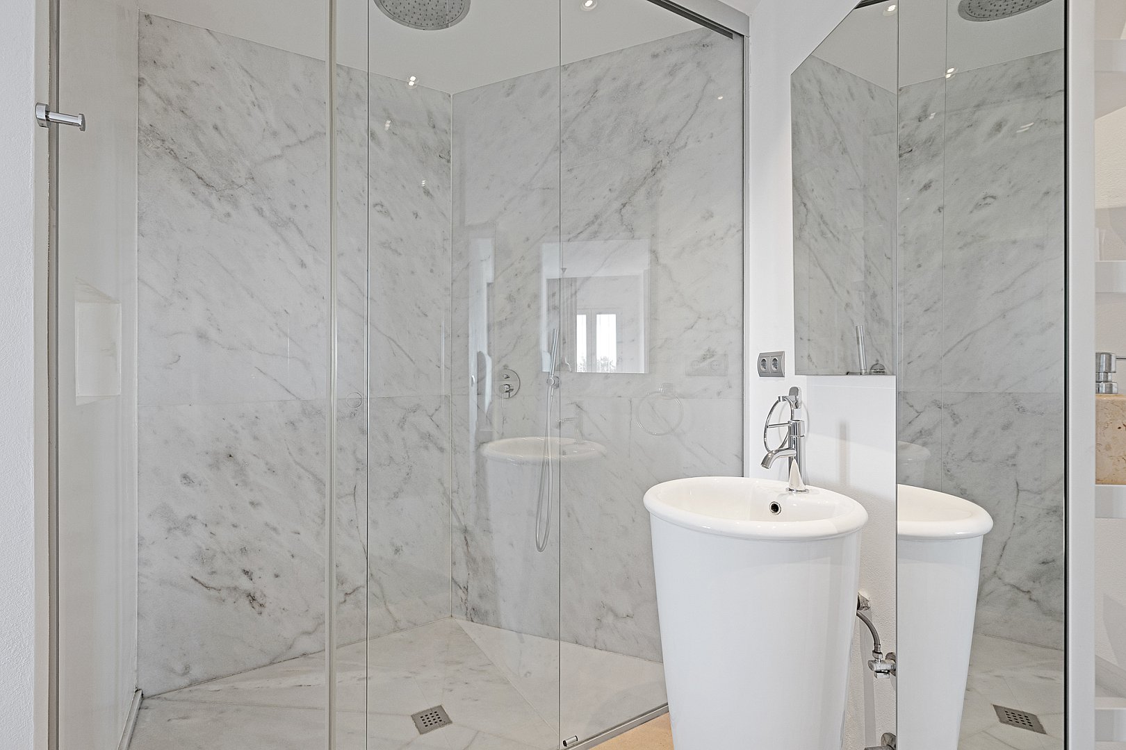 Die moderne Villa befindet sich auf der Spitze eines Hügels und bietet von fast allen Räumen aus einen atemberaubenden Meerblick, der einen bereits beim Betreten beeindruckt. Auf der Eingangsebene befindet sich das großzügige offene Wohnzimmer, das mit Schiebefenstern ausgestattet ist, die das Wohnen im Innen- und Außenbereich und eine offene Küche implementieren. Auf der vorgelagerten Terrasse hat man eine herrliche Aussicht auf das Meer und die vorgelagerten Inseln. Über eine Treppe gelangt man auf die Dachterrasse mit Chillout Bereich; hier kann man die Sonnenuntergänge im Meer genießen. Die Villa verfügt über insgesamt sechs Schlafzimmern mit ensuite Bädern, die alle größzügig geschitten sind und über ausreichend Schrankraum verfügen. Auf der Gästeebene gibt es eine schöne Terrasse, einen Pool und eine überdachte Außenküche, die zum geselligen Beisammensein einlädt. Über eine Treppe gelangt man zu einem Angestelltenzimmer und der Garage. Ein besonderes Highlight ist die offizielle Vermietungslizenz für sechs Schlafzimmer, die diese Immobilie auch als attraktives Investmentobjekt auszeichnet. Durch die Lizenz ist eine lukrative Ferienvermietung möglich – mit der Option, den bestehenden Kundenstamm zu übernehmen und direkt von den laufenden Buchungen zu profitieren. Dies macht die Villa nicht nur zu einem exklusiven Rückzugsort, sondern auch zu einer ertragreichen Kapitalanlage in einer der begehrtesten Lagen der Region.