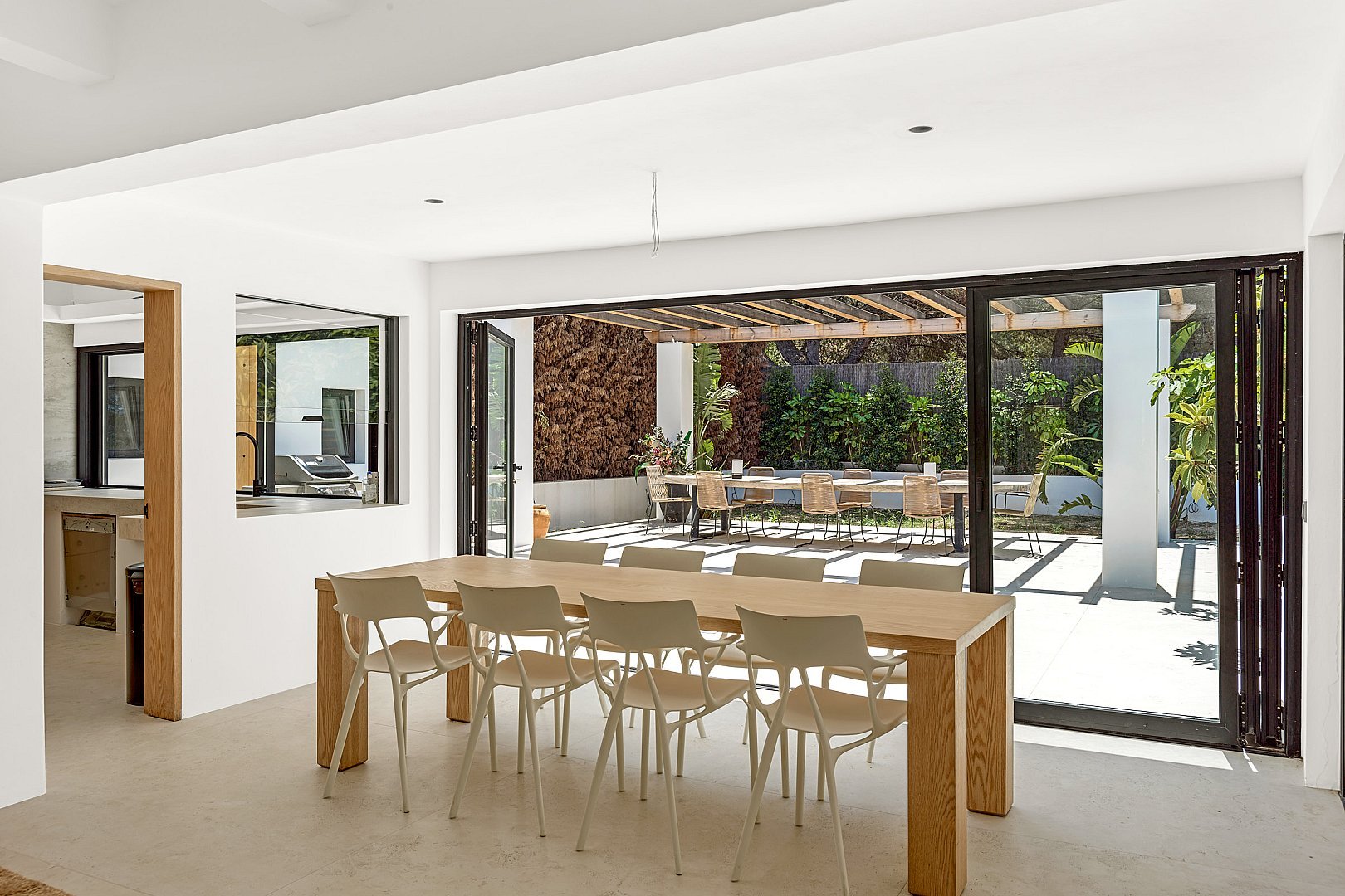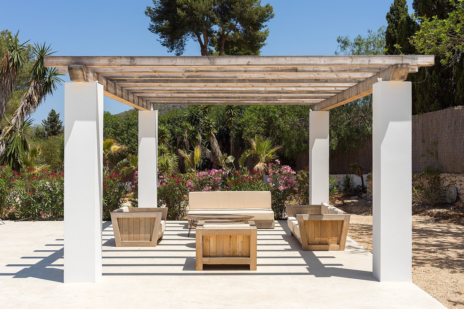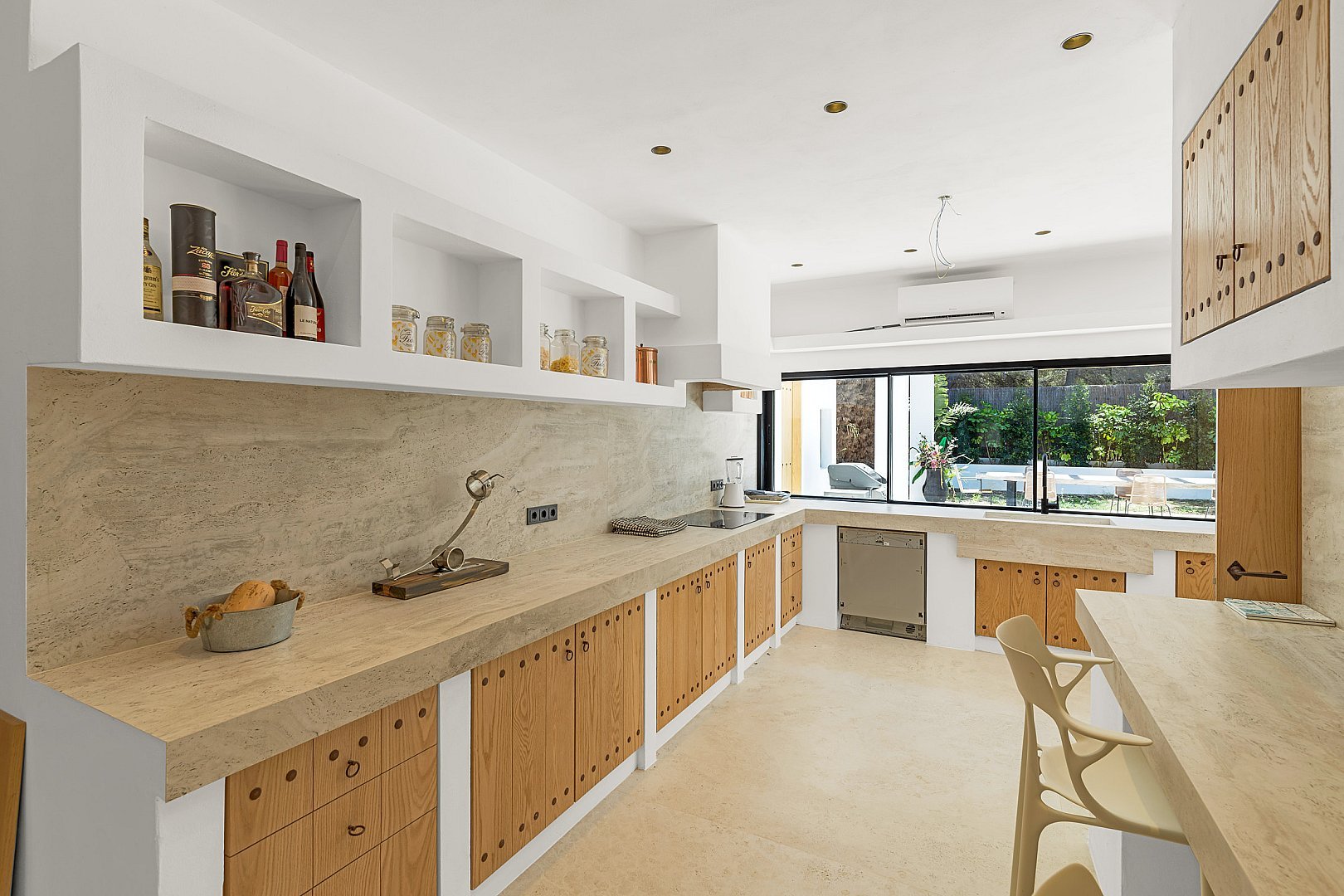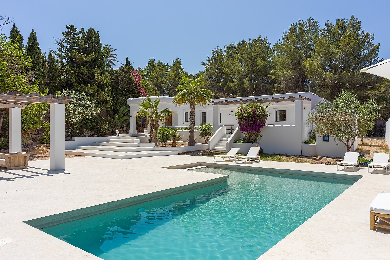 Diese umfassend und hochwertig renovierte Villa vereint zeitgemäße Eleganz mit funktionalem Wohnen auf einer Ebene. Das Haupthaus verfügt über vier großzügige Schlafzimmer mit jeweils eigenem Bad sowie über eine moderne, offen gestaltete Wohnküche mit direktem Zugang zu den Wohn- und Essbereichen. Der Raum ist durch große Fensterflächen lichtdurchflutet und schafft ein angenehmes Wohnambiente. Ein angrenzender, bereits installierter Anbau (inkl. Leitungen und Elektrik) bietet weiteres Potenzial – etwa für eine Gästesuite, ein Büro oder Atelier. Das komplett möblierte Haus wird bezugsfertig angeboten. Die Ausstattung wurde geschmackvoll und hochwertig gewählt. Über eine ruhige Nebenstraße erreichbar, bietet das Anwesen eine private Zufahrt mit überdachtem Doppelcarport. Die großzügigen Terrassenflächen an Vorder- und Rückseite des Hauses schaffen vielfältige Möglichkeiten für Aufenthalte im Freien. Der angelegte Garten mit altem Baumbestand bietet Schatten und Privatsphäre. Das Grundstück ist flach und pflegeleicht und eignet sich ideal für Familien, die ein sofort nutzbares Ferien- oder Dauerwohnsitz suchen – ebenso wie für Kapitalanleger, die eine wertstabile Immobilie in einer der gefragtesten Lagen im ländlichen Ibiza erwerben möchten.