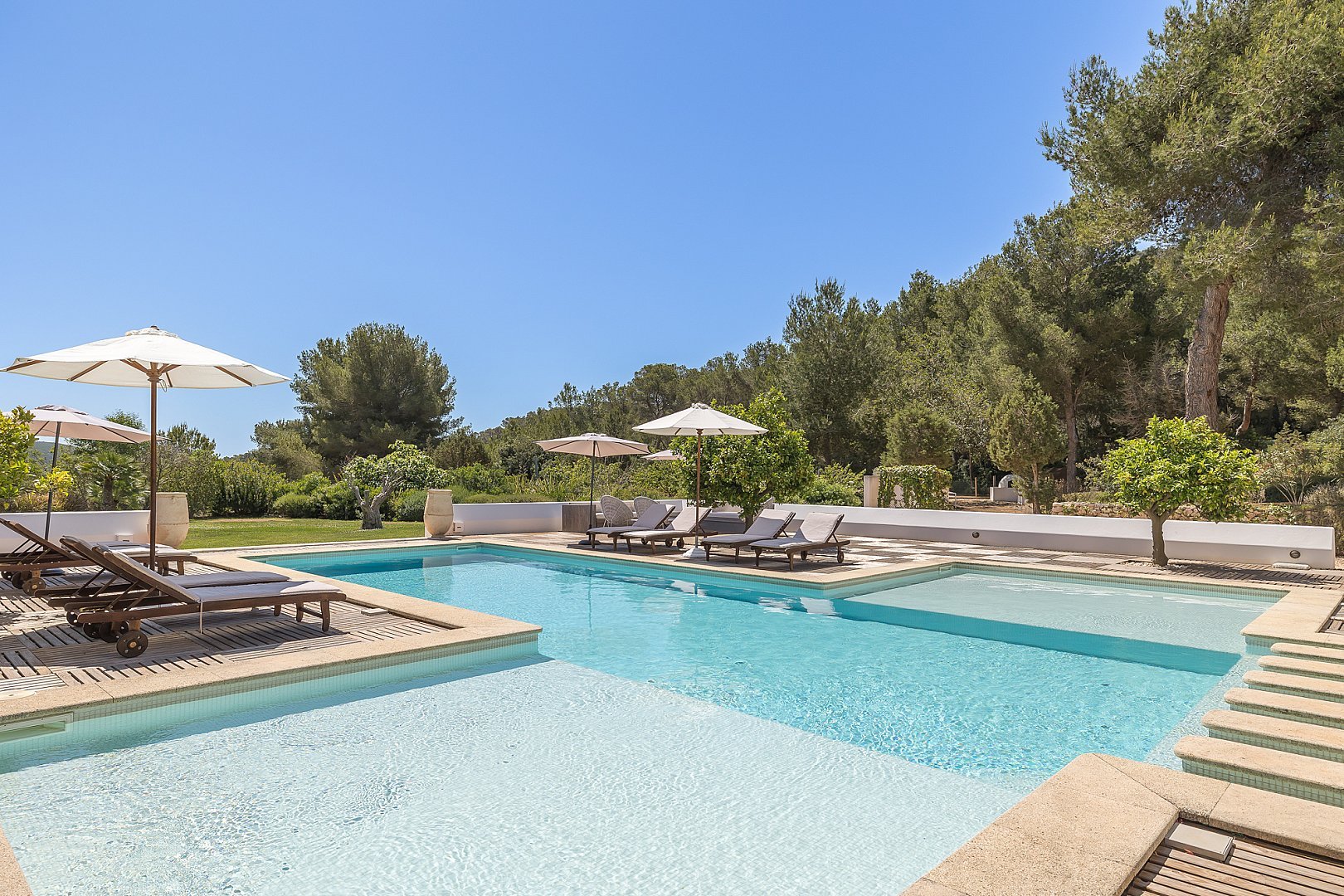 Typ: Finca • Region: Ibiza Stadt und Umgebung • Gesamtfläche: 500 m2 • Terrasse: 1 • Zimmer: 7 • Schlafzimmer: 6 • Badezimmer: 6 • Grundstück: 1,70 ha • Kamin • Schwimmbad • Gäste WC • Heizung: Fußbodenheizung • Bodenbelag: Stein •