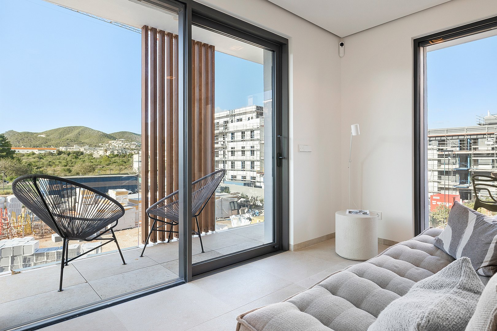 Typ: Apartment • Region: Ibiza Stadt und Umgebung • Baujahr: 2024 • Gesamtfläche: 87 m2 • Zimmer: 3 • Schlafzimmer: 2 • Badezimmer: 2 • Einbauküche • Personenaufzug • Rollstuhlgerecht • Schwimmbad • Heizung: Zentralheizung • Heizung: Fußbodenheizung • Bodenbelag: Fliesen •