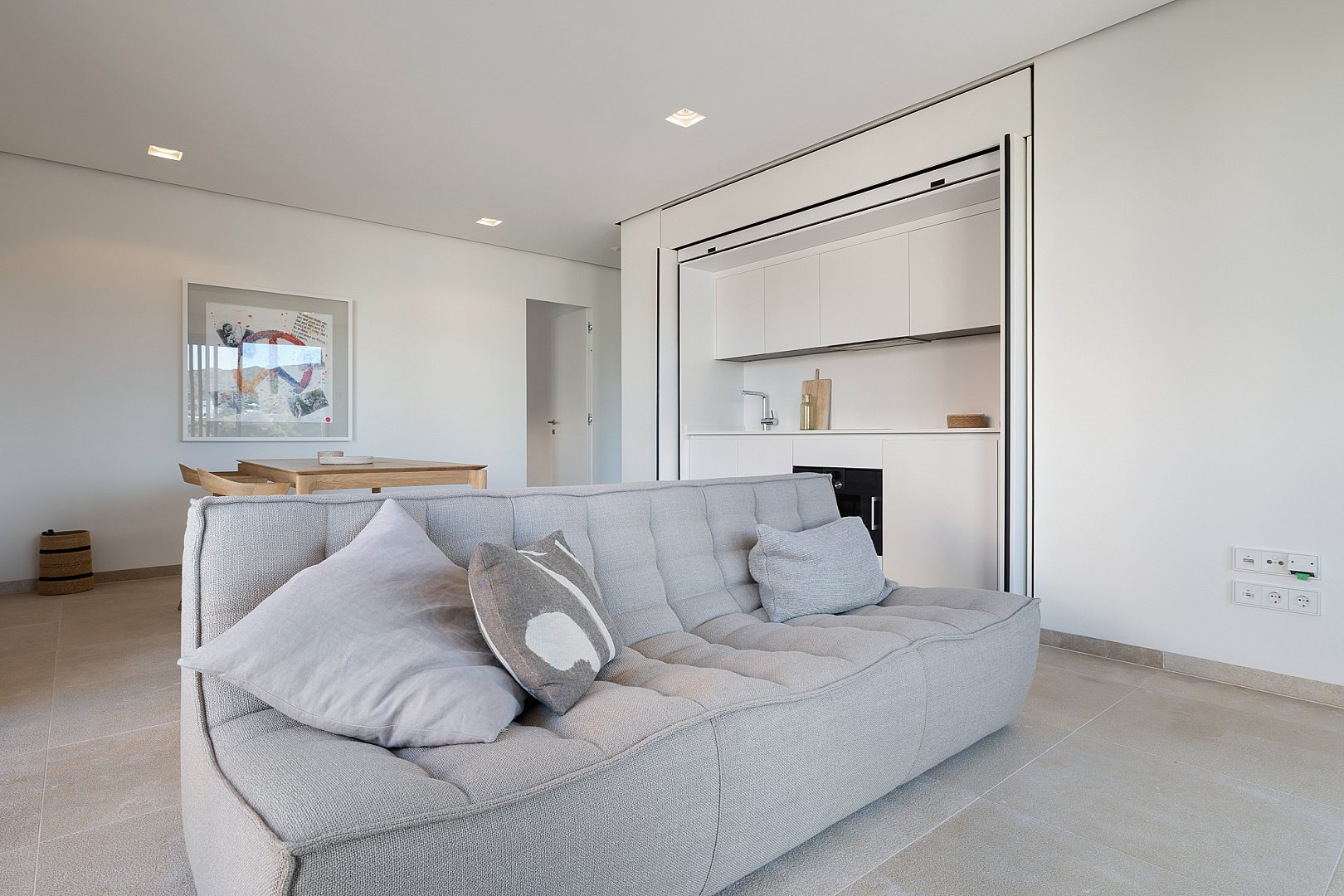 Diese moderne, bezugsfertige Eckwohnung befindet sich im zweiten Stock eines der exklusivsten Wohnkomplexe Ibizas und bietet eine perfekte Mischung aus modernem Design und luxuriösem Komfort. Sie verfügt über zwei geräumige Schlafzimmer und zwei elegante Badezimmer, darunter eine Master-Suite mit eigenem Bad und großzügigen Einbauschränken. Der helle Wohn-Essbereich mit integrierter Designerküche öffnet sich zu einem der beiden sonnigen Balkone der Wohnung, während das Hauptschlafzimmer über einen eigenen privaten Balkon verfügt, der sowohl Licht als auch Privatsphäre bietet. Mit hochwertigen Materialien durchgehend ausgestattet, bietet die Wohnung eine stilvolle, komfortable und einladende Wohnumgebung. Sie verfügt zudem über ein nachhaltiges Fußbodenheizungs- und Kühlsystem, das ganzjährigen Komfort gewährleistet, und beinhaltet einen fest zugewiesenen Parkplatz im Gebäude für zusätzlichen Komfort. Das Gebäude bietet eine vollständige Palette außergewöhnlicher Annehmlichkeiten, darunter einen 24/7 Concierge-Service, ein Spa mit einem natürlichen Wasserfall, einen Innenpool im Strandstil, eine Dampfsauna, ein Outdoor-Fitnessstudio und landschaftlich gestaltete Chill-out-Bereiche. Die Bewohner genießen außerdem die kostenlose Nutzung der Boote des RIB Clubs, privater E-Bikes und direkten Zugang zu einem renommierten mediterranen Restaurant. Ein wunderschön gestalteter Garten mit Grill, handgefertigtem Holztisch und stimmungsvoller Beleuchtung vervollständigt die Resort-Atmosphäre. Nur wenige Minuten von Playa d’en Bossa entfernt, vereint diese Wohnung modernen Komfort, innovatives Design und bequemen Zugang zu den Stränden Ibizas, dem Nachtleben und erstklassigen Beachclubs, was sie zu einer herausragenden privaten Residenz oder Investitionsmöglichkeit macht.