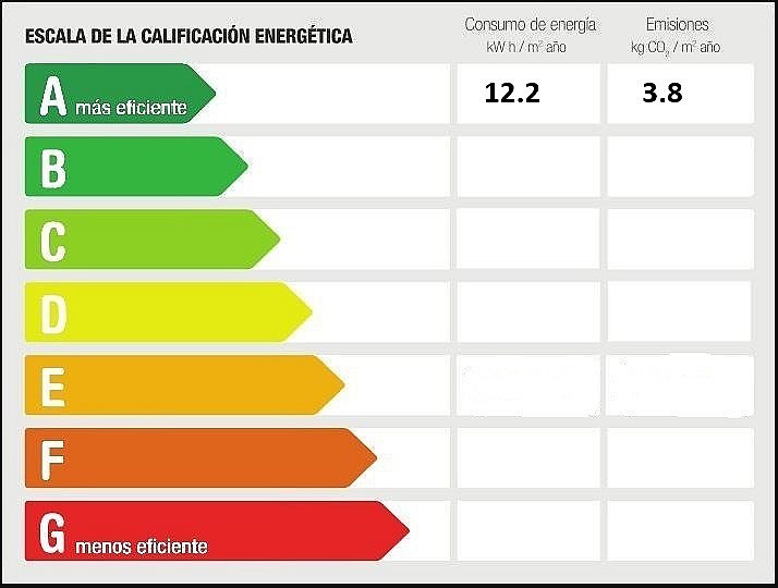 Baujahr 2024 · Energieverbrauchskennwert 12.2 kWh/(m2*a) · CO2-Emission 3.8 kg/m2 · CO2 Emissionsklasse A · Energieeffizienzklasse A
