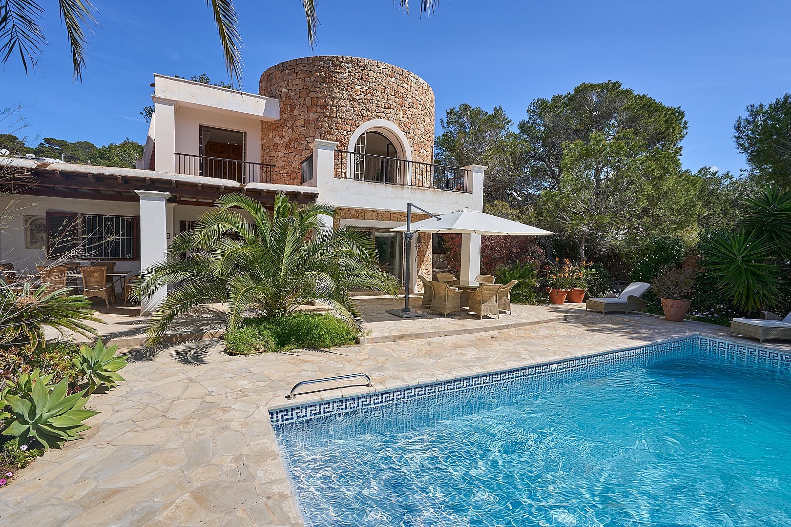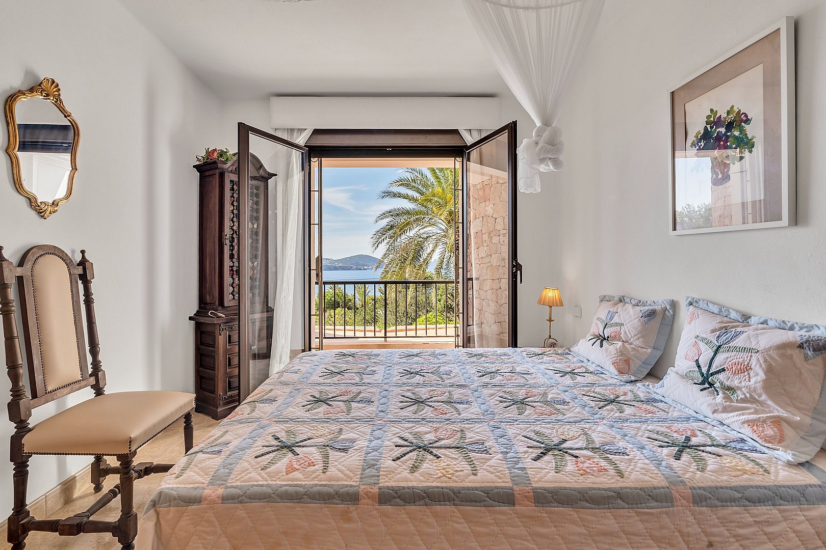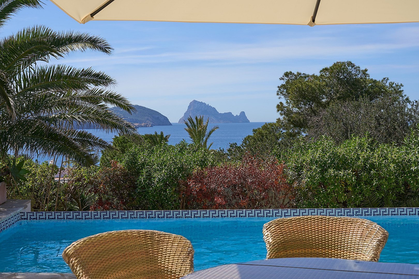Diese Immobilie befindet sich in einer unschlagbaren Lage, nur wenige Schritte von einer fantastischen Bucht mit kristallklarem Wasser entfernt. Umgeben von einem wunderschönen mediterranen Garten, bietet die Immobilie einen beeindruckenden Pool, von dem aus man fast greifbare Ausblicke auf das Meer genießen kann. Das Haus ist auf zwei Etagen verteilt. Im Erdgeschoss befinden sich ein geräumiges Wohn-Esszimmer mit offener Küche, zwei Schlafzimmer und zwei Badezimmer, eines davon en suite. In der oberen Etage befinden sich zwei weitere geräumige Schlafzimmer mit Zugang zu Terrassen und beeindruckendem Blick auf das Meer und Es Vedrà, sowie zwei komplette Badezimmer. Das Solarium ist zugänglich und bietet eine hervorragende Gelegenheit, als einzigartiger Aussichtspunkt dekoriert zu werden. Das Haus verfügt auch über eine geschlossene Garage für ein Fahrzeug und einen externen Abstellraum. Eine Immobilie mit vielen Möglichkeiten, gelegen in einer magischen Umgebung.