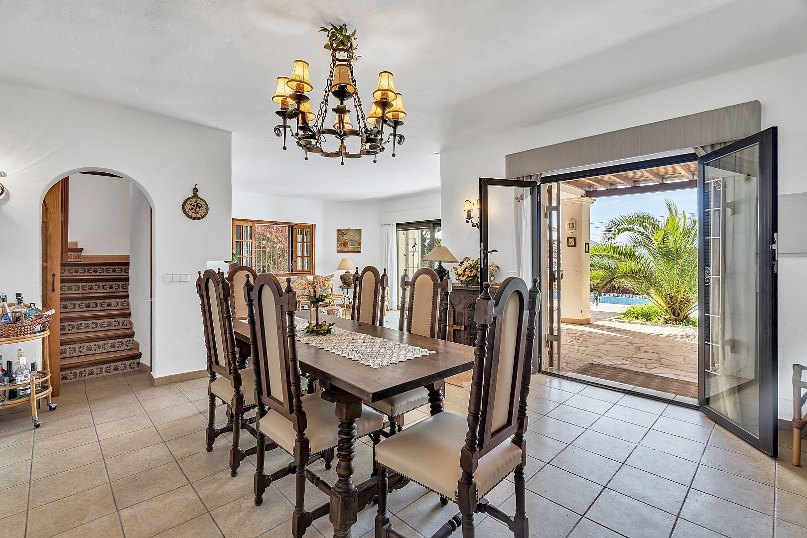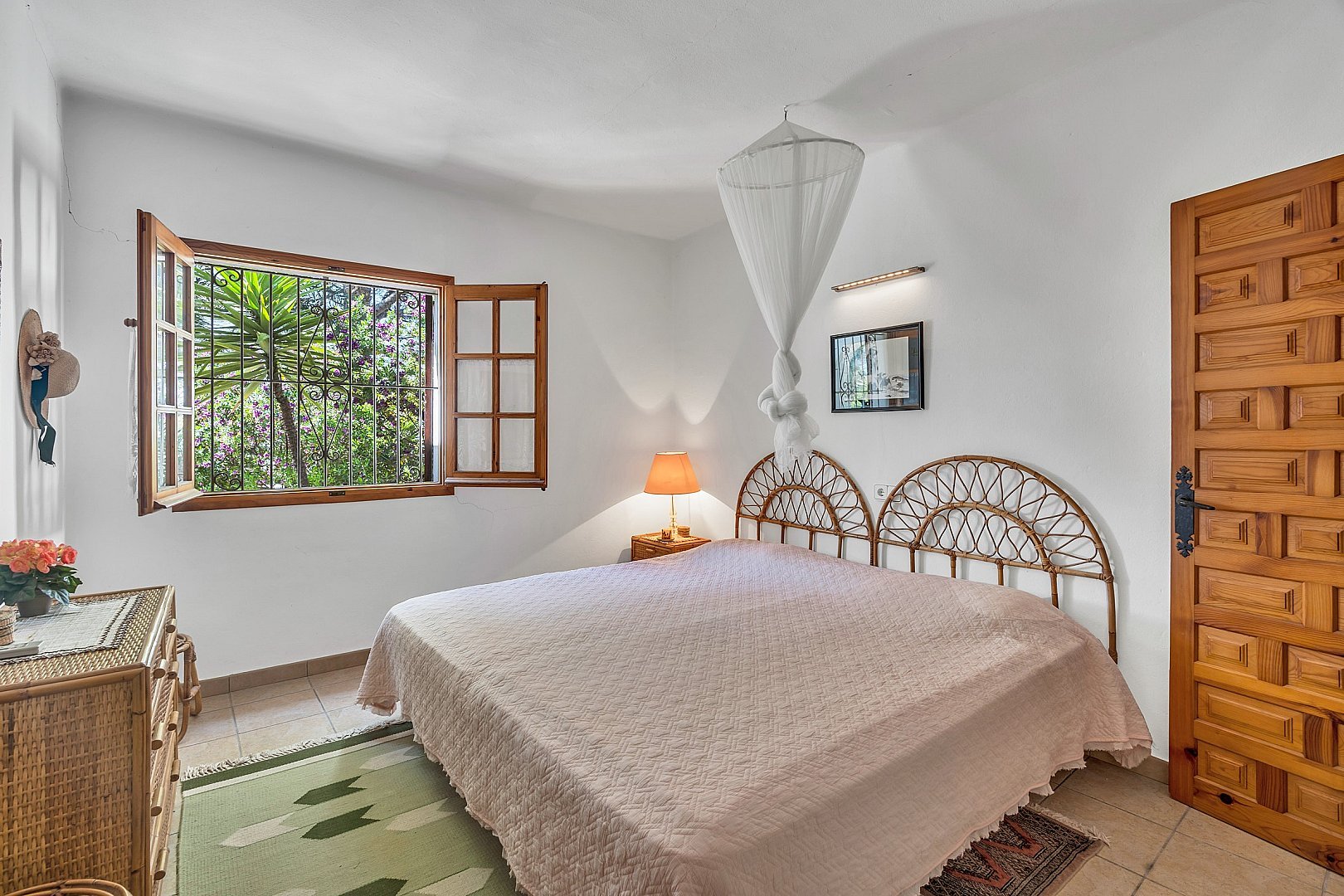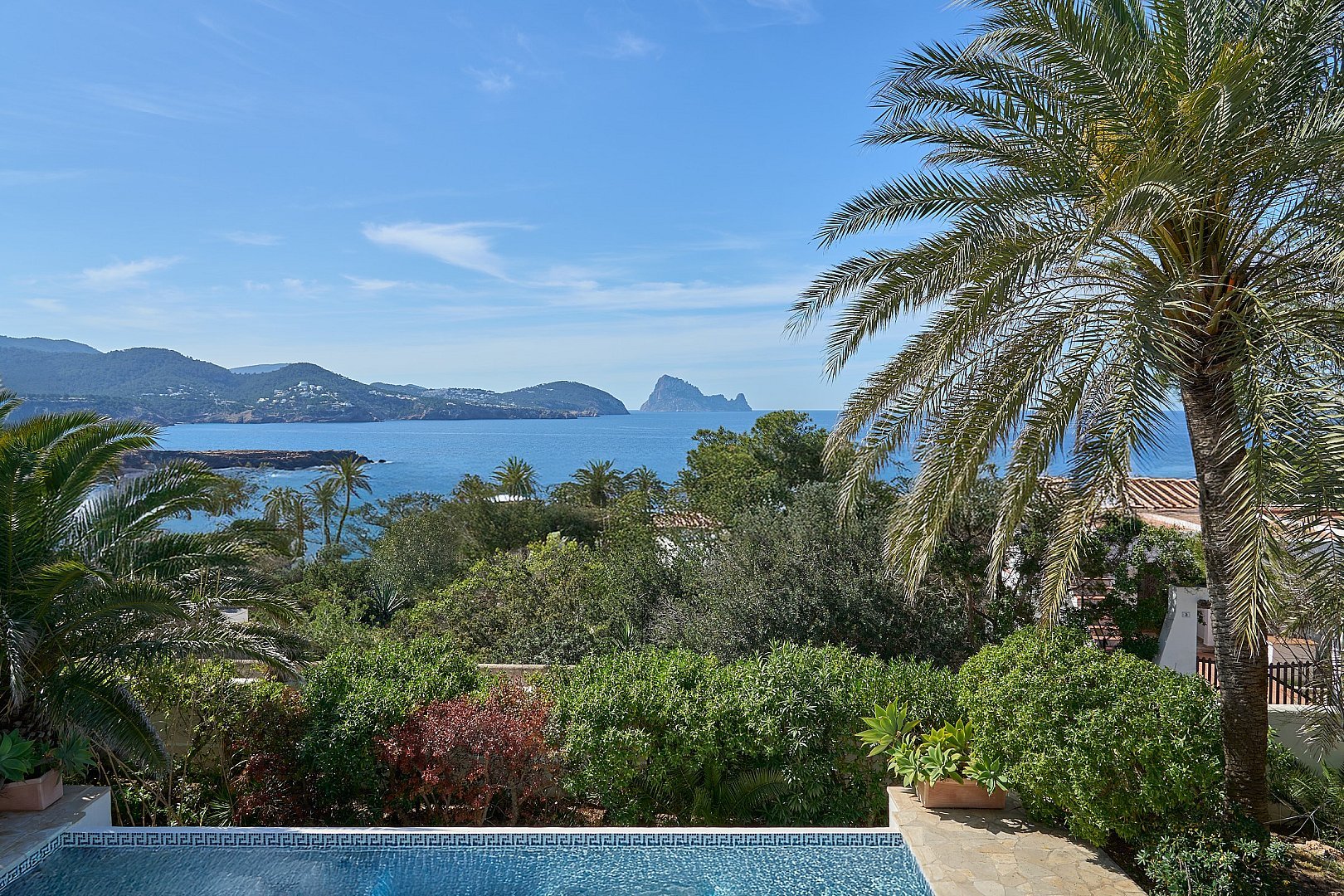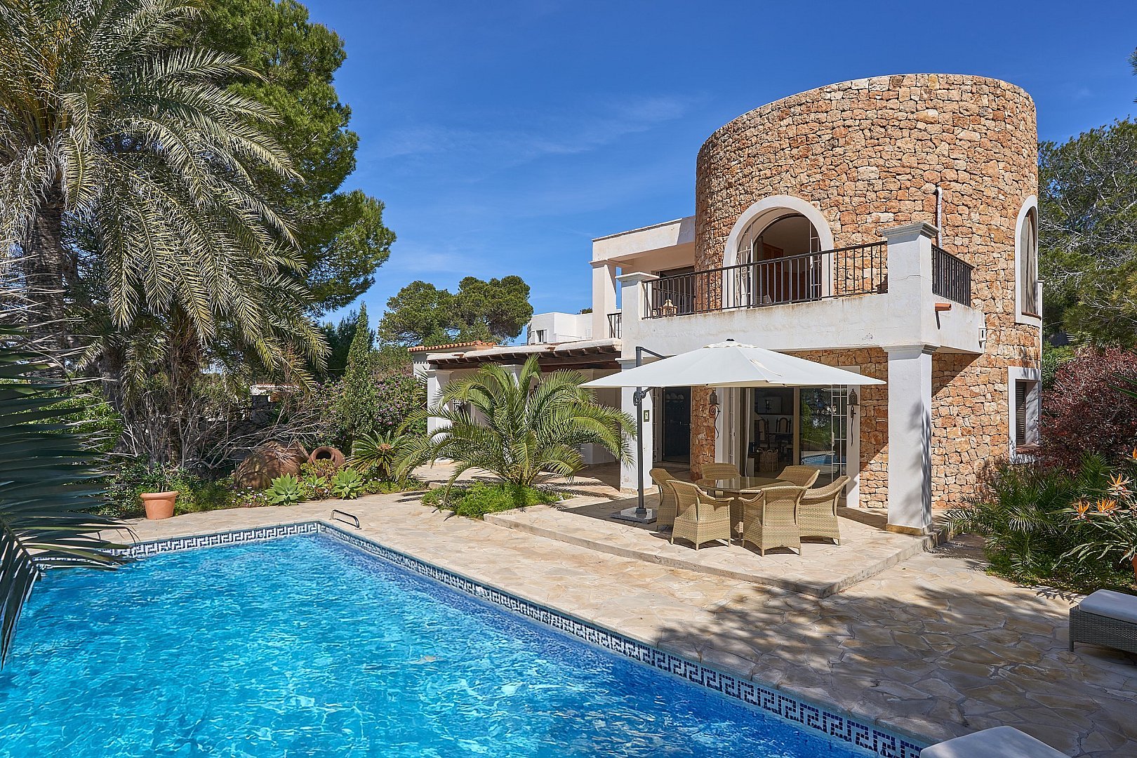 Diese Immobilie befindet sich in einer unschlagbaren Lage, nur wenige Schritte von einer fantastischen Bucht mit kristallklarem Wasser entfernt. Umgeben von einem wunderschönen mediterranen Garten, bietet die Immobilie einen beeindruckenden Pool, von dem aus man fast greifbare Ausblicke auf das Meer genießen kann. Das Haus ist auf zwei Etagen verteilt. Im Erdgeschoss befinden sich ein geräumiges Wohn-Esszimmer mit offener Küche, zwei Schlafzimmer und zwei Badezimmer, eines davon en suite. In der oberen Etage befinden sich zwei weitere geräumige Schlafzimmer mit Zugang zu Terrassen und beeindruckendem Blick auf das Meer und Es Vedrà, sowie zwei komplette Badezimmer. Das Solarium ist zugänglich und bietet eine hervorragende Gelegenheit, als einzigartiger Aussichtspunkt dekoriert zu werden. Das Haus verfügt auch über eine geschlossene Garage für ein Fahrzeug und einen externen Abstellraum. Eine Immobilie mit vielen Möglichkeiten, gelegen in einer magischen Umgebung.