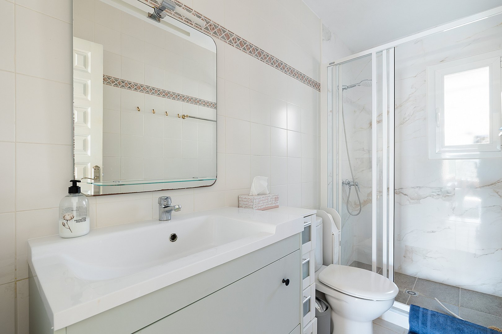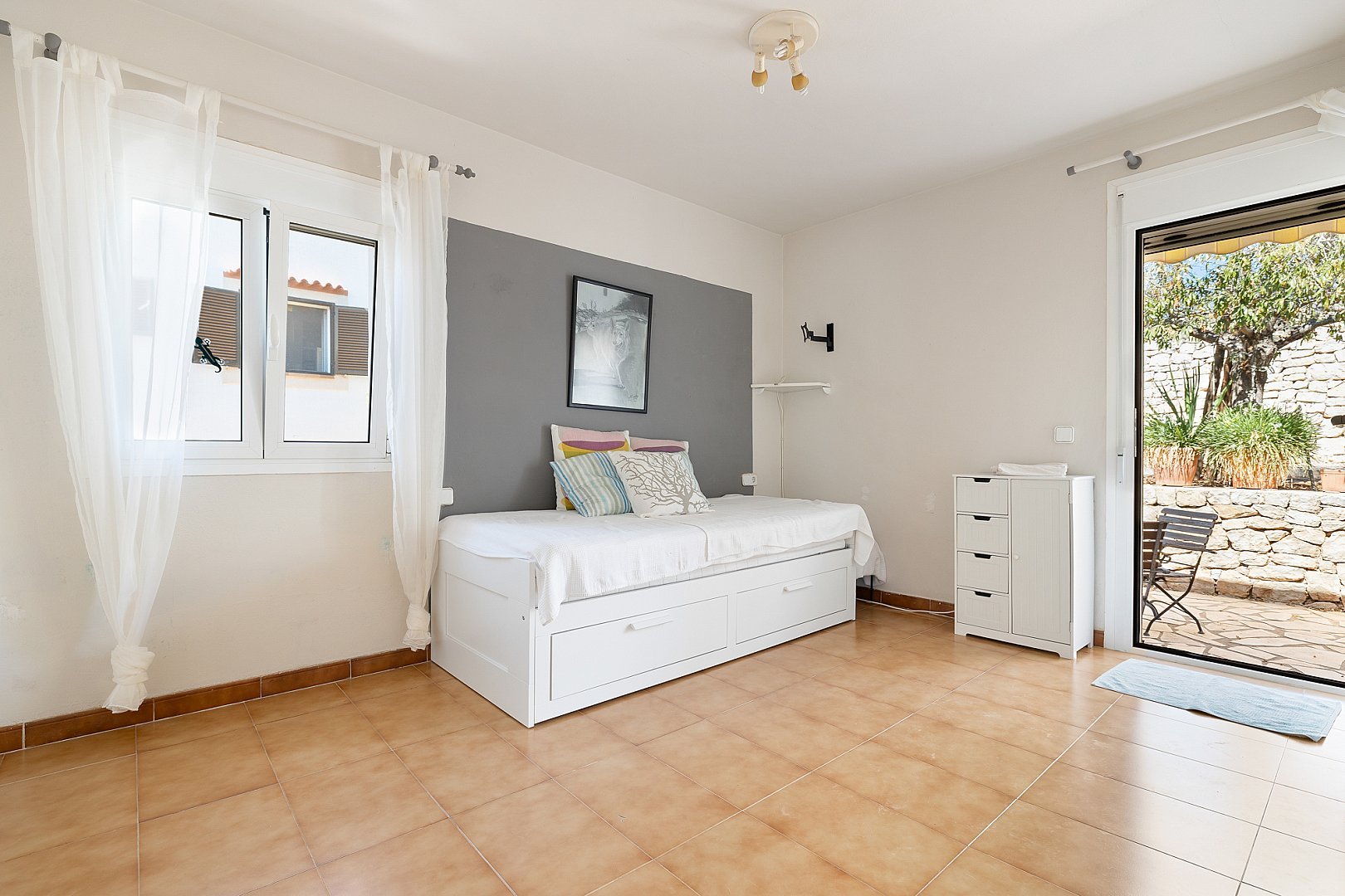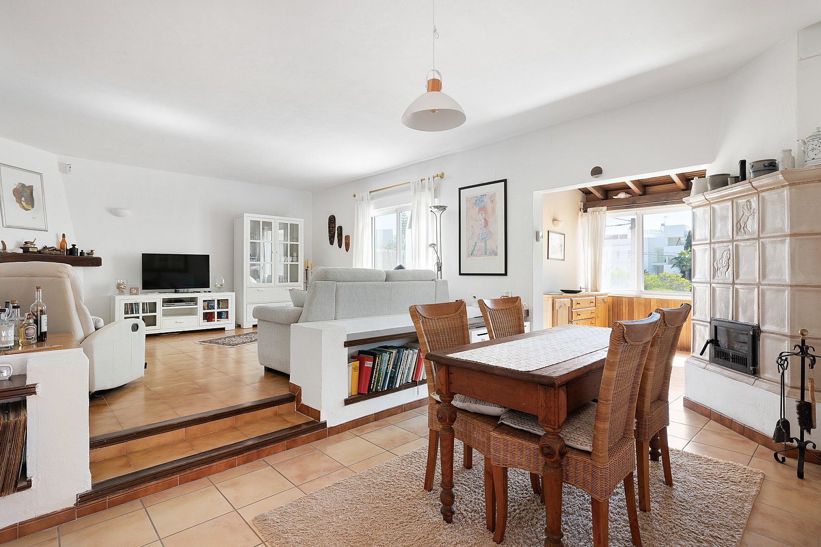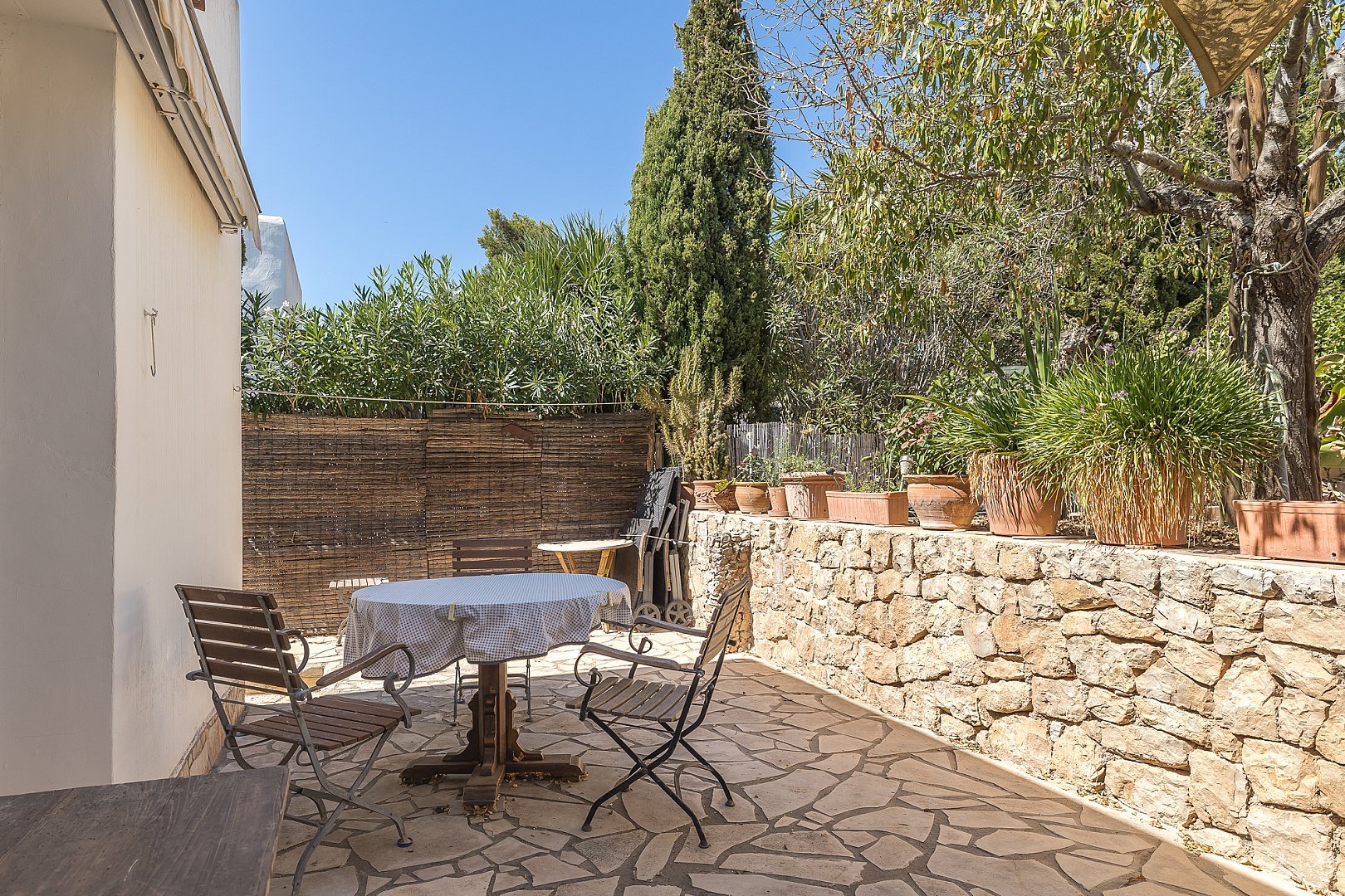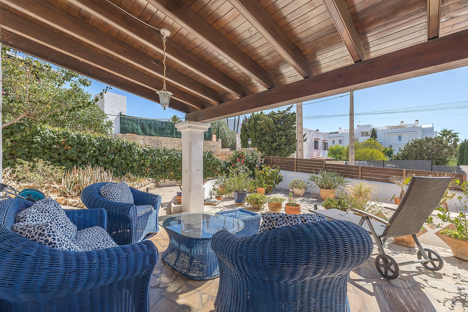 Nur wenige Gehminuten vom Strand entfernt, in einer ruhigen Straße von Cala Llenya, liegt dieses gepflegte Haus mit mediterranem Flair und vielseitigem Raumangebot. Das Anwesen erstreckt sich über zwei Ebenen und ist von Garten und Terrassen umgeben – ideal für alle, die auf Ibiza Ruhe, Nähe zur Natur und Flexibilität in der Nutzung suchen. Im Erdgeschoss befindet sich eine separate Wohneinheit mit Wohnzimmer, Küche, Schlafzimmer, Bad sowie einem Esszimmer. Eine überdachte Terrasse erweitert den Wohnbereich ins Freie. Die Hauptwohnung im Obergeschoss überzeugt mit einem großzügigen, offenen Wohnbereich mit Kamin, Essplatz und Küche. Zwei Schlafzimmer und zwei Bäder, eines davon en suite, bieten Komfort für den Alltag oder Ferienaufenthalte. Vom Wohnbereich gelangt man direkt auf die sonnige Terrasse mit Gartenanschluss. Besondere Extras sind eine eigene Petanque-Bahn, eine große Werkstatt mit Umnutzungspotenzial, ein Carport sowie weitere Stellplätze für bis zu drei Fahrzeuge. Über eine Außentreppe besteht zudem Zugang zur Dachfläche, die sich hervorragend zur Gestaltung einer Dachterrasse eignet. Dieses Haus bietet eine gelungene Kombination aus Privatsphäre, Strandnähe und vielfältigen Nutzungsmöglichkeiten – sei es als Dauerwohnsitz, Ferienhaus oder Investmentobjekt auf Ibiza.