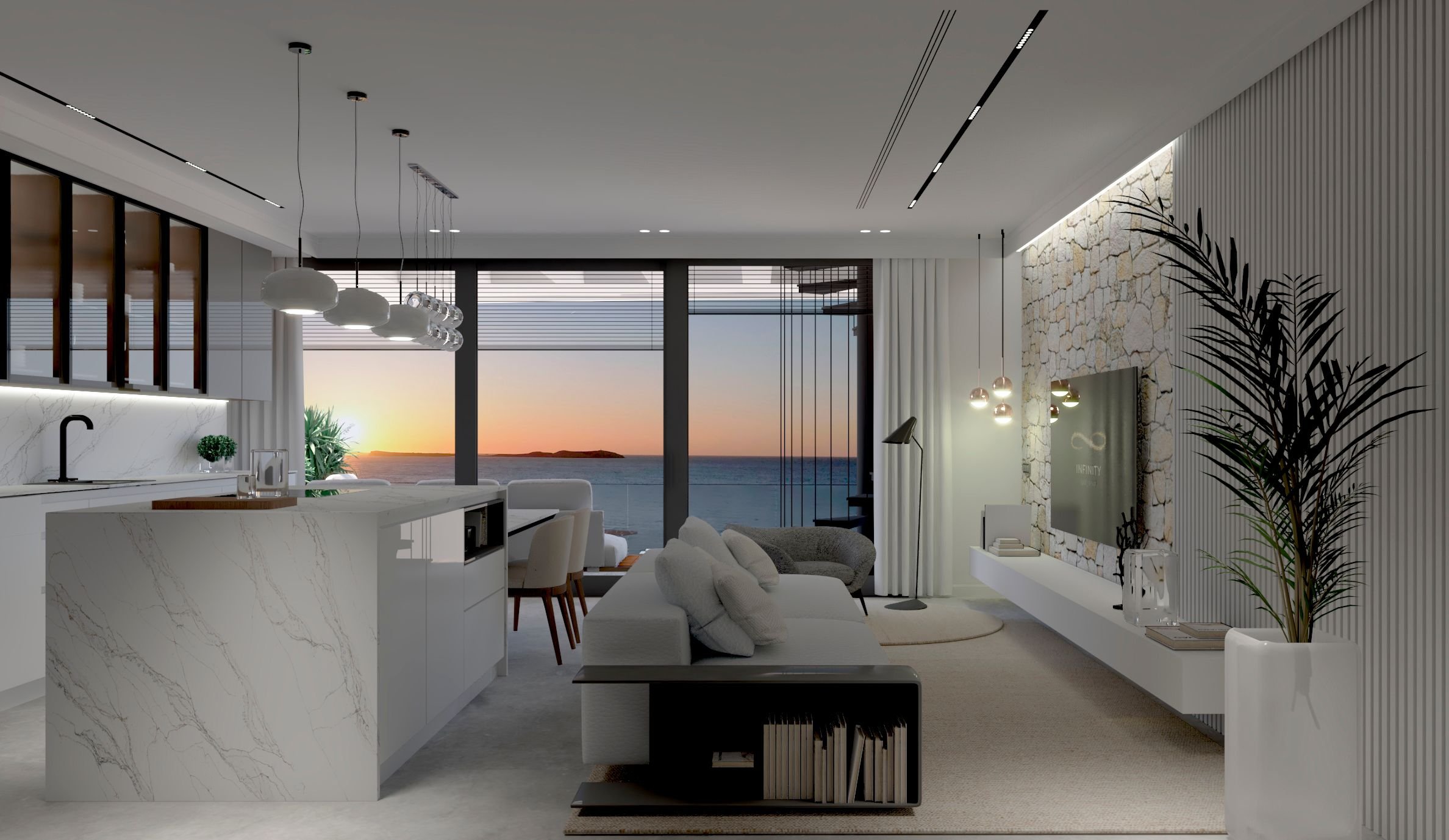 Located frontline to the sea on Ibiza’s west coast, this exclusive development enjoys a privileged setting where the Mediterranean, nature and tranquillity come together to create a unique lifestyle just a few steps from the beach.