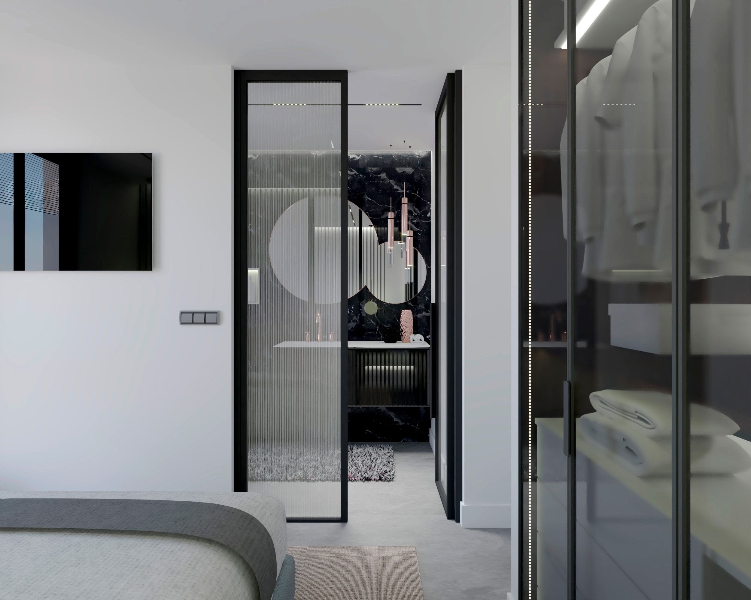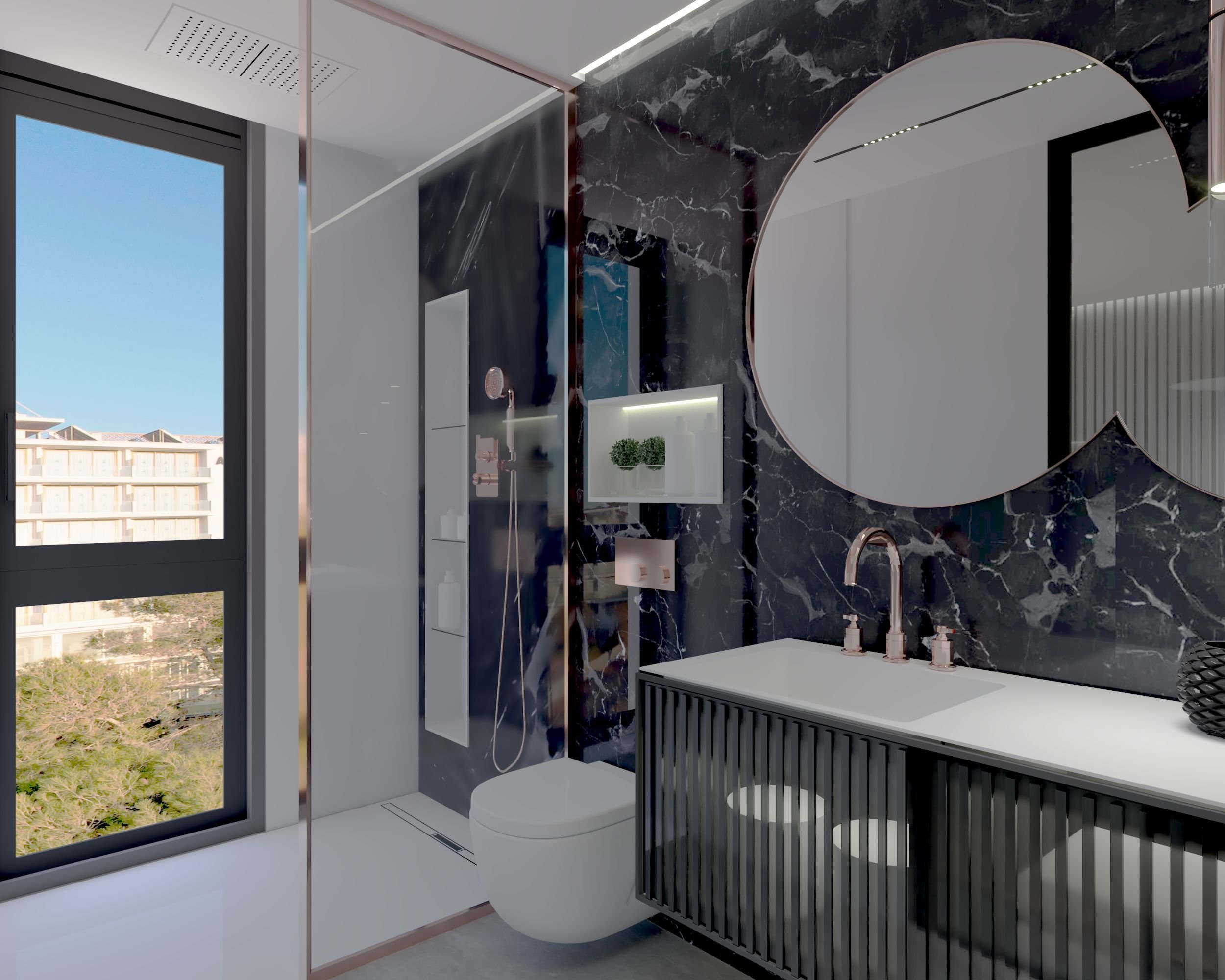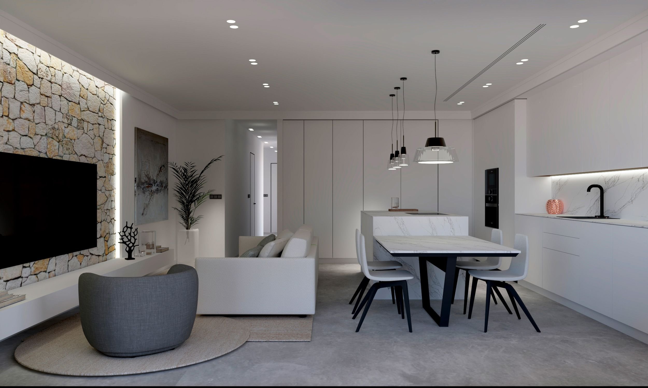 The interior design blends contemporary aesthetics with Mediterranean essence, featuring natural materials, soft tones and carefully selected finishes that provide elegance and warmth.