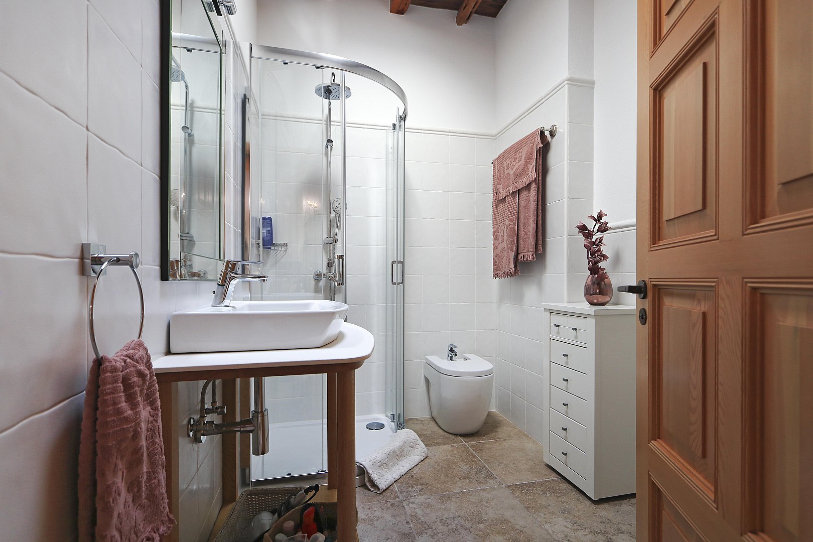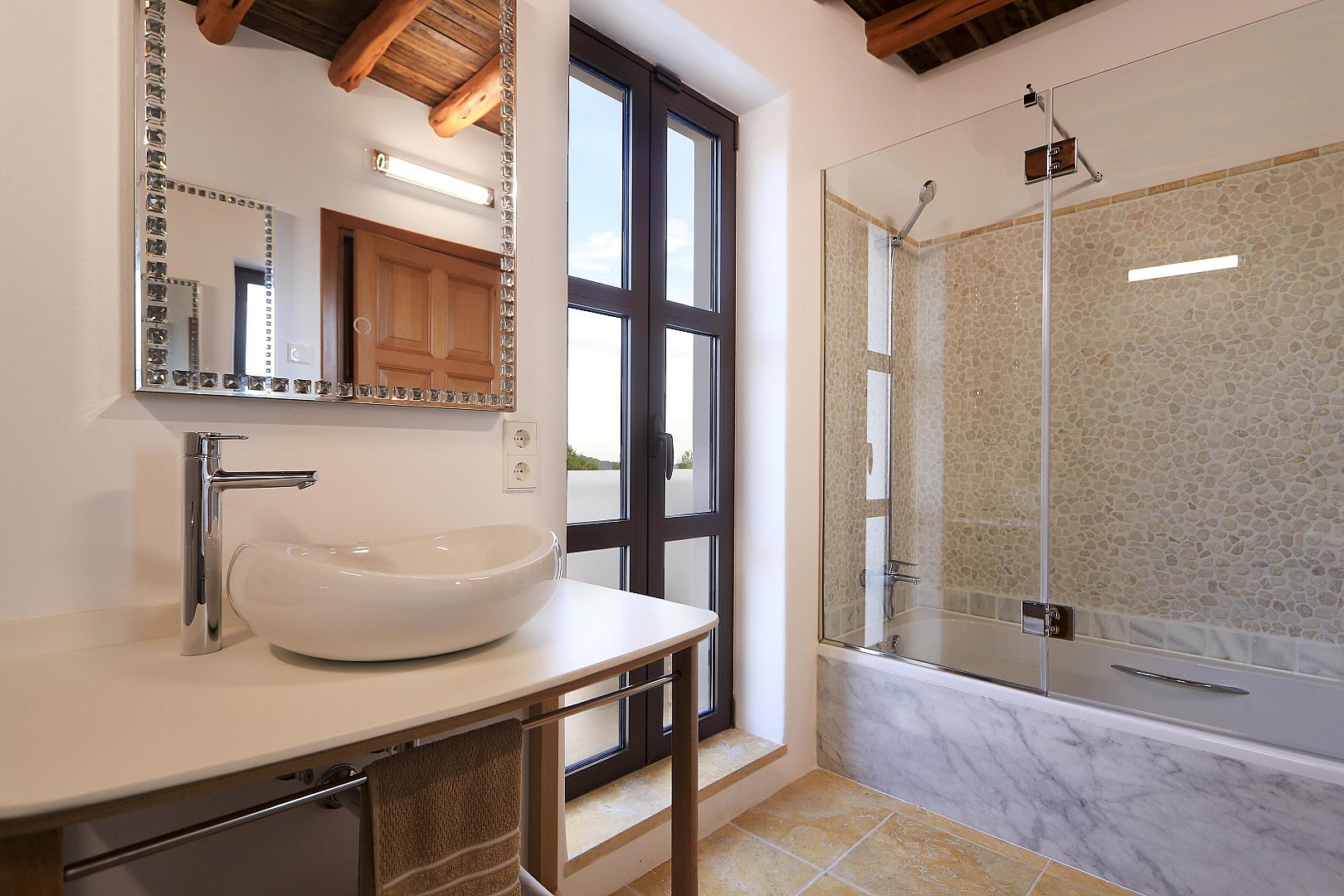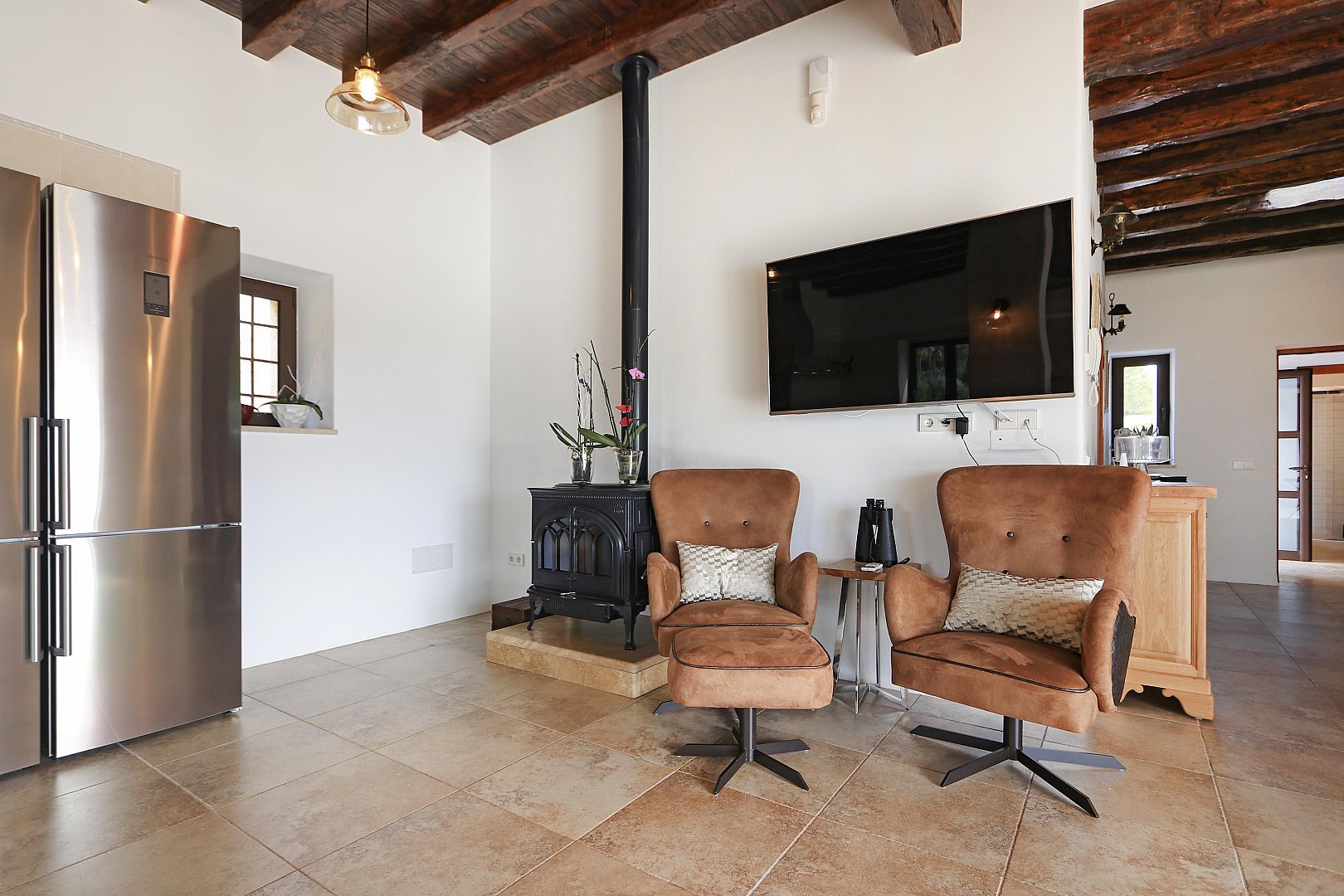 - Bedroom 1 – King-size bed (2m), en-suite bathroom, TV, and terrace access