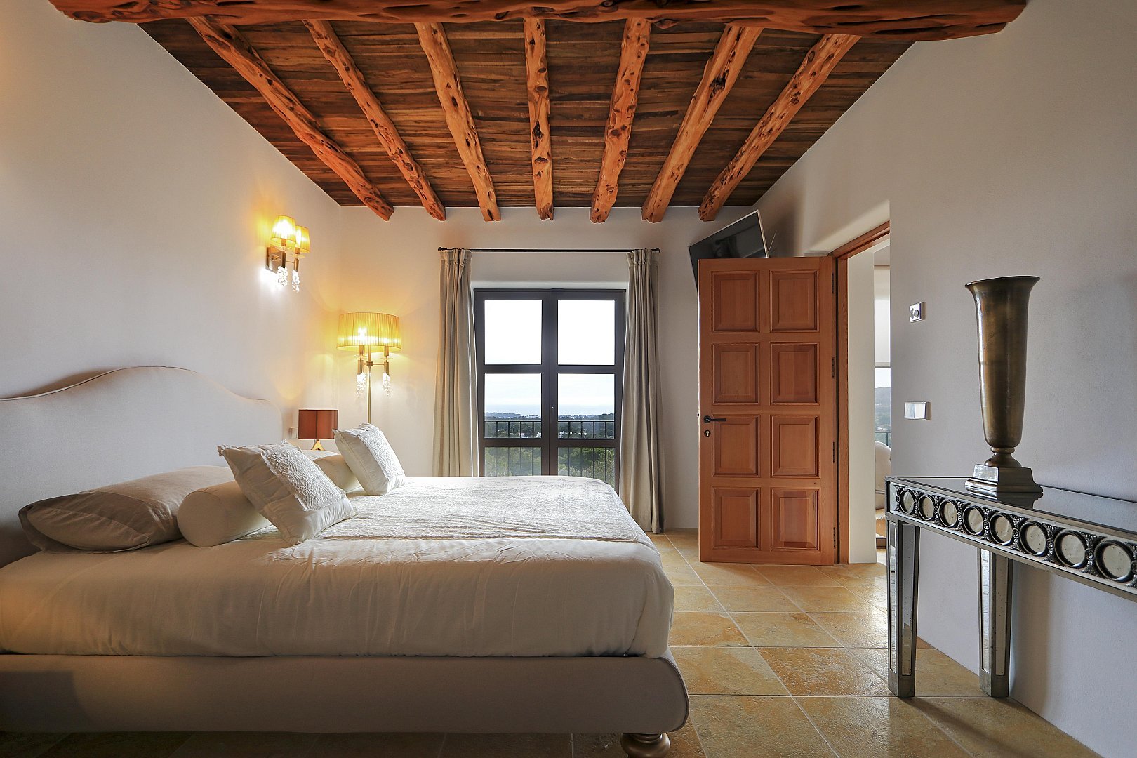 - Bedroom 5 – King-size bed, en-suite bathroom, two private terraces, dressing room, TV