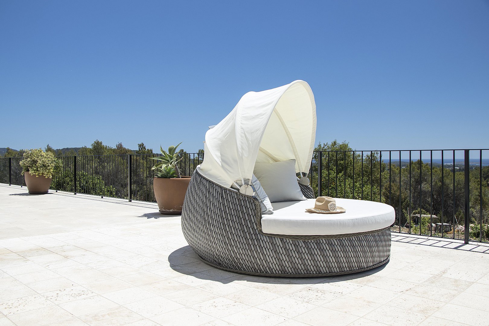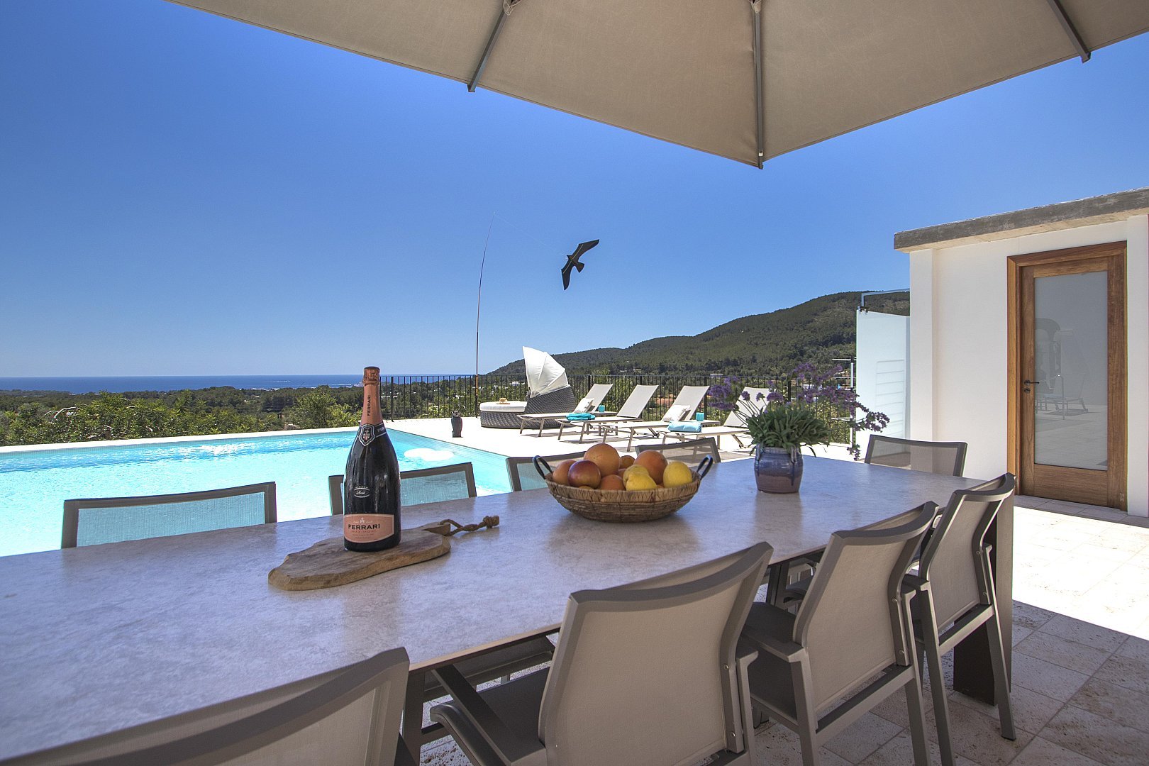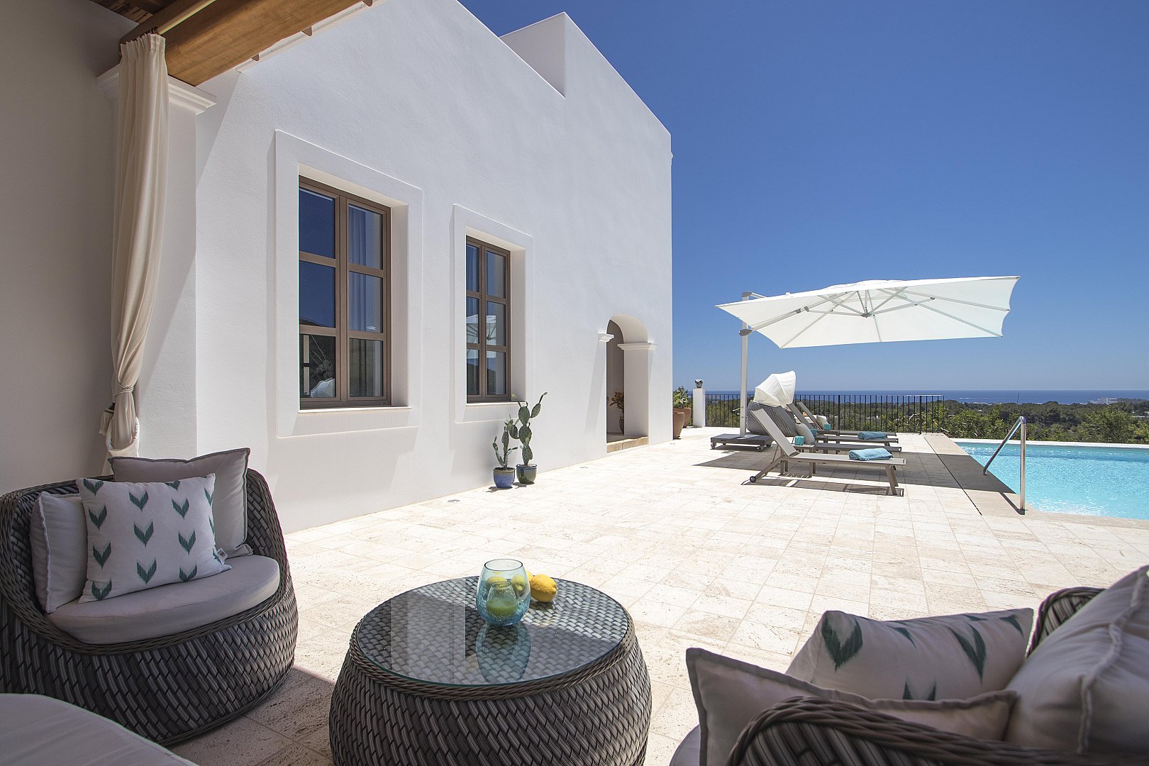 - Kitchen terrace in front of the infinity pool with sofas for relaxation