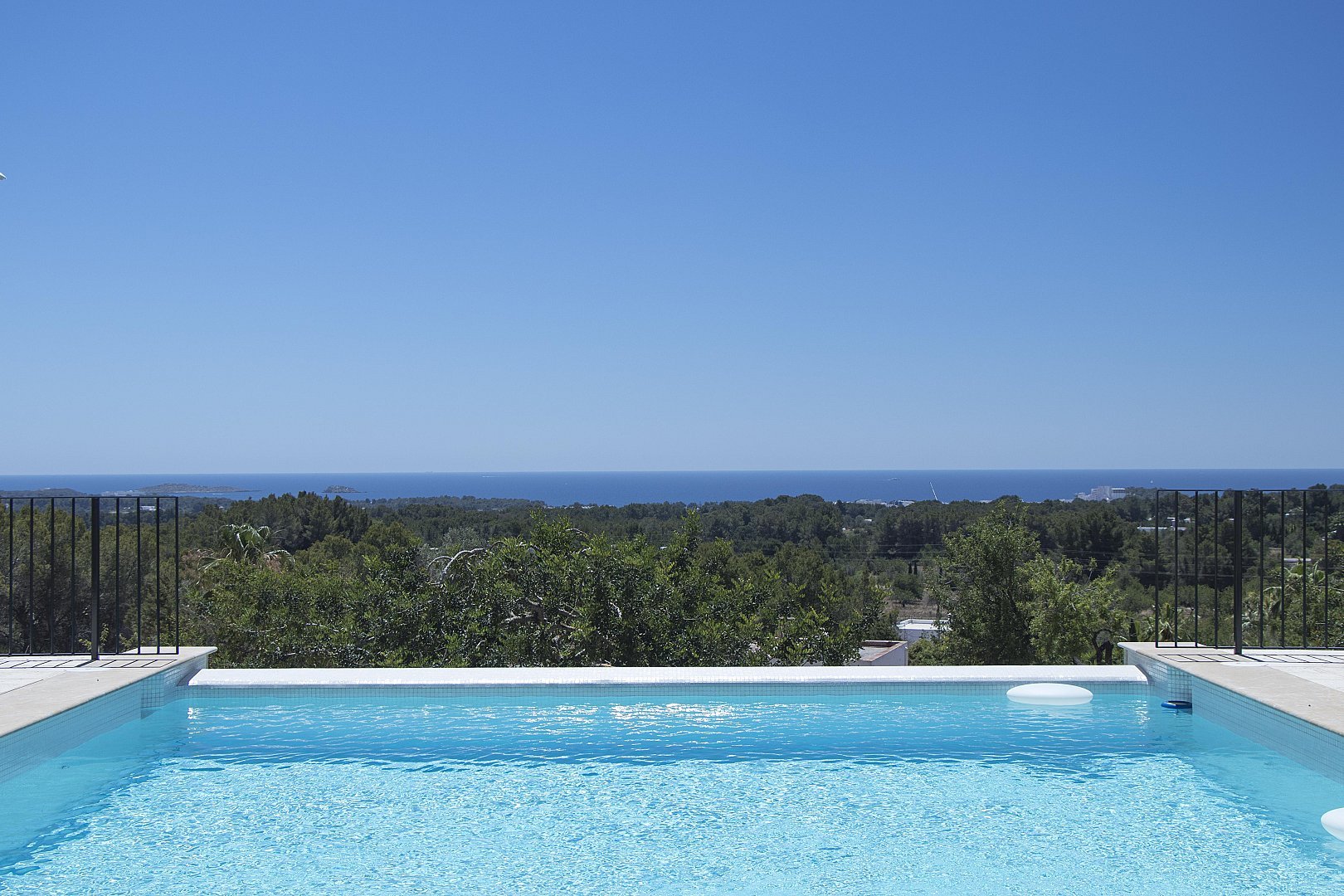 - Heated infinity pool with stunning countryside and sea views