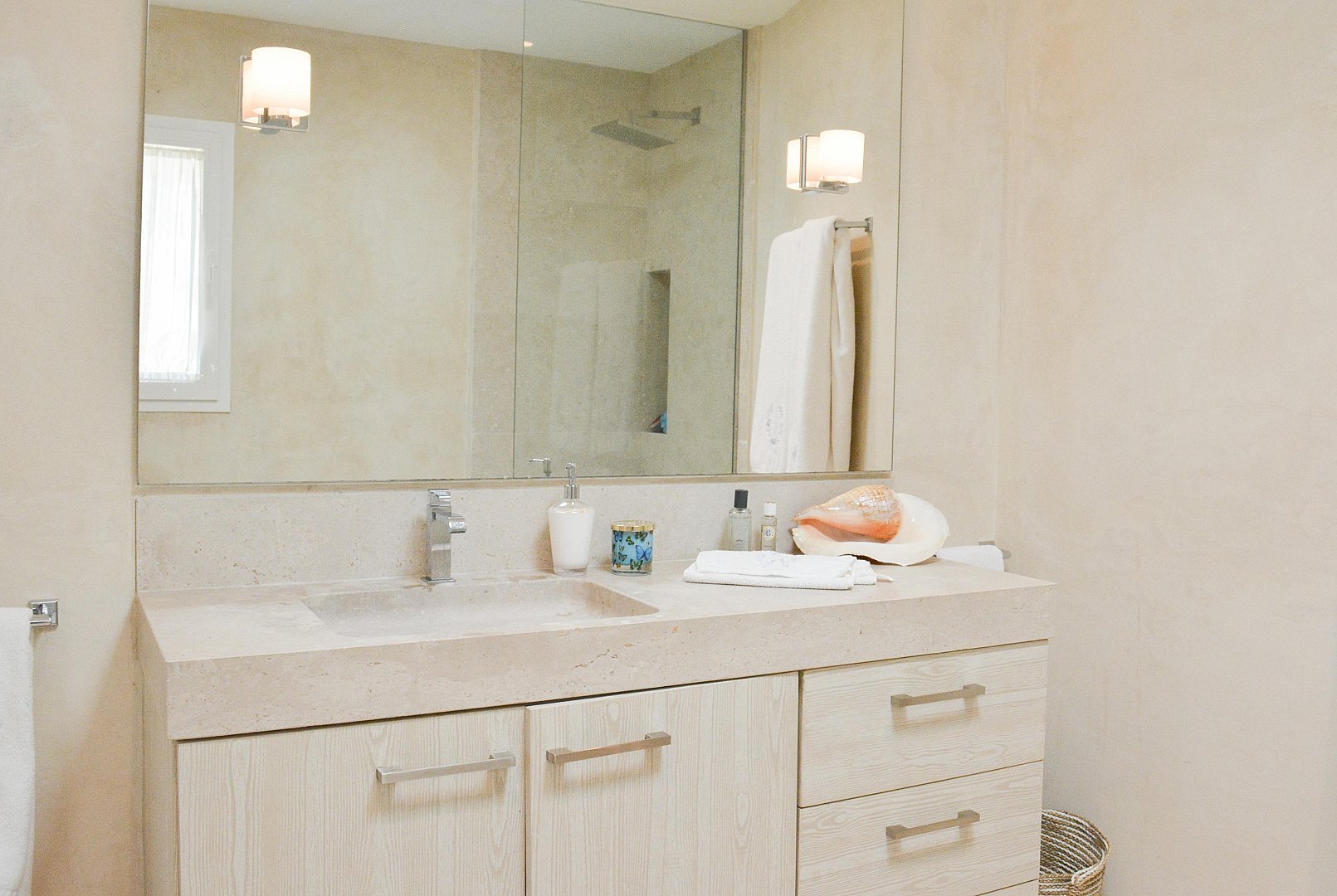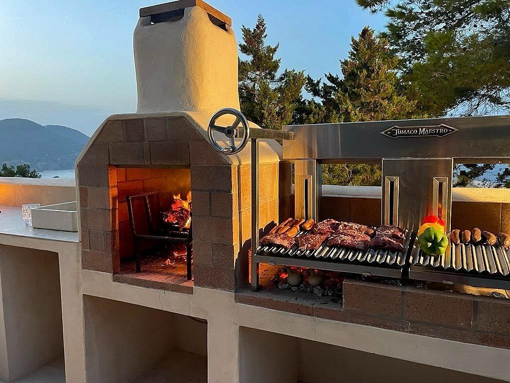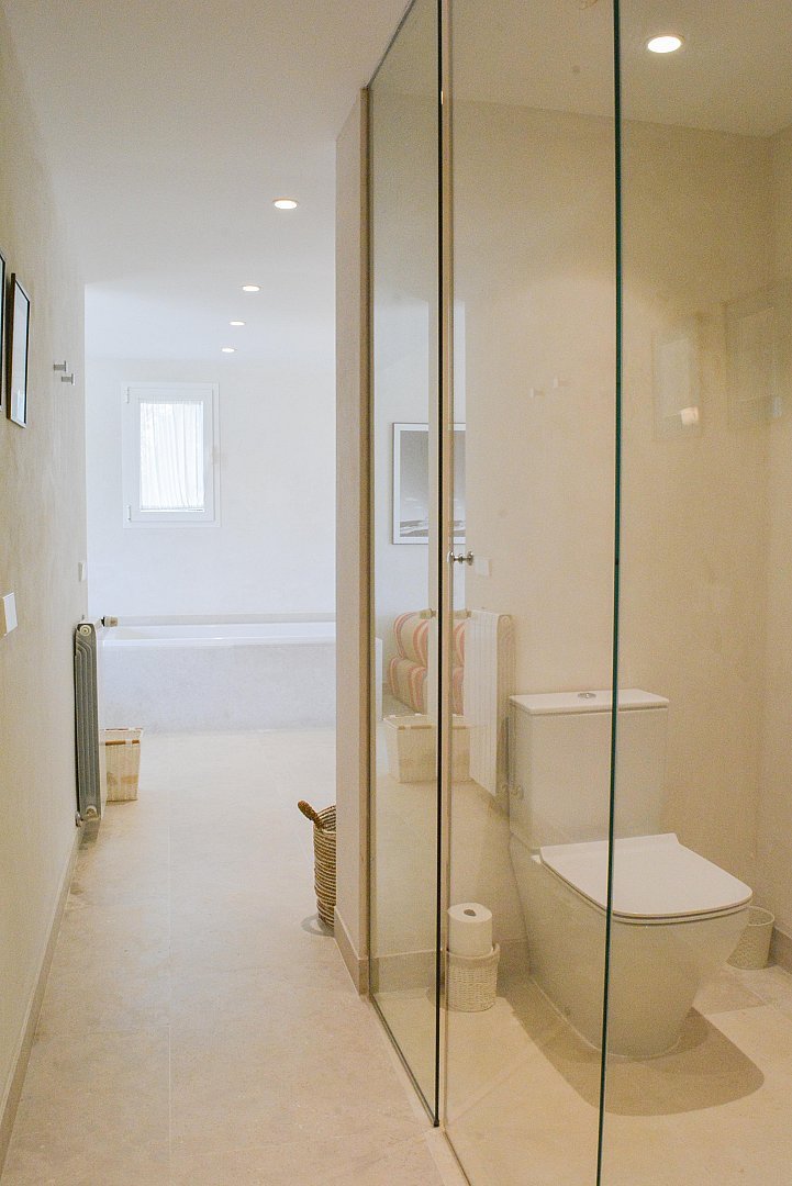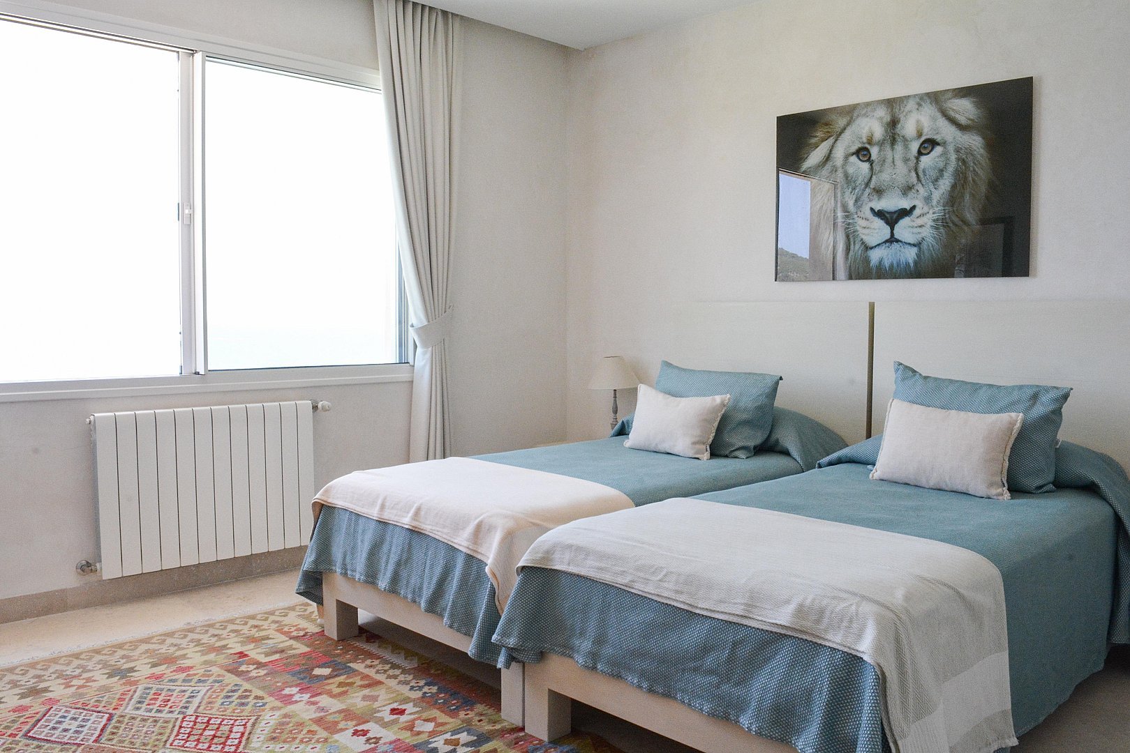 All of these spaces have impressive sea views. There is also a guest toilet and a separate maid´s quarter. The master suite has its terrace, accessible through a four-meter-wide sliding window. From the king-size bed, only pine trees and the sea are visible