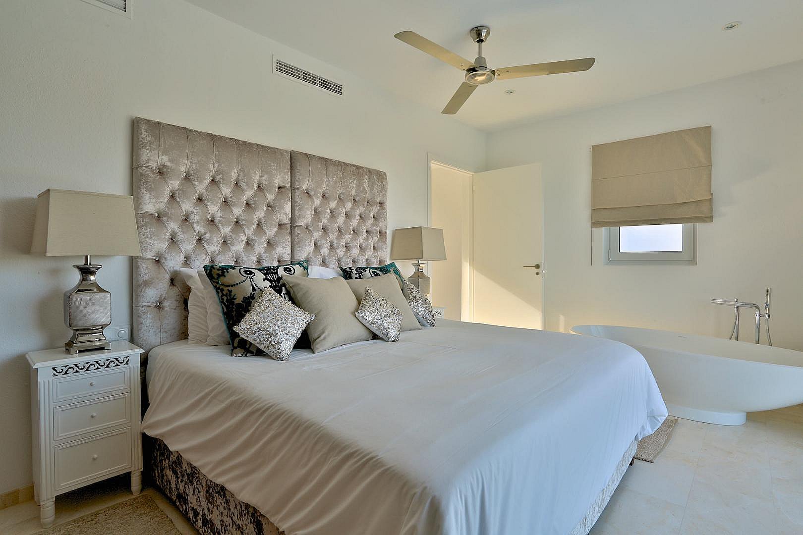 - Bedroom 5 – King-size/twin, en-suite, sea & country views, ceiling fan, air conditioning, pool access