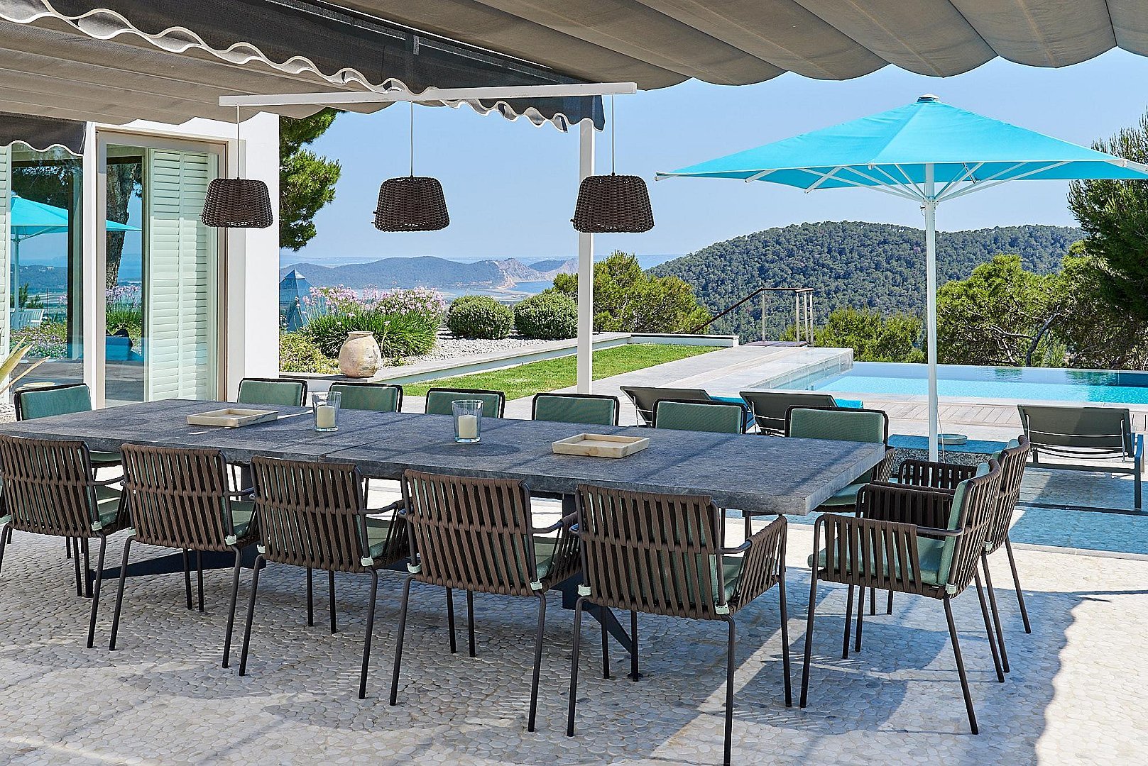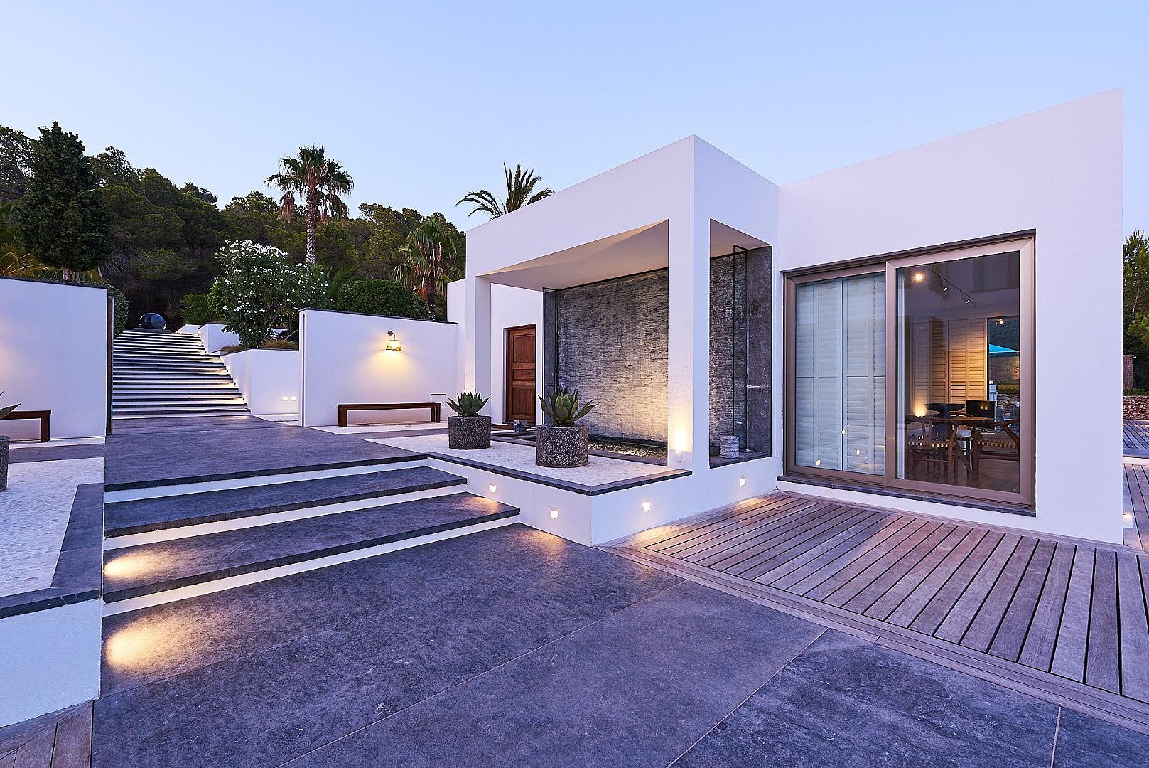 More than 1,500 m2 of terraces surround the main house, decorated by ponds, waterfalls and fountains, many corners and spots for dinning, sunbathing or just chilling out. Interiors boast style and comfort through its large living spaces while everything inspires guests to feel easily at home.