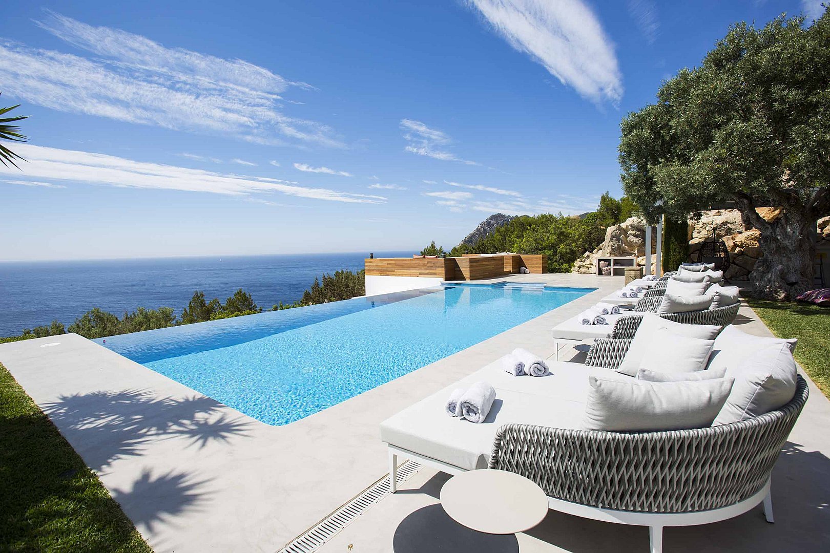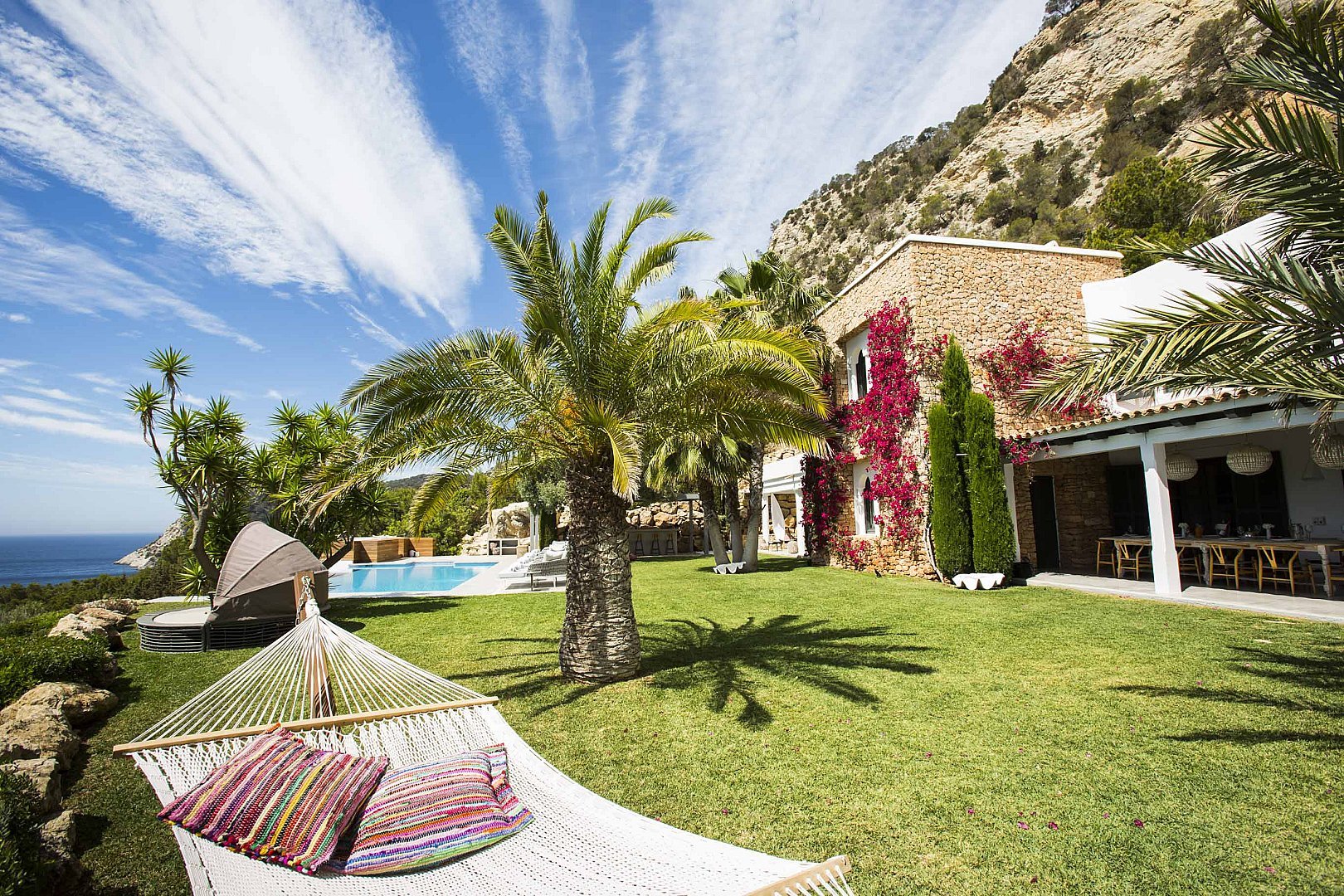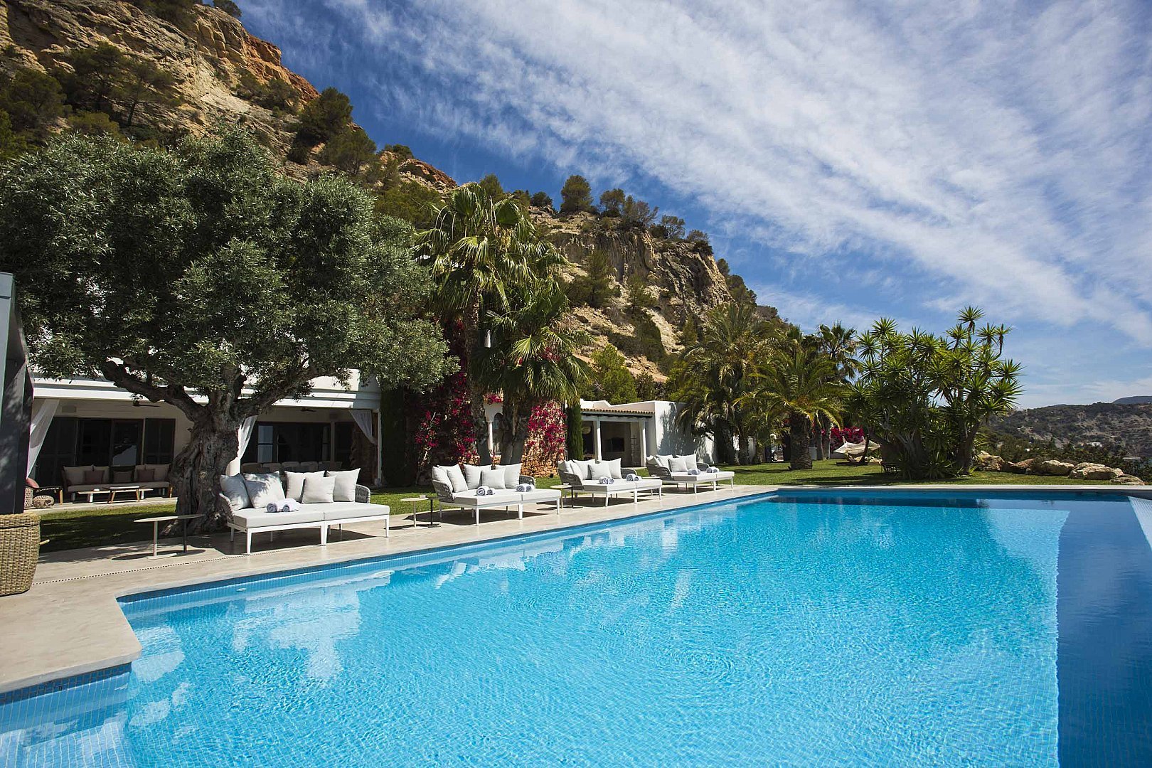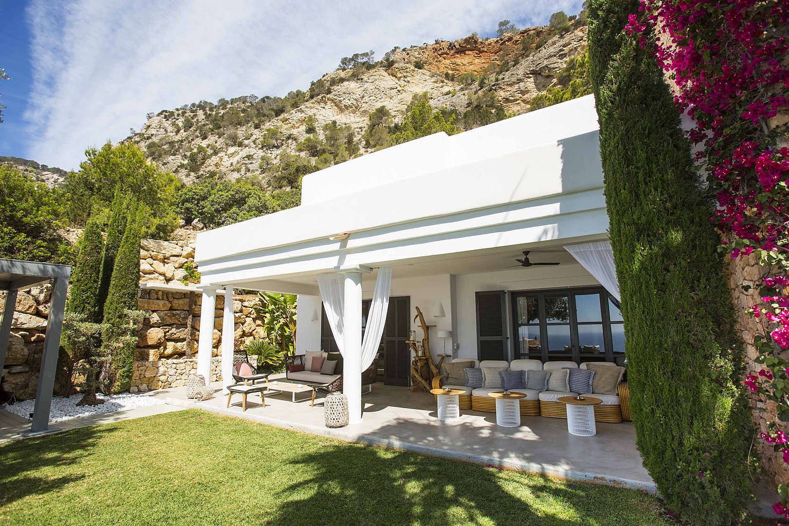 We find this special villa offering luxury, charm and style perched on the side of a cliff facing the calm waters of Es Cubells Natural Park. The most exclusive private urbanization in Ibiza composed of 24 amazing and independent villas with 24 hours security. This fully renovated villa with sea views spans 600 sqm of indoor living space and a capacity of 12 pax that offers a seemingly limitless view of blue – ocean and sky melting into each other.