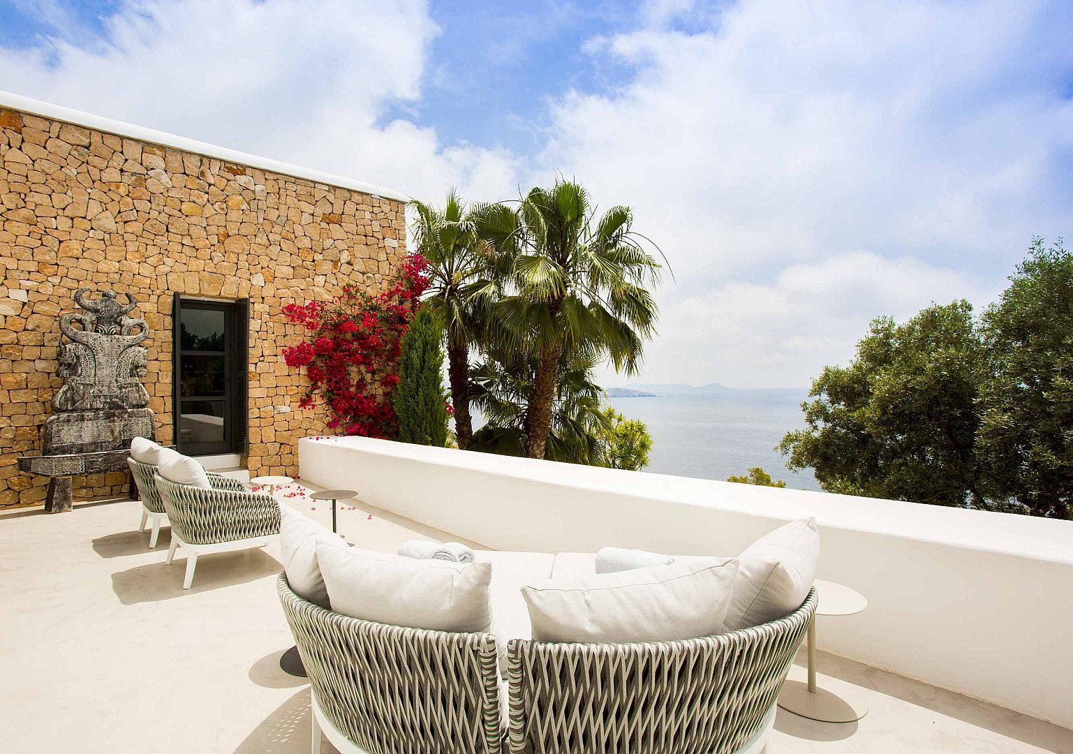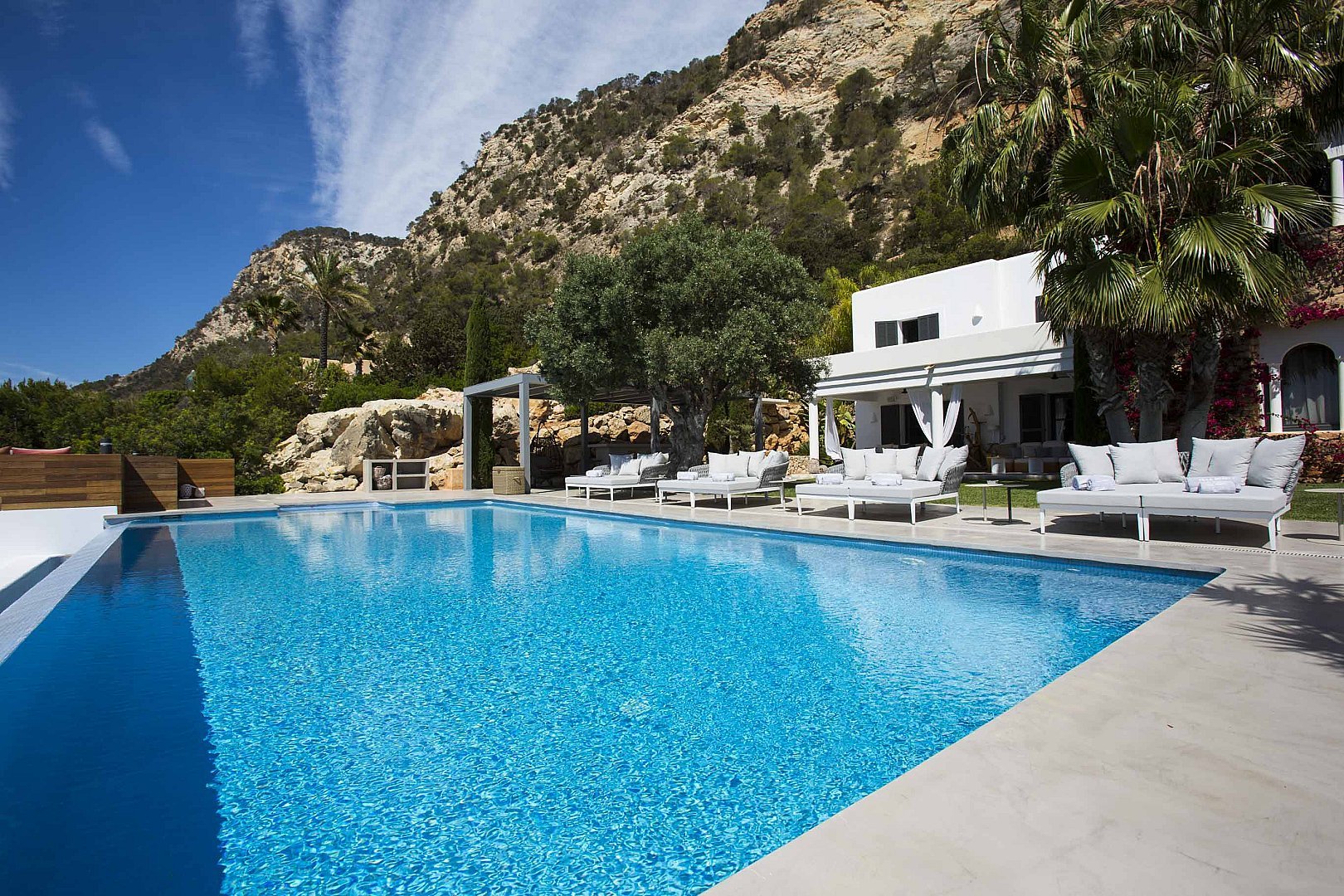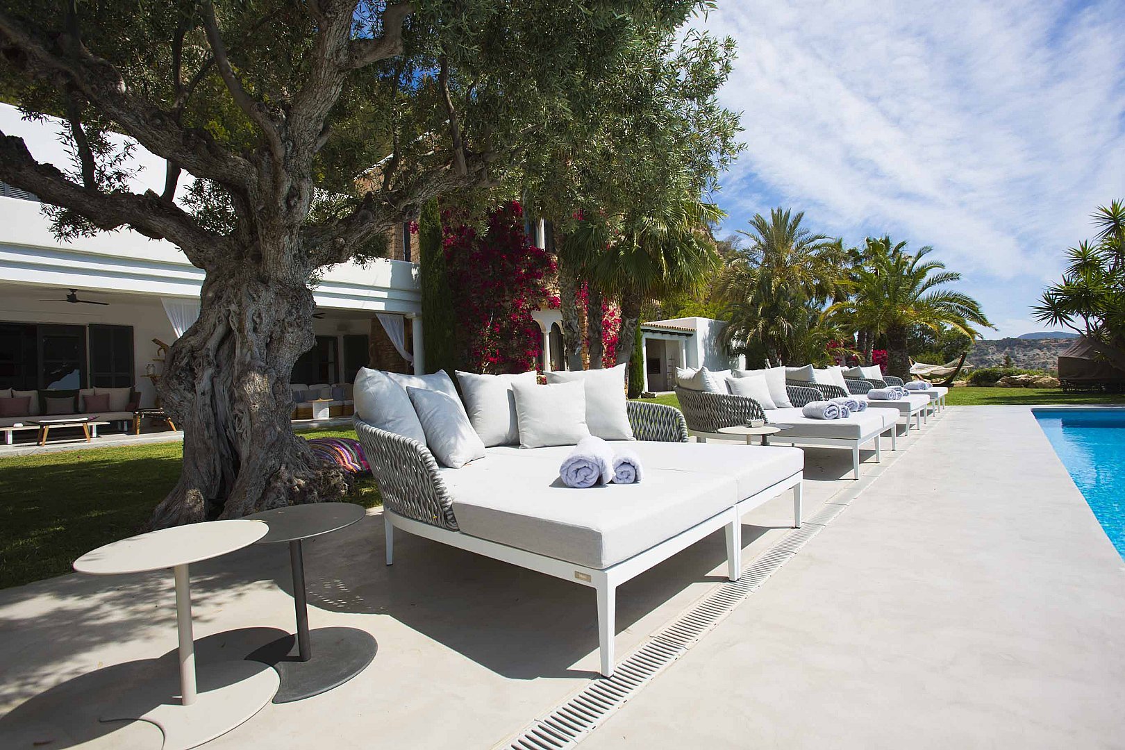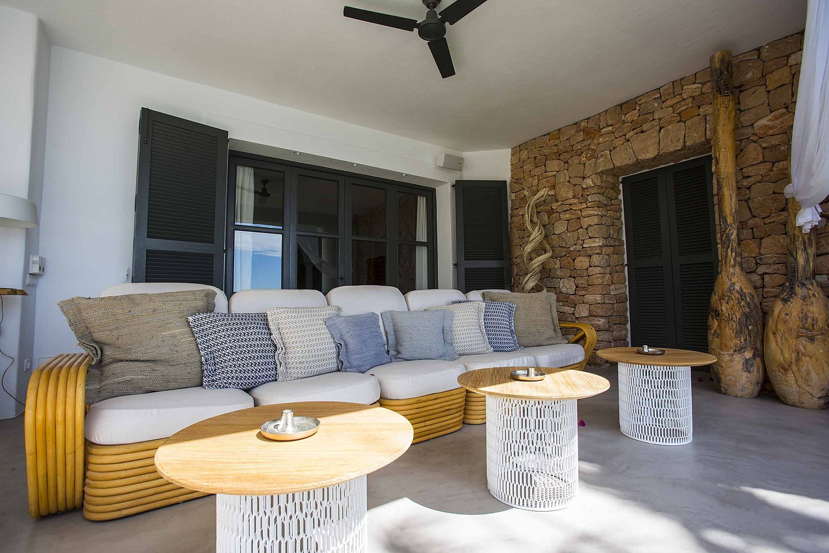 We find this special villa offering luxury, charm and style perched on the side of a cliff facing the calm waters of Es Cubells Natural Park. The most exclusive private urbanization in Ibiza composed of 24 amazing and independent villas with 24 hours security. This fully renovated villa with sea views spans 600 sqm of indoor living space and a capacity of 12 pax that offers a seemingly limitless view of blue – ocean and sky melting into each other.
