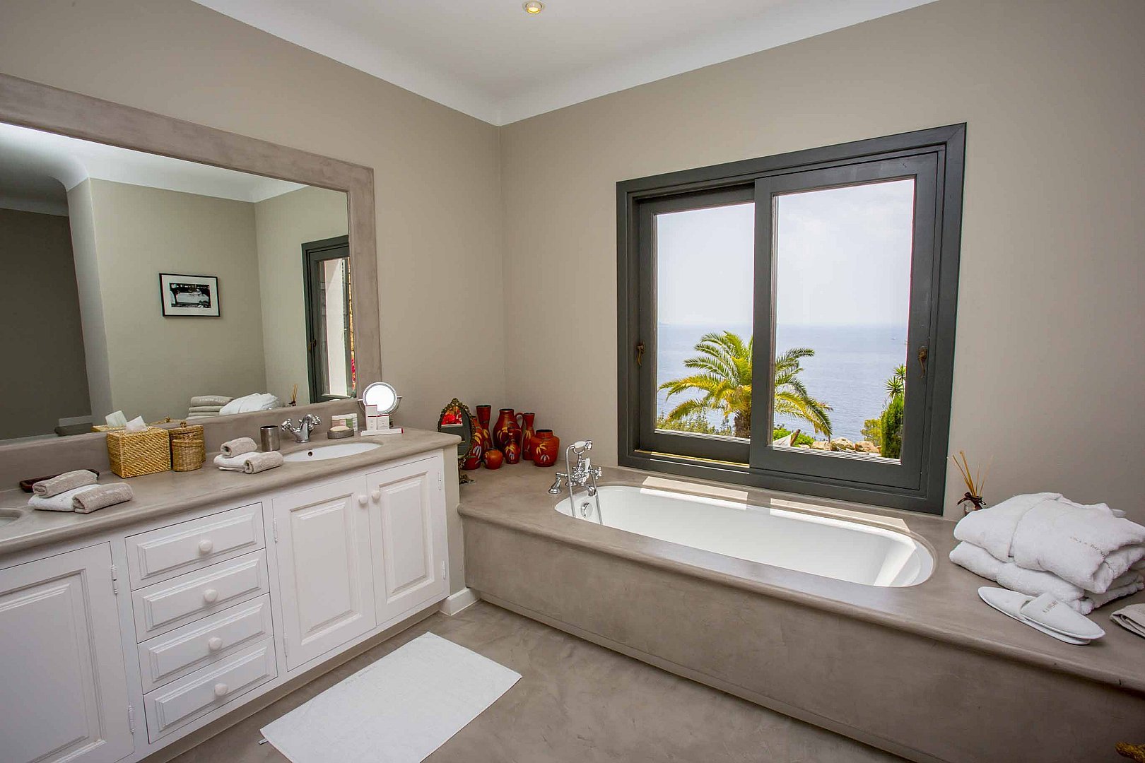 - Master bedroom en suite (50m2) with air conditioning (tub, shower and dress room), with access onto the terrace with sea views